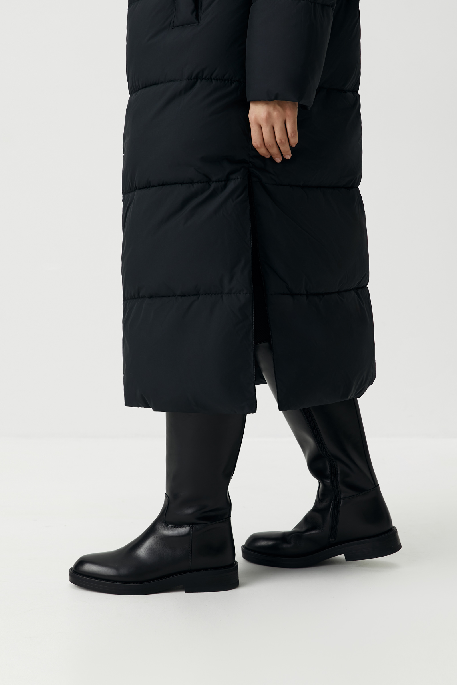 В связи с климатическими условиями, мы выбрали водонепроницаемый материал верха. Наполнитель био-пух, который имеет большую схожесть с натуральным, он равномерно распределяется в изделии и в 1,5 раза теплее своего натурального аналога.