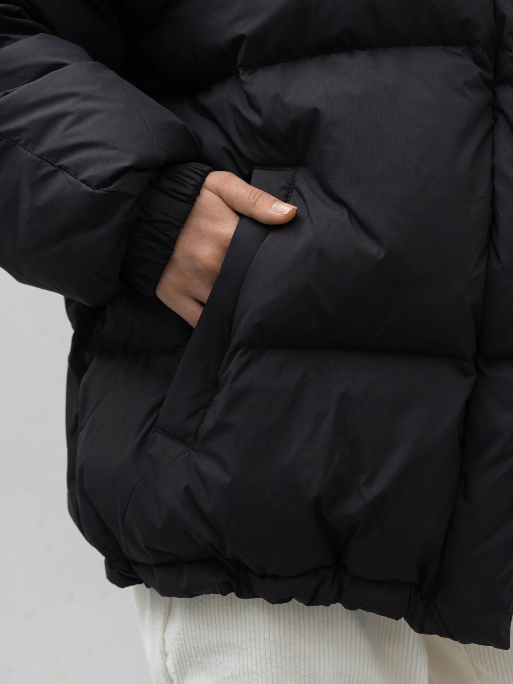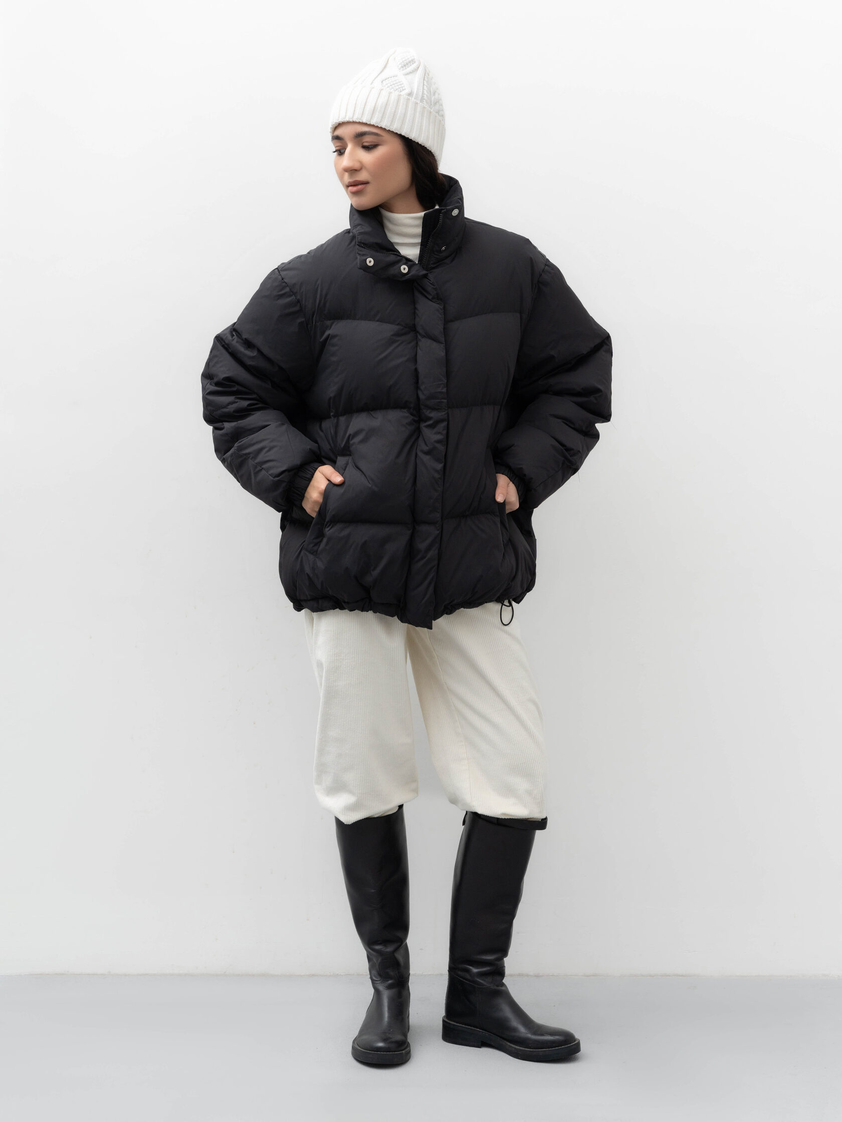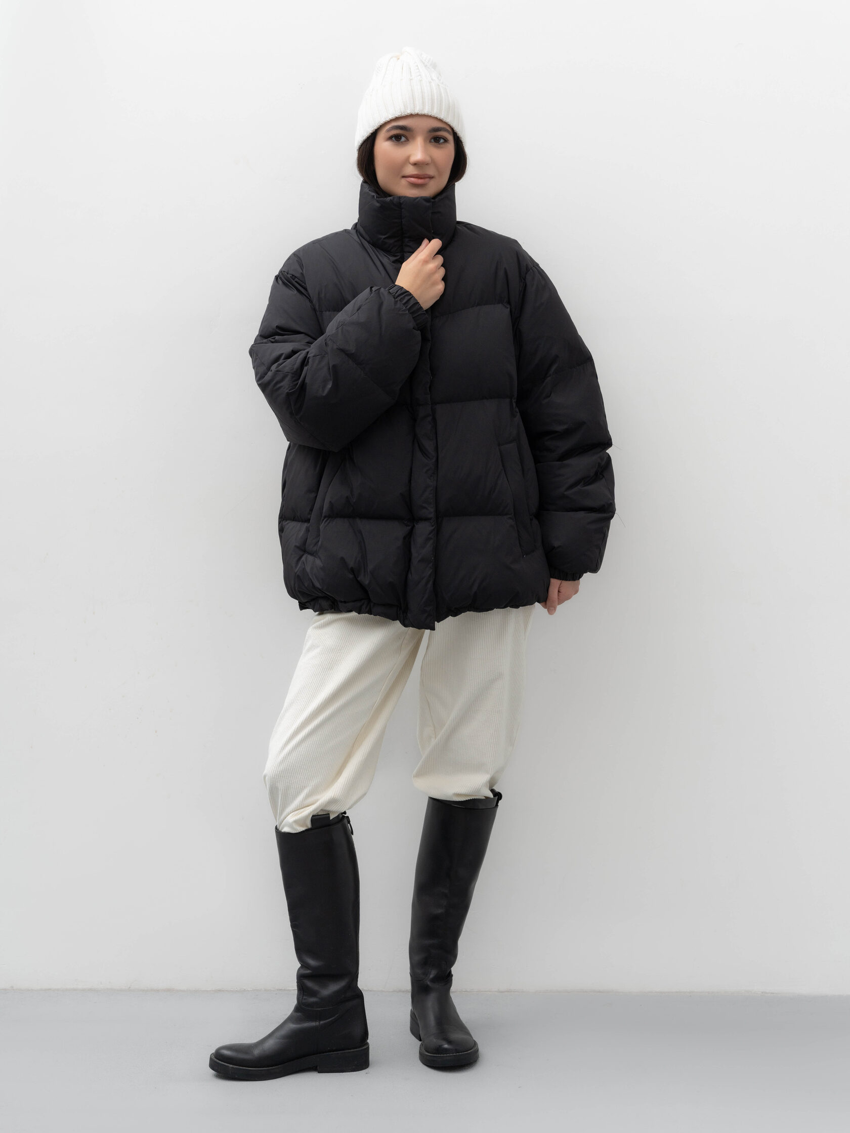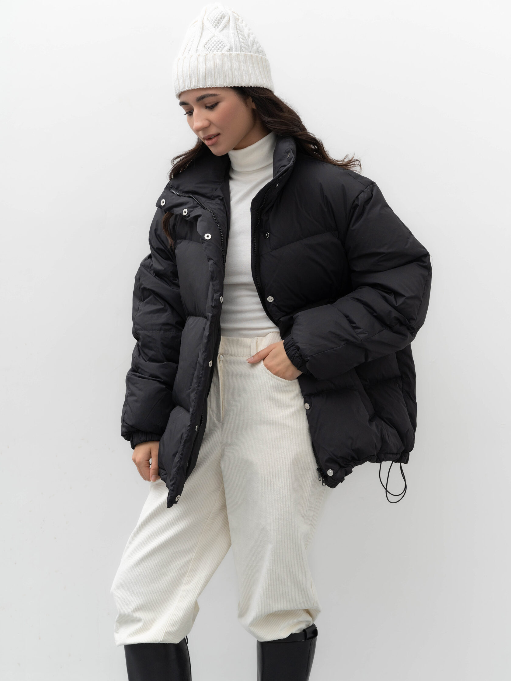 Черный пуховик с наполнителем из чистого пуха – универсальный вариант для зимы. Теплый и уютный, он легко вписывается в современный и практичный образ в любом стиле. Свободный силуэт и аккуратная фактура делают его незаменимым элементом гардероба.