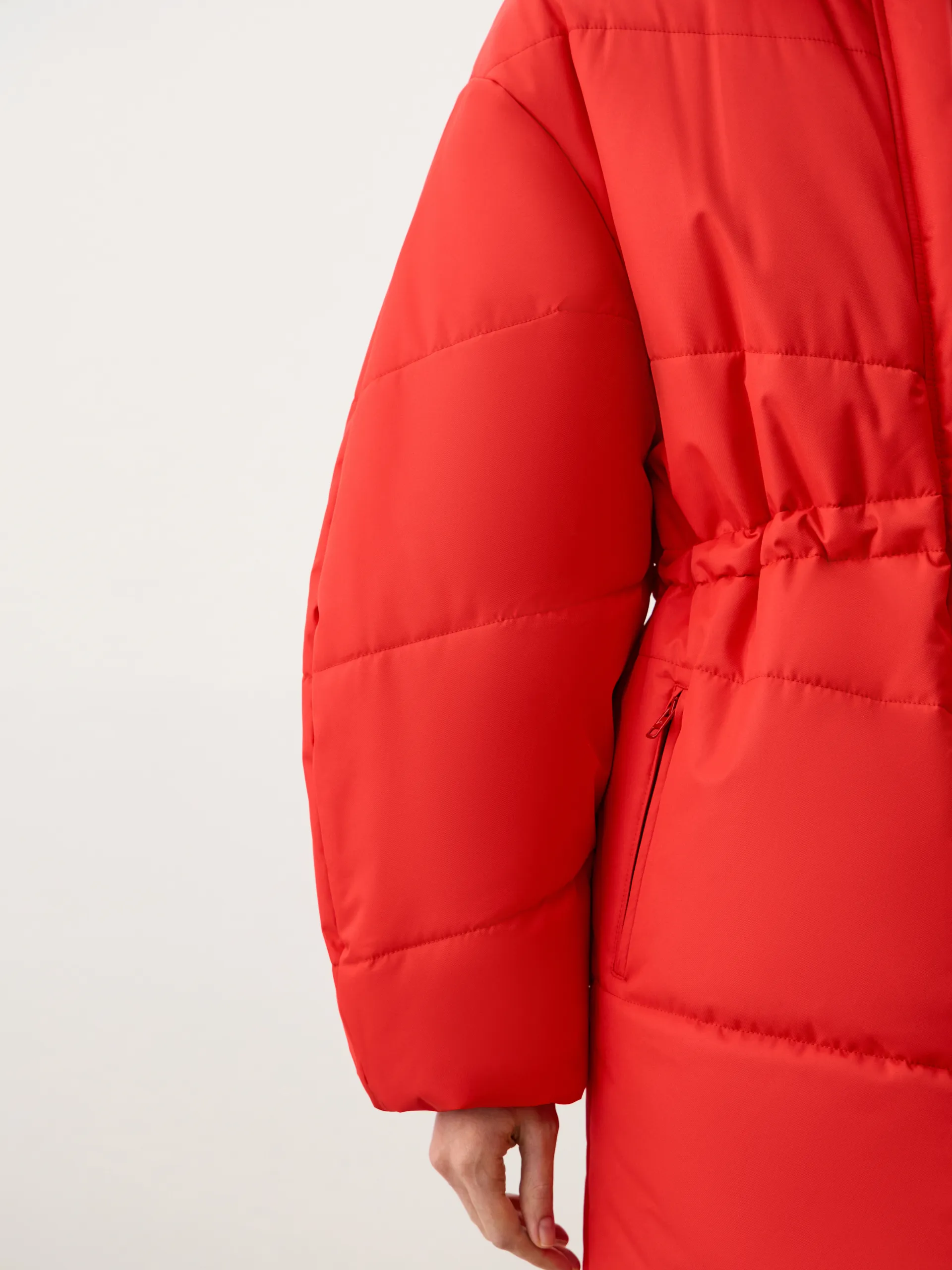 Куртка Polar. Утеплённая куртка в ярком алом оттенке с модными О-образными рукавами и кулисой по линии талии, позволяющей регулировать посадку. Благодаря инновационному утеплителю Isosoft куртка остаётся лёгкой, но при этом сохраняет комфортное тепло даже в мороз. Водонепроницаемая ткань защищает от ветра и осадков. Тёплая, современная и эффектная — идеальный выбор для холодного сезона.