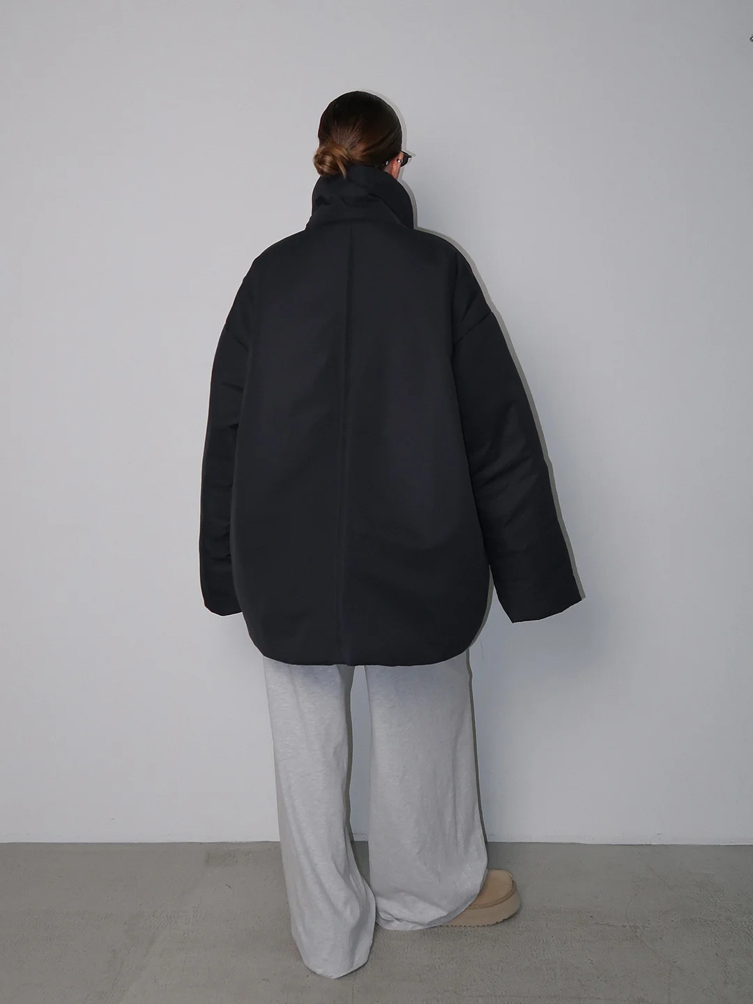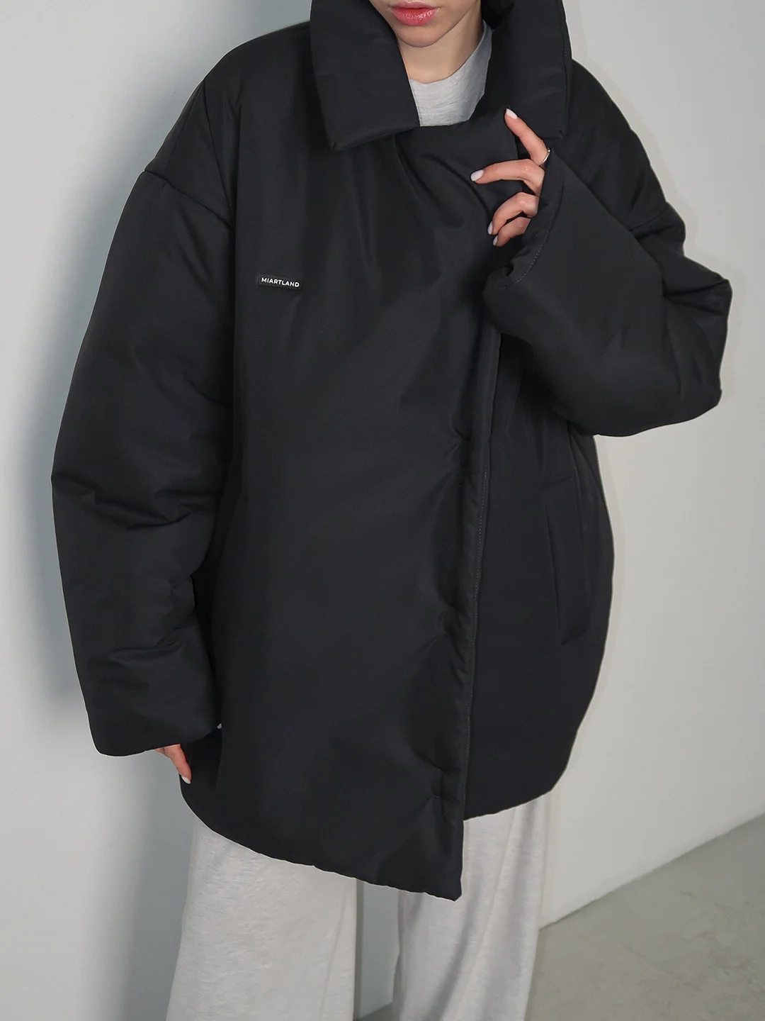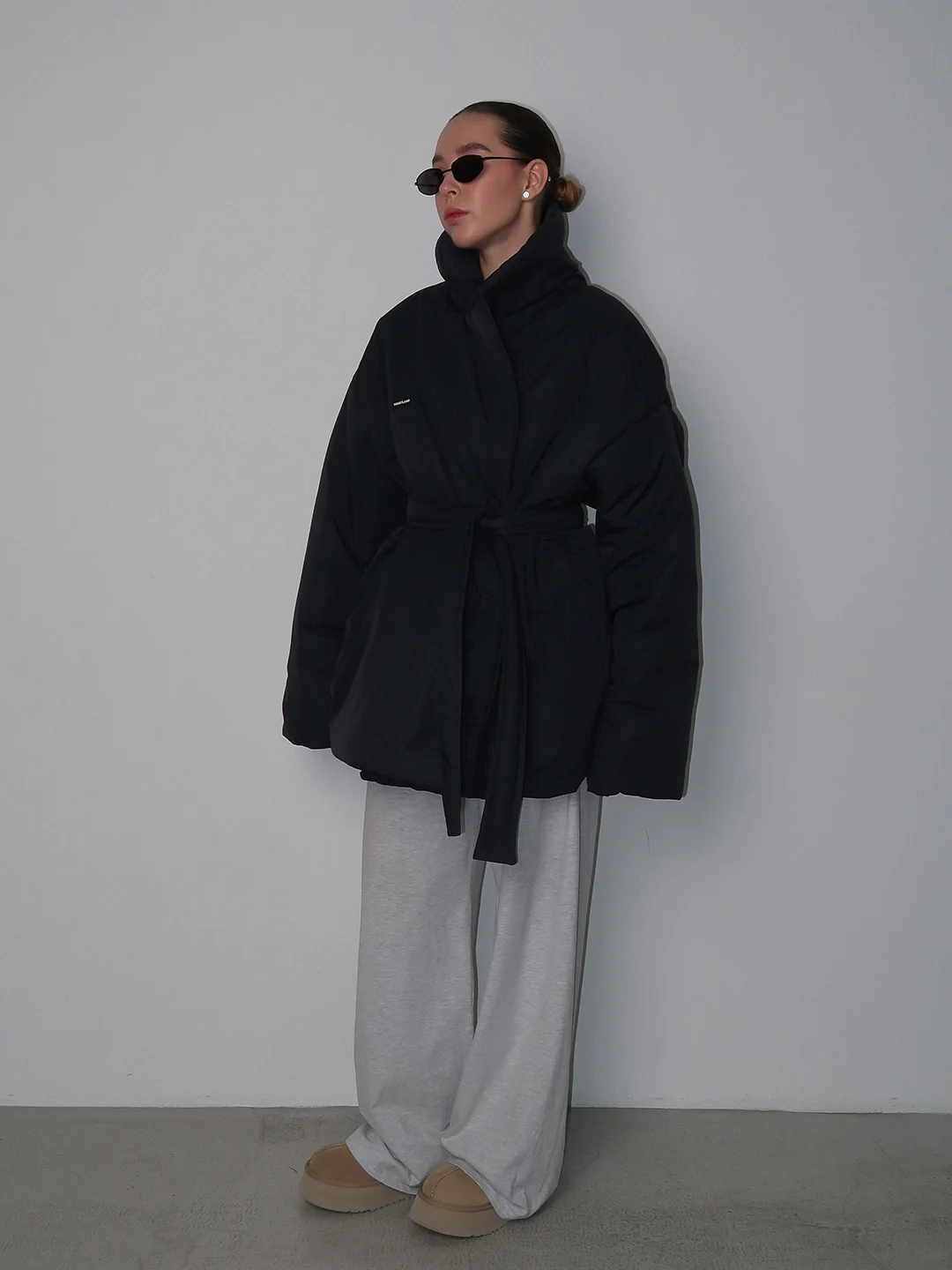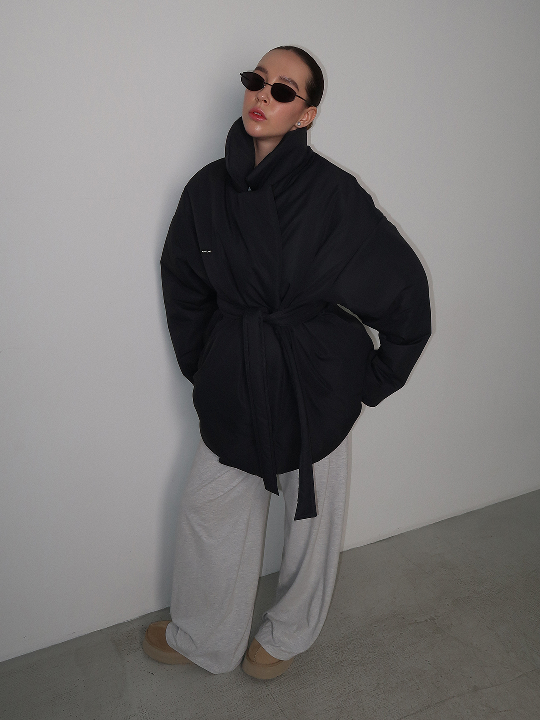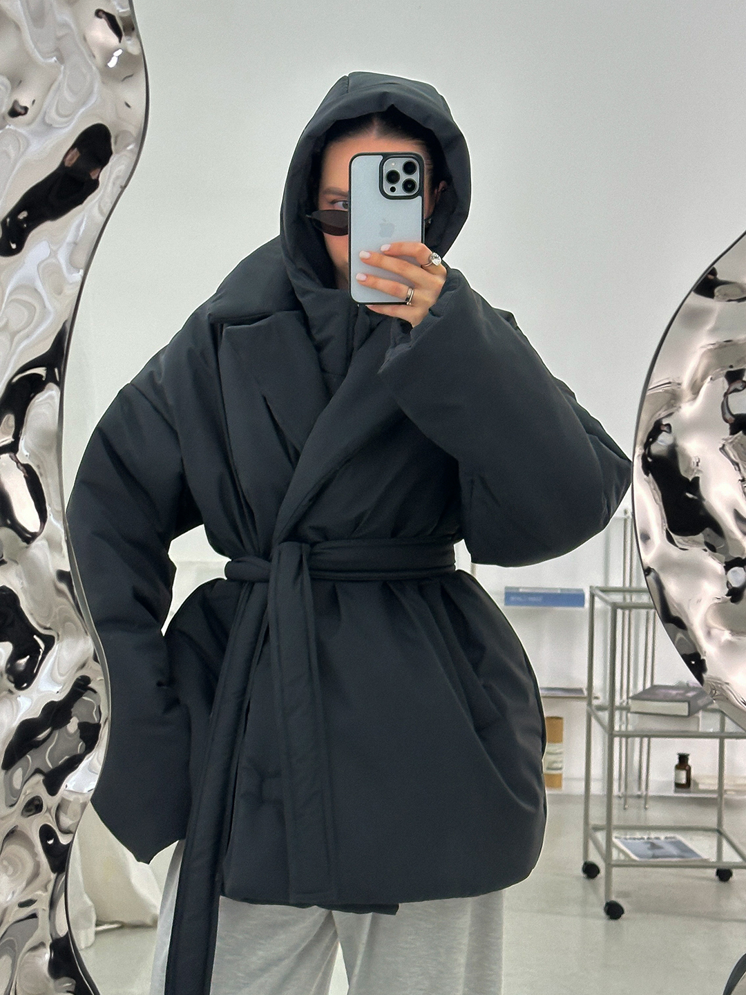 Куртка oversize кроя со съемным капюшоном и поясом в комплекте