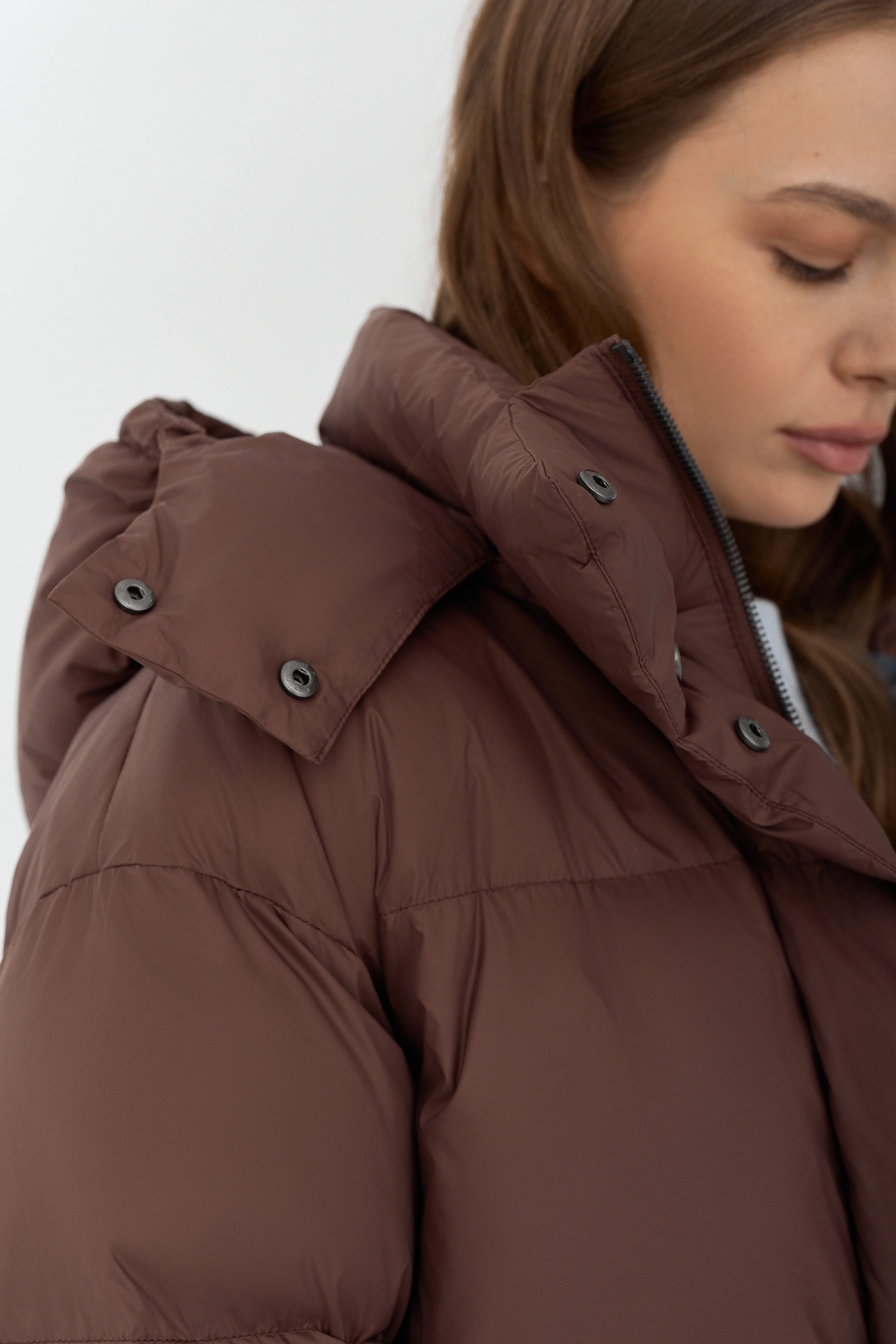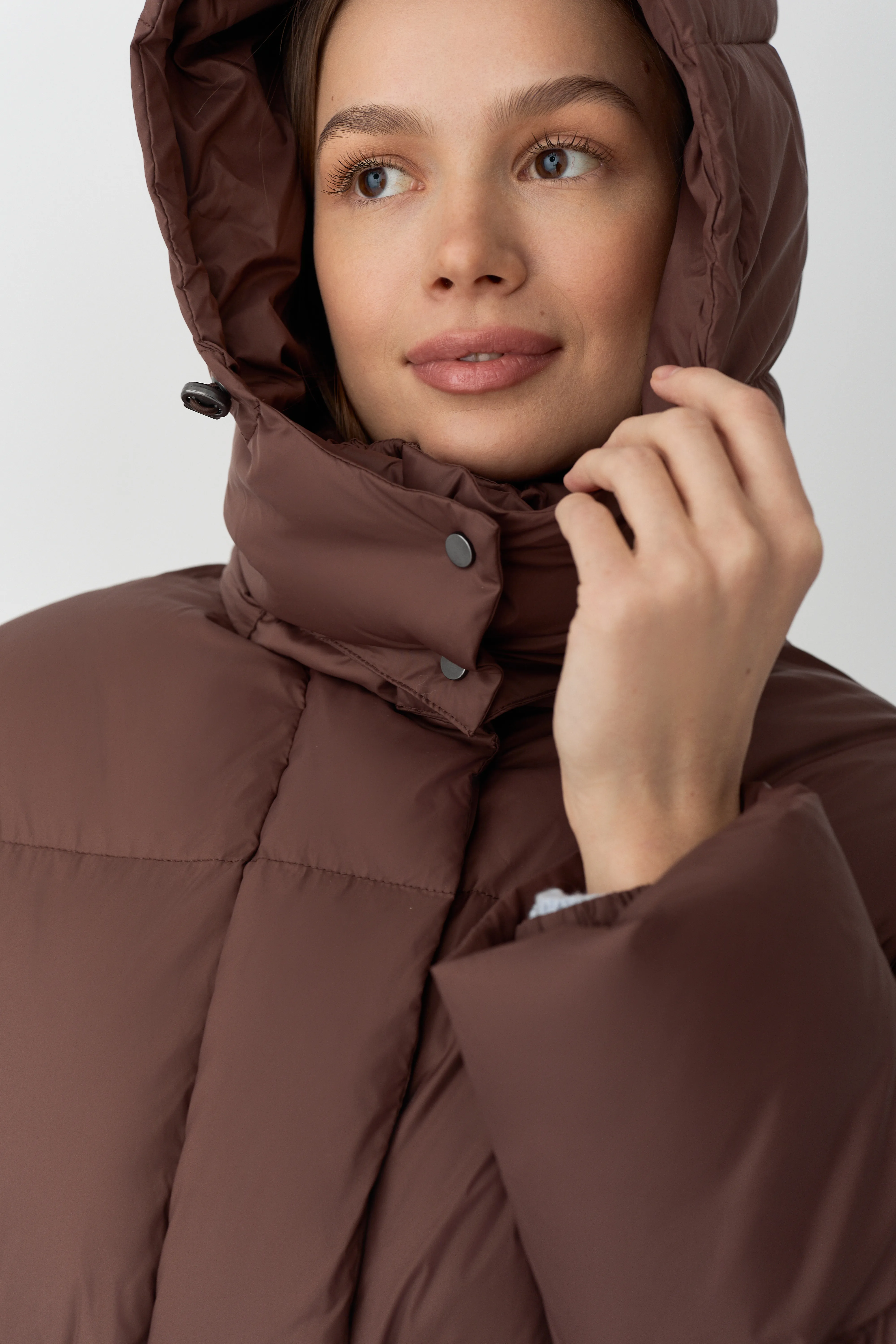 Лёгкая и невероятно тёплая зимняя куртка обеспечит вашему телу комфорт и защиту от холода до -25°C благодаря своему качественному наполнителю из натурального пуха и пера. Верхний слой выполнен из современной водоотталкивающей и ветронепроницаемой ткани, надежно сохраняющей ваше тепло и сухость даже в самую плохую погоду. Укороченная форма подчёркивает стройность фигуры, а удобный капюшон защитит голову и шею от холодного ветра. Универсальность дизайна позволяет сочетать её практически с любым гардеробом.