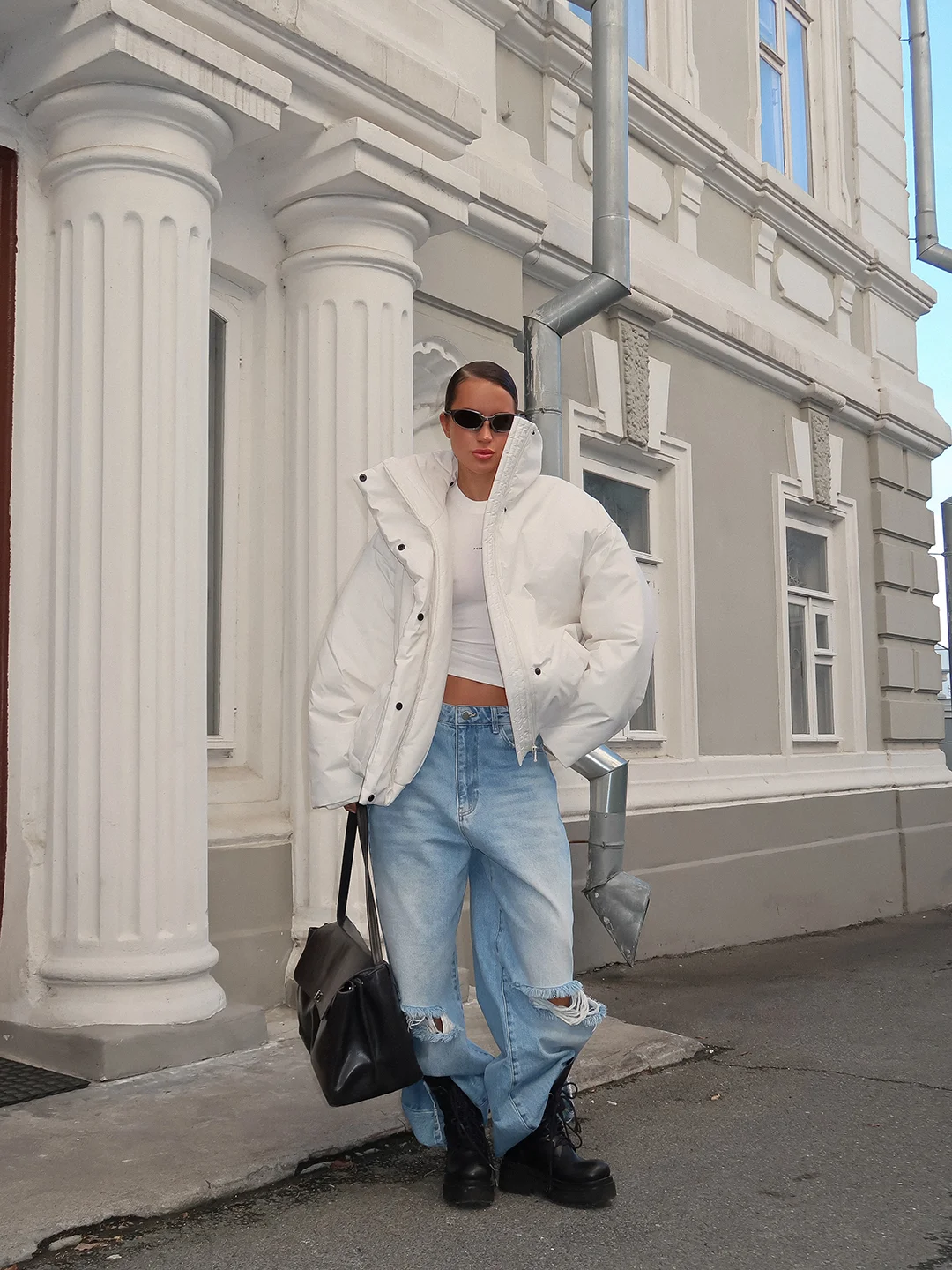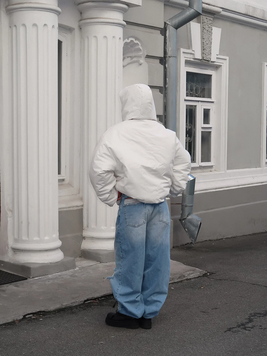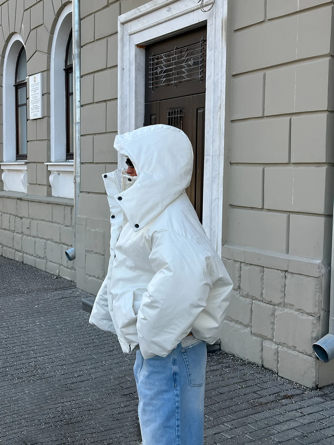 Куртка oversize кроя с воротником стойкой и капюшоном