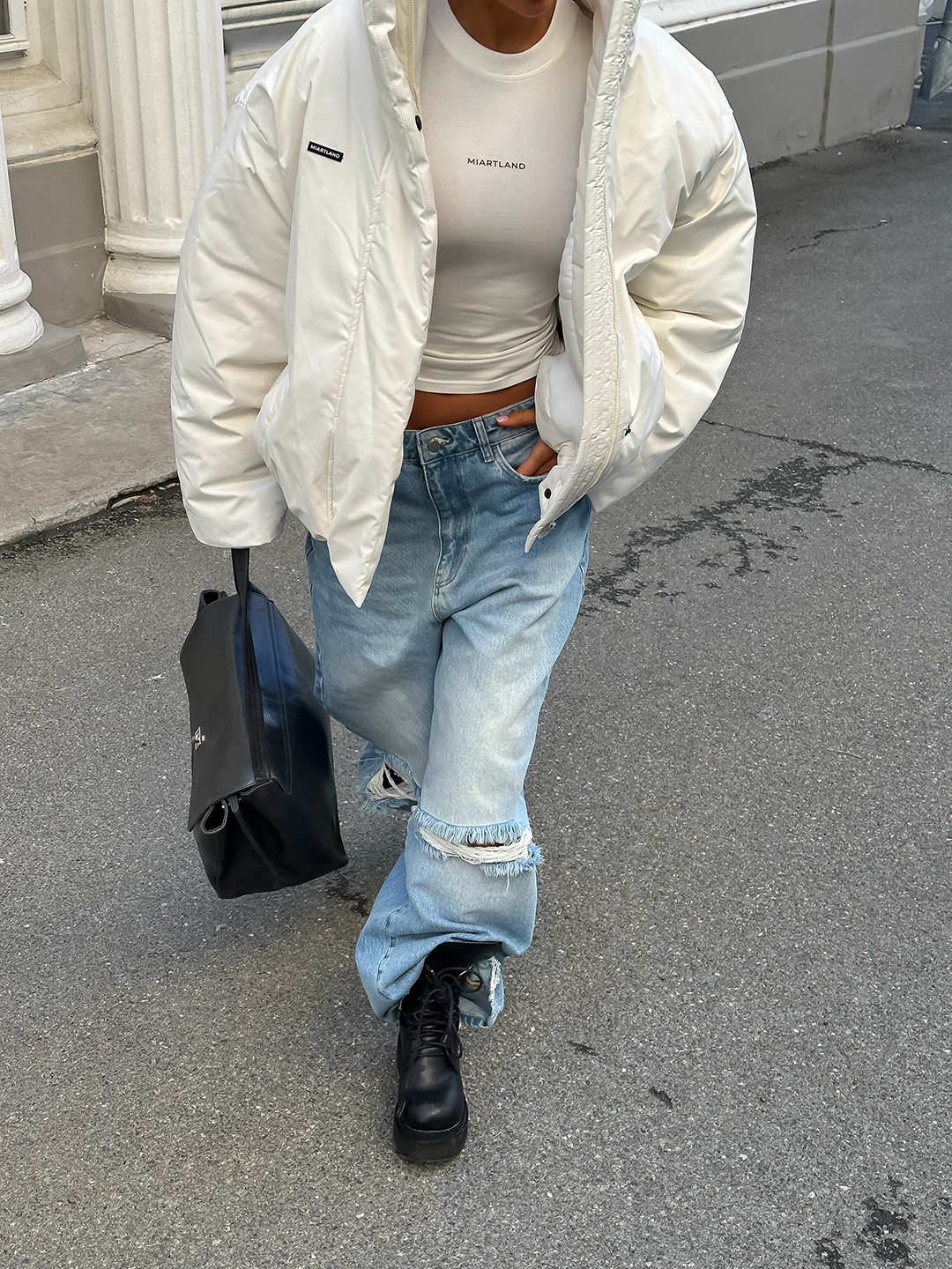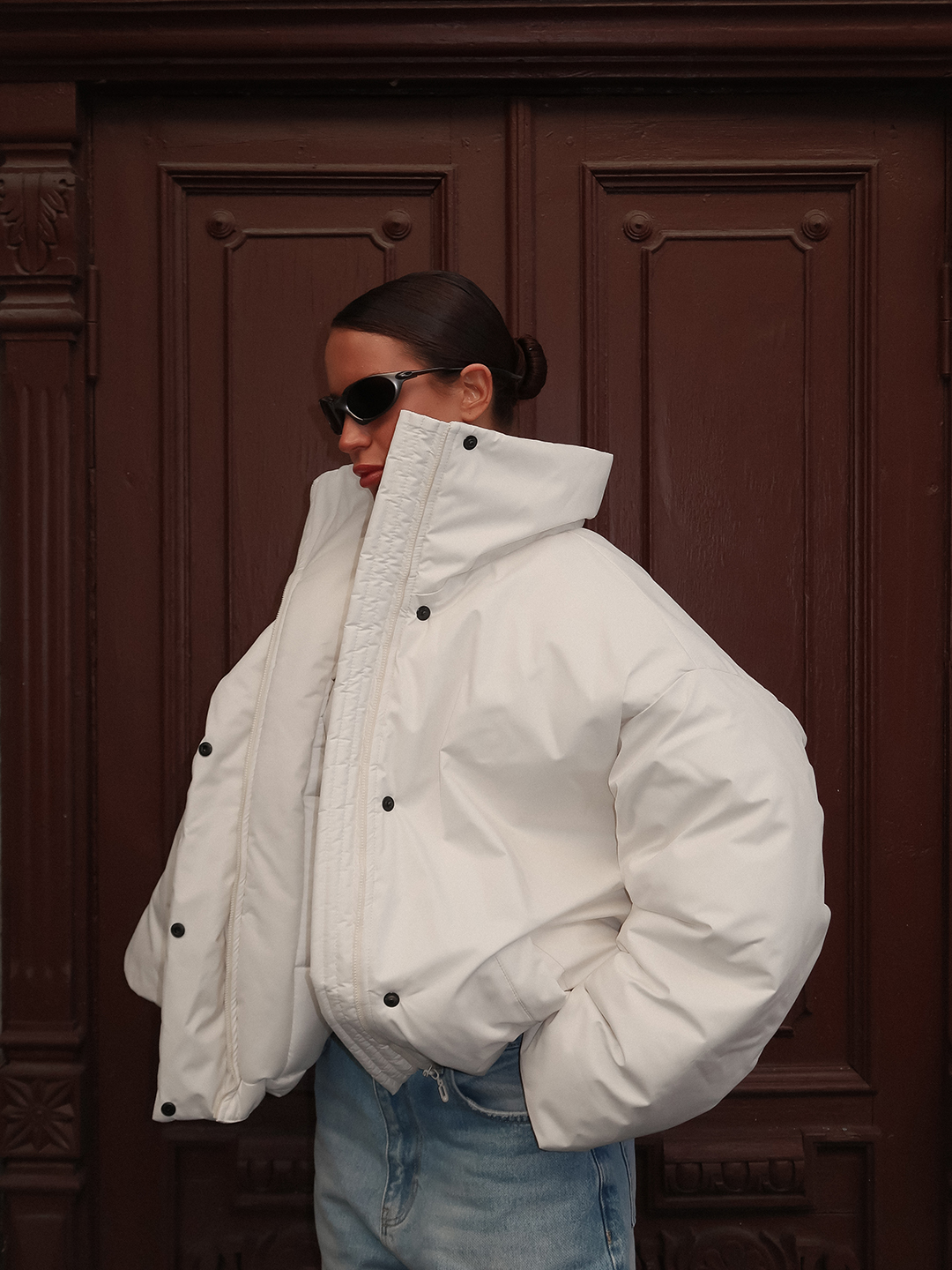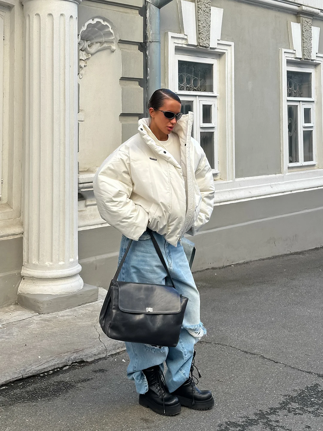 Куртка oversize кроя с воротником стойкой и капюшоном