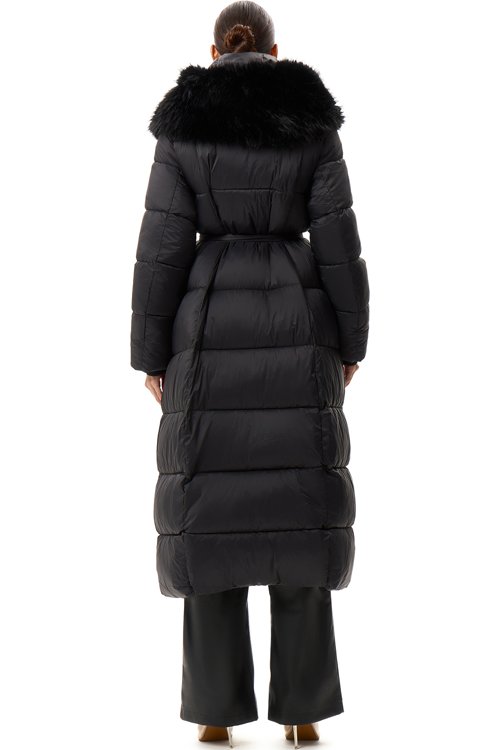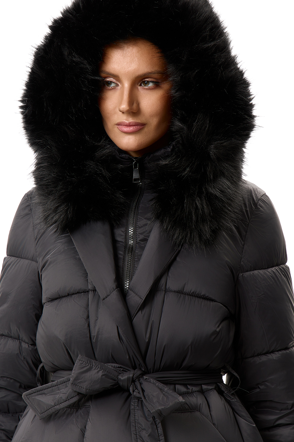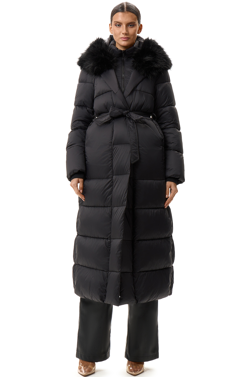 Пуховик длинный с поясом