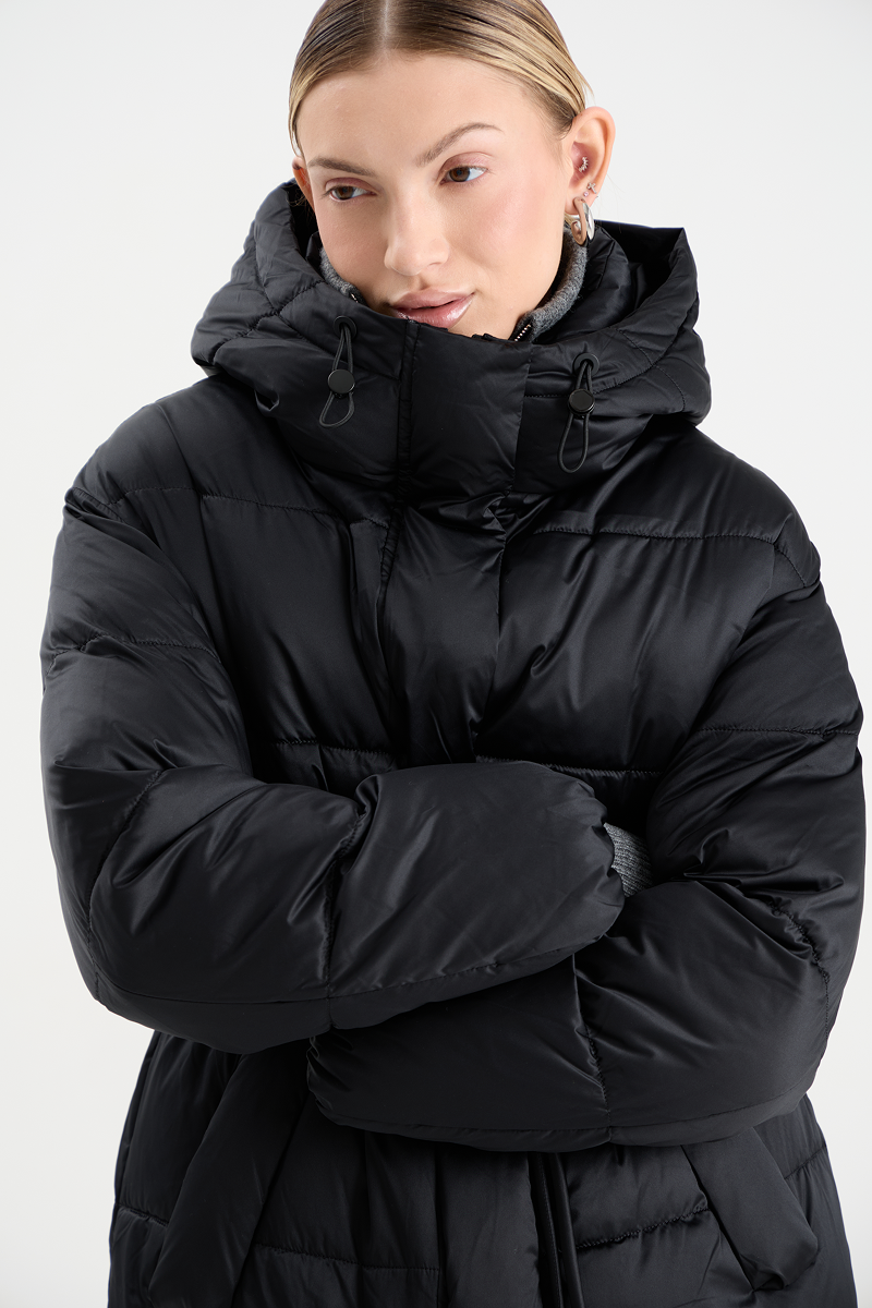 Стильная и тёплая верхняя одежда, которая идеально подойдёт для холодной погоды. Капюшон обеспечивает дополнительную защиту от ветра и осадков, а кулиска на талии позволяет регулировать силуэт и подчёркивать фигуру. Благодаря своему дизайну и удобной конструкции, этот пуховик станет отличным дополнением к вашему гардеробу и позволит выглядеть модно и современно в любую погоду.