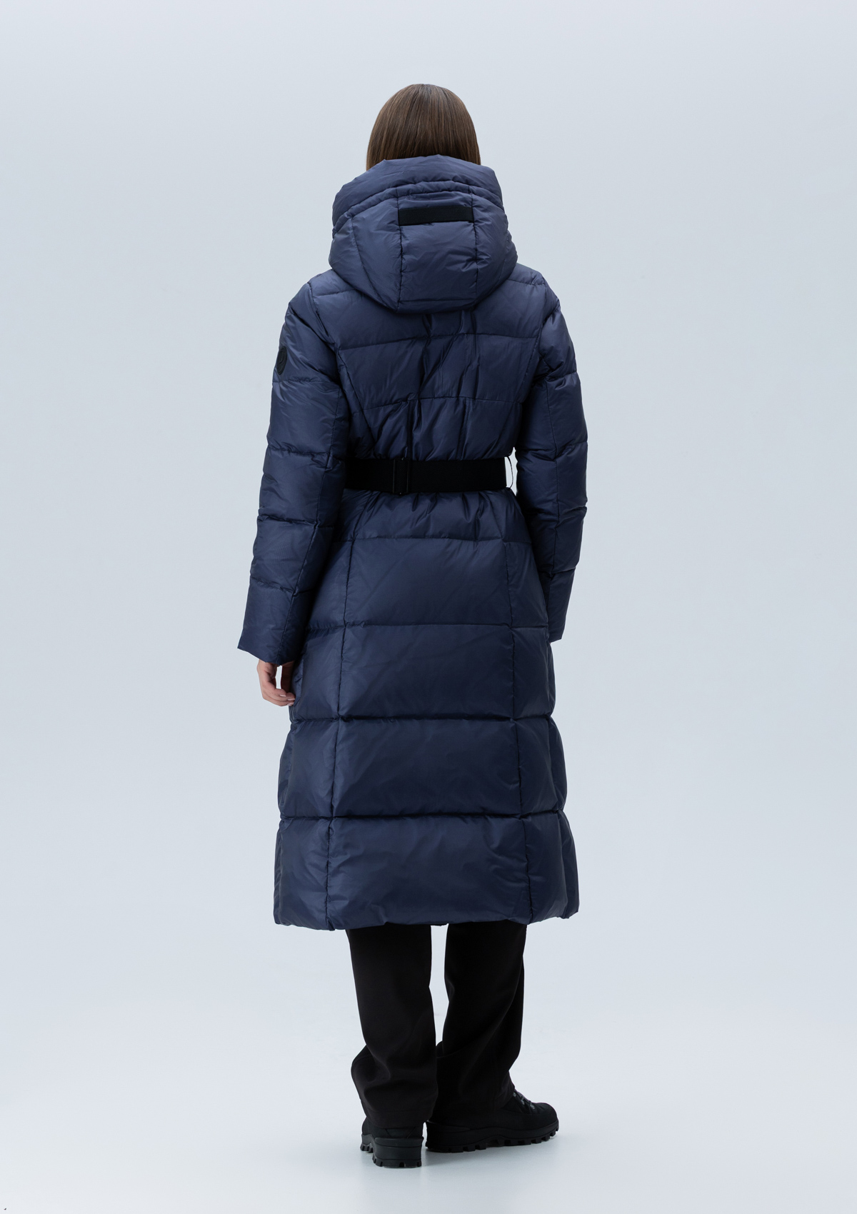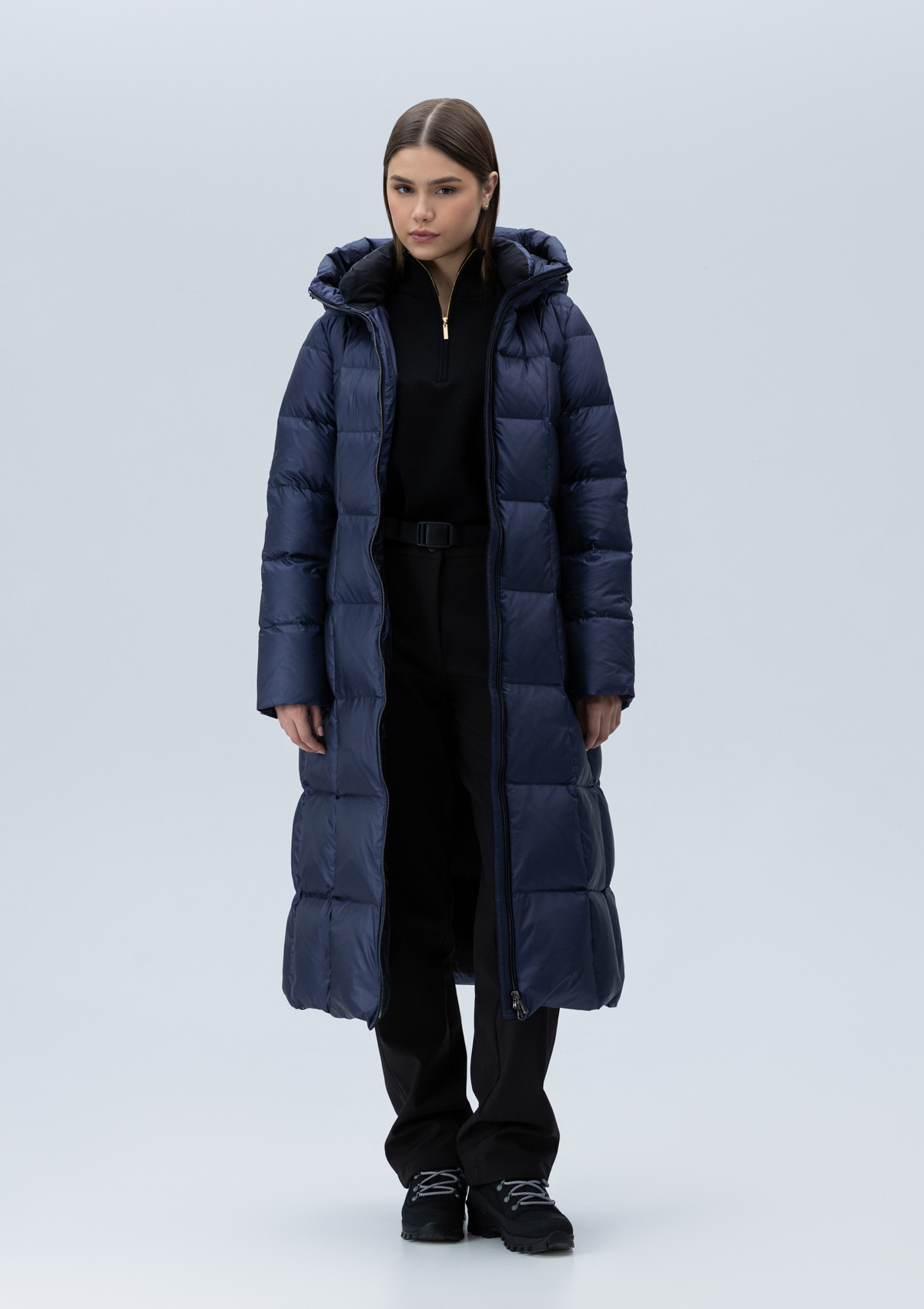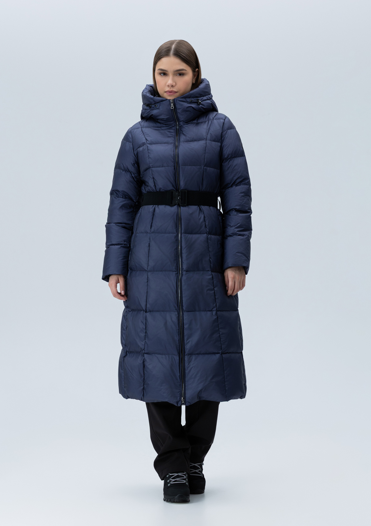Женский длинный пуховик Laplandia из ультралегкой ткани с утеплителем из натурального пуха и пера премиального соотношения. Модель приталенного силуэта с воротником-стойкой, переходящим в капюшоном комфортной глубины. Втачной рукав с внутренней трикотажной манжетой, прорезной карман, застежка на молнию с двойным бегунком и внутренней ветрозащитной планкой. В комплекте прилагается пояс.