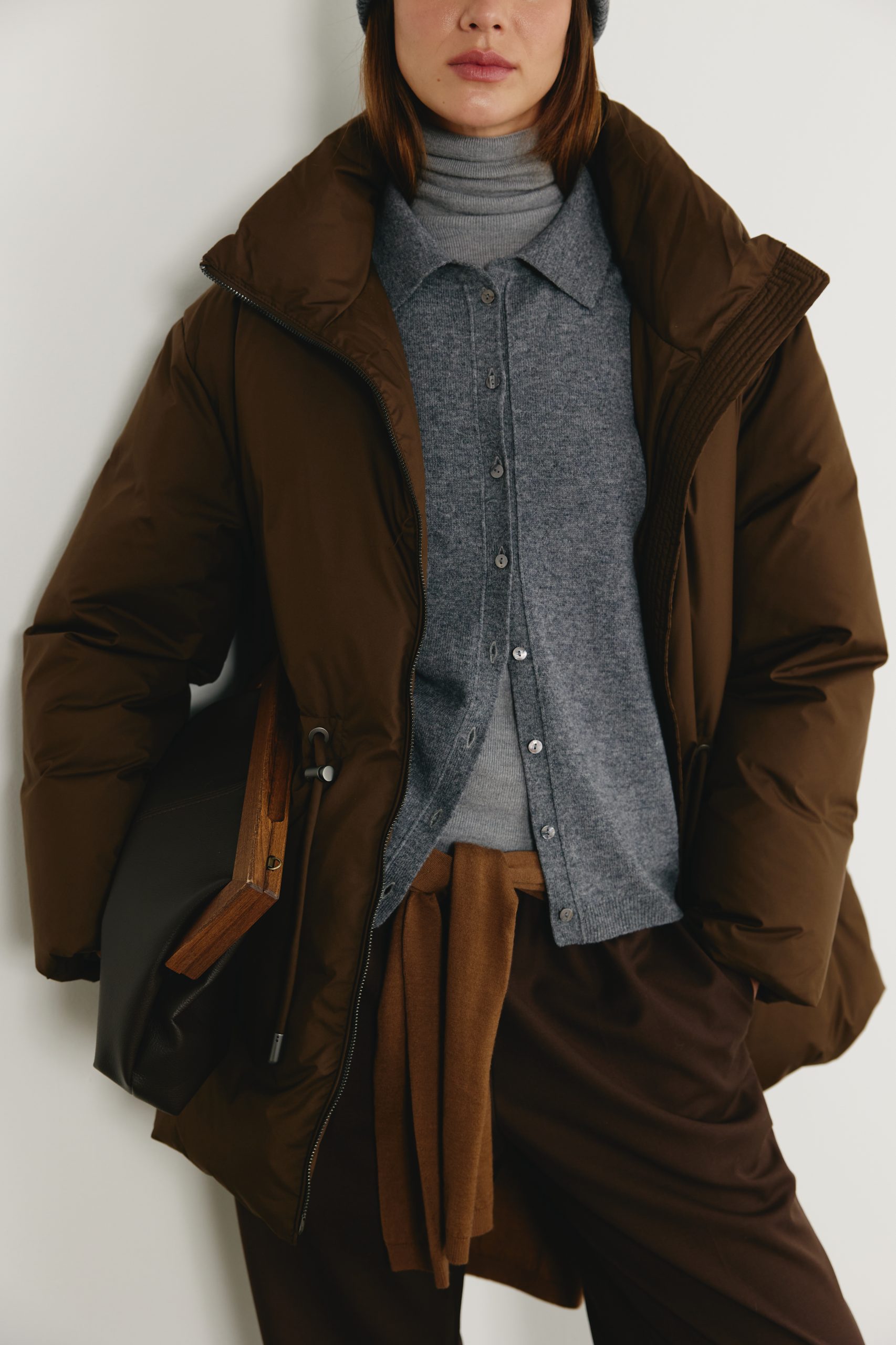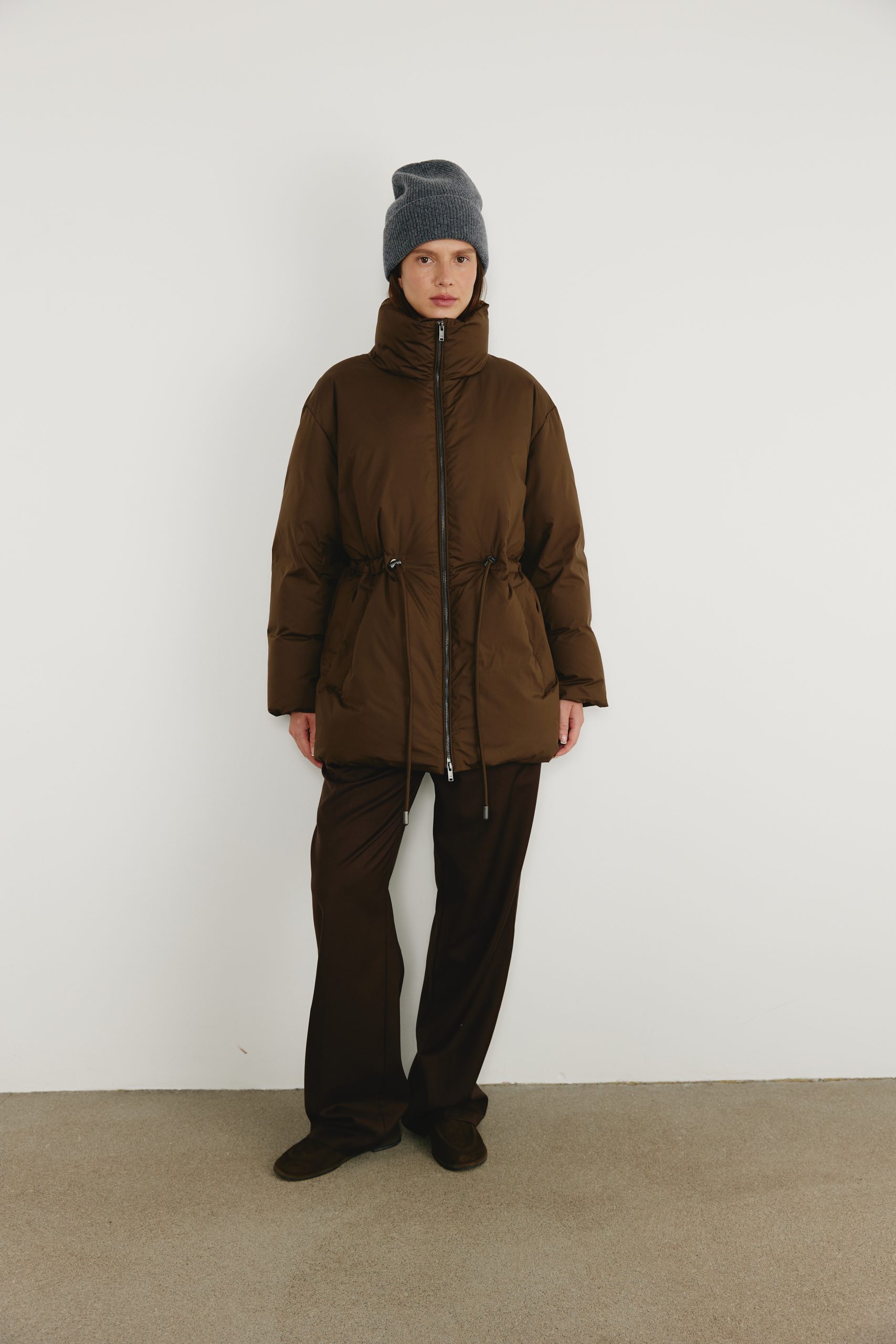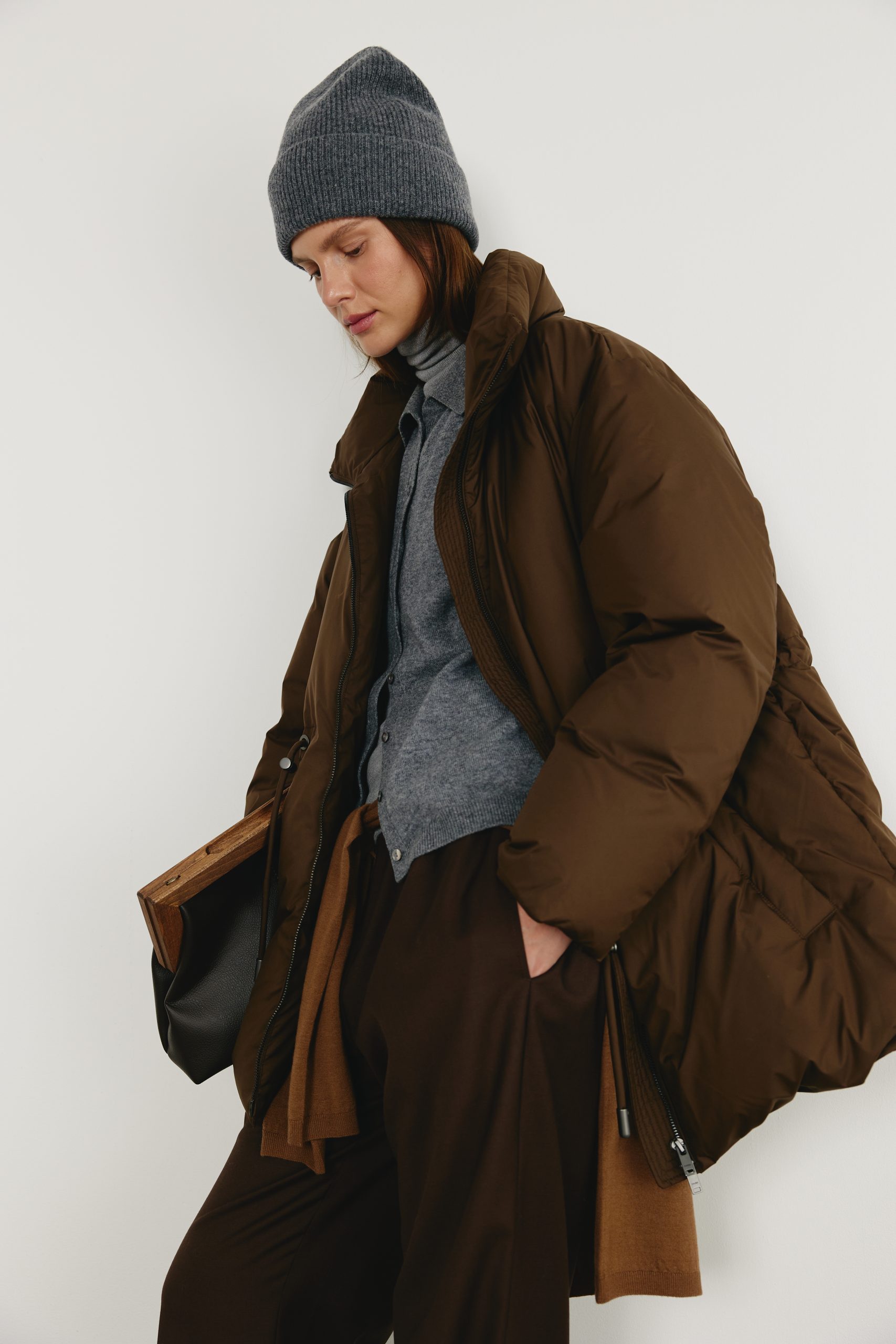 Объемный пуховик Envelope на кулиске в базовом черном оттенке будет обволакивать вас в самые морозные дни. Модель выполнена из натурального утиного пуха, сохраняющего тепло до -15°C. Пуховик дополнен застежкой на двухзамковую молнию из матового металла, высоким воротником-стойкой и кулиской на регуляторах, выполненных из металла. Плотная матовая ткань не пропускает снежинки и случайные капли, а высокий воротник и вязаные манжеты защищают от ветра.