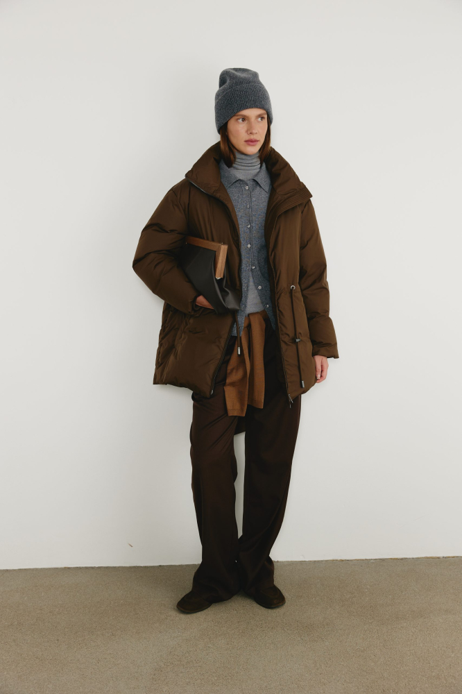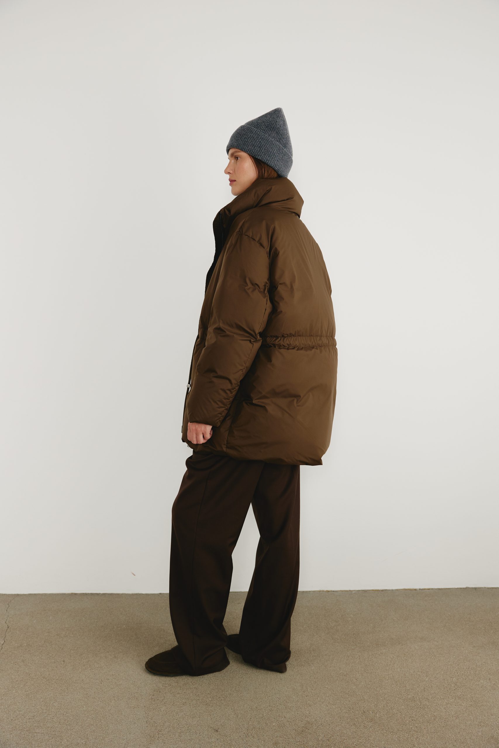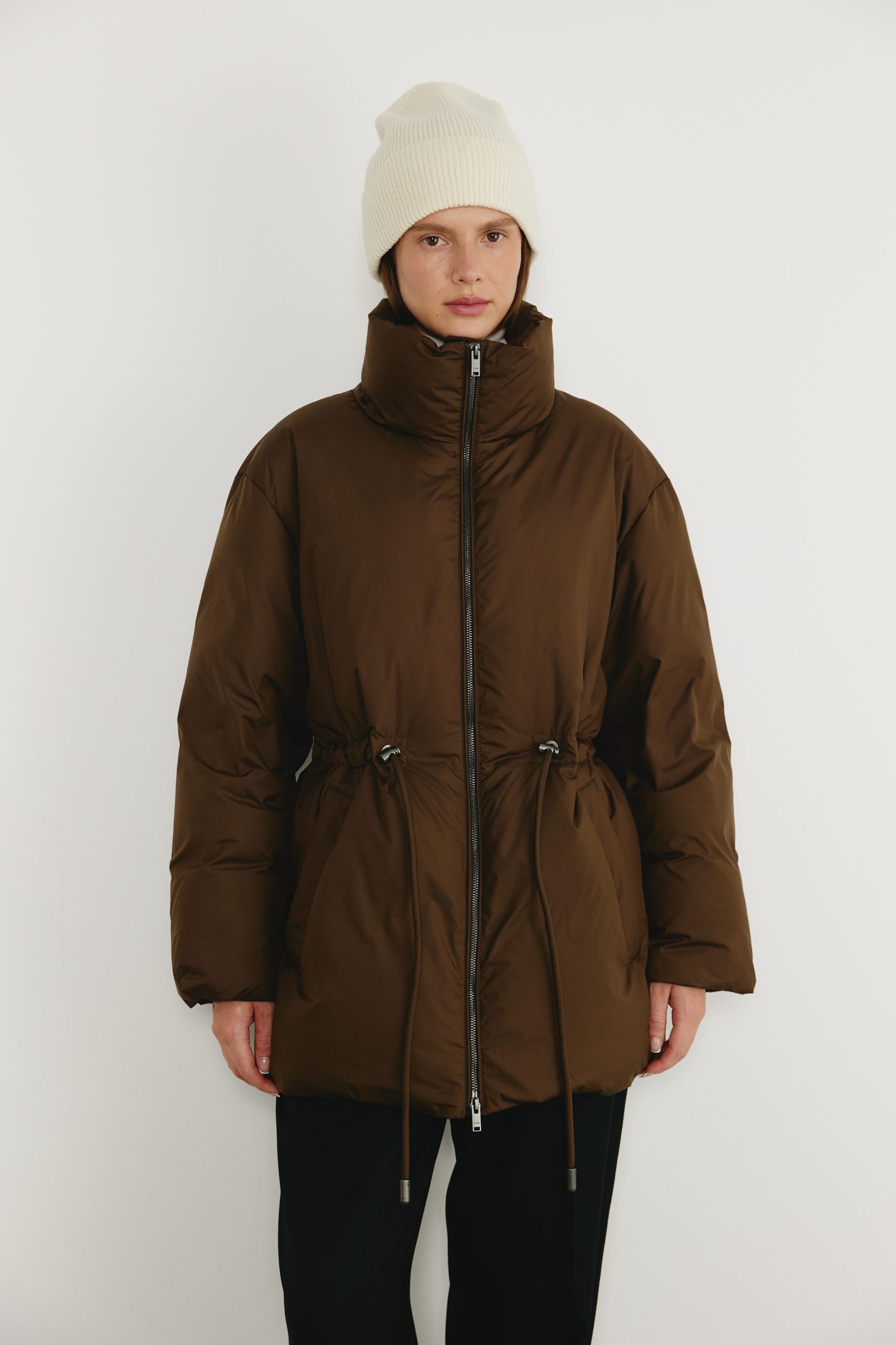 Объемный пуховик Envelope на кулиске в базовом черном оттенке будет обволакивать вас в самые морозные дни. Модель выполнена из натурального утиного пуха, сохраняющего тепло до -15°C. Пуховик дополнен застежкой на двухзамковую молнию из матового металла, высоким воротником-стойкой и кулиской на регуляторах, выполненных из металла. Плотная матовая ткань не пропускает снежинки и случайные капли, а высокий воротник и вязаные манжеты защищают от ветра.