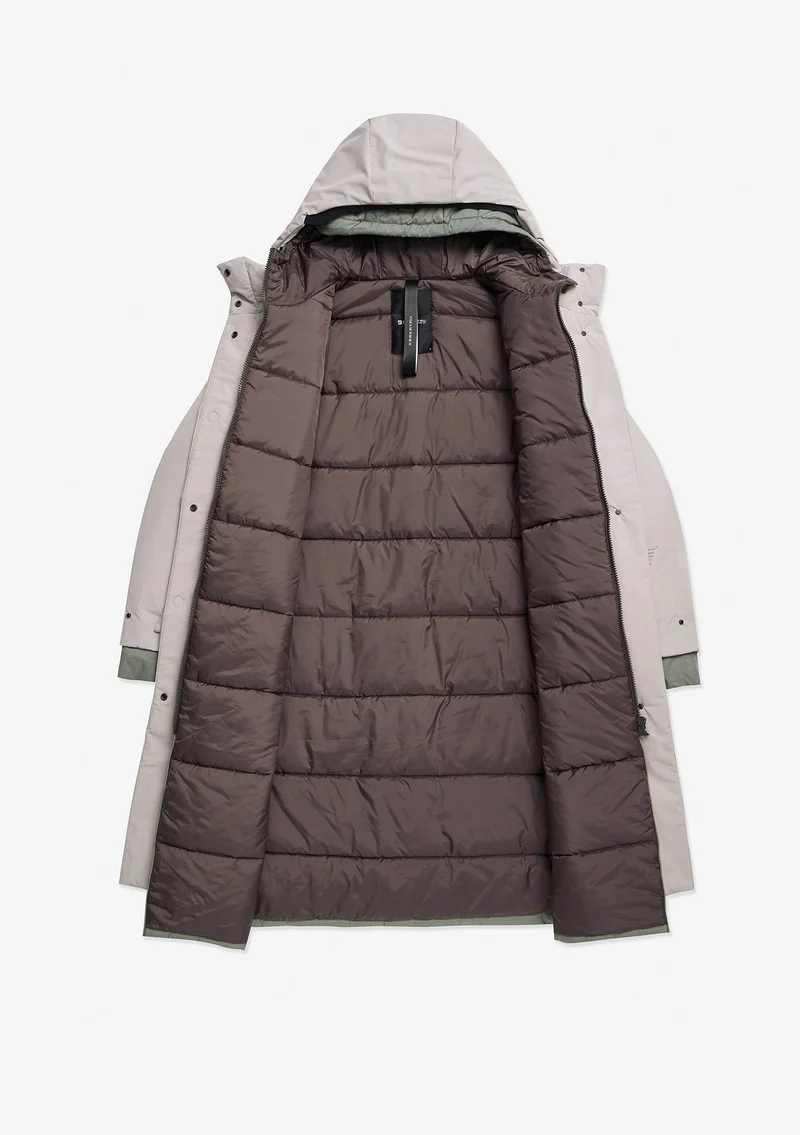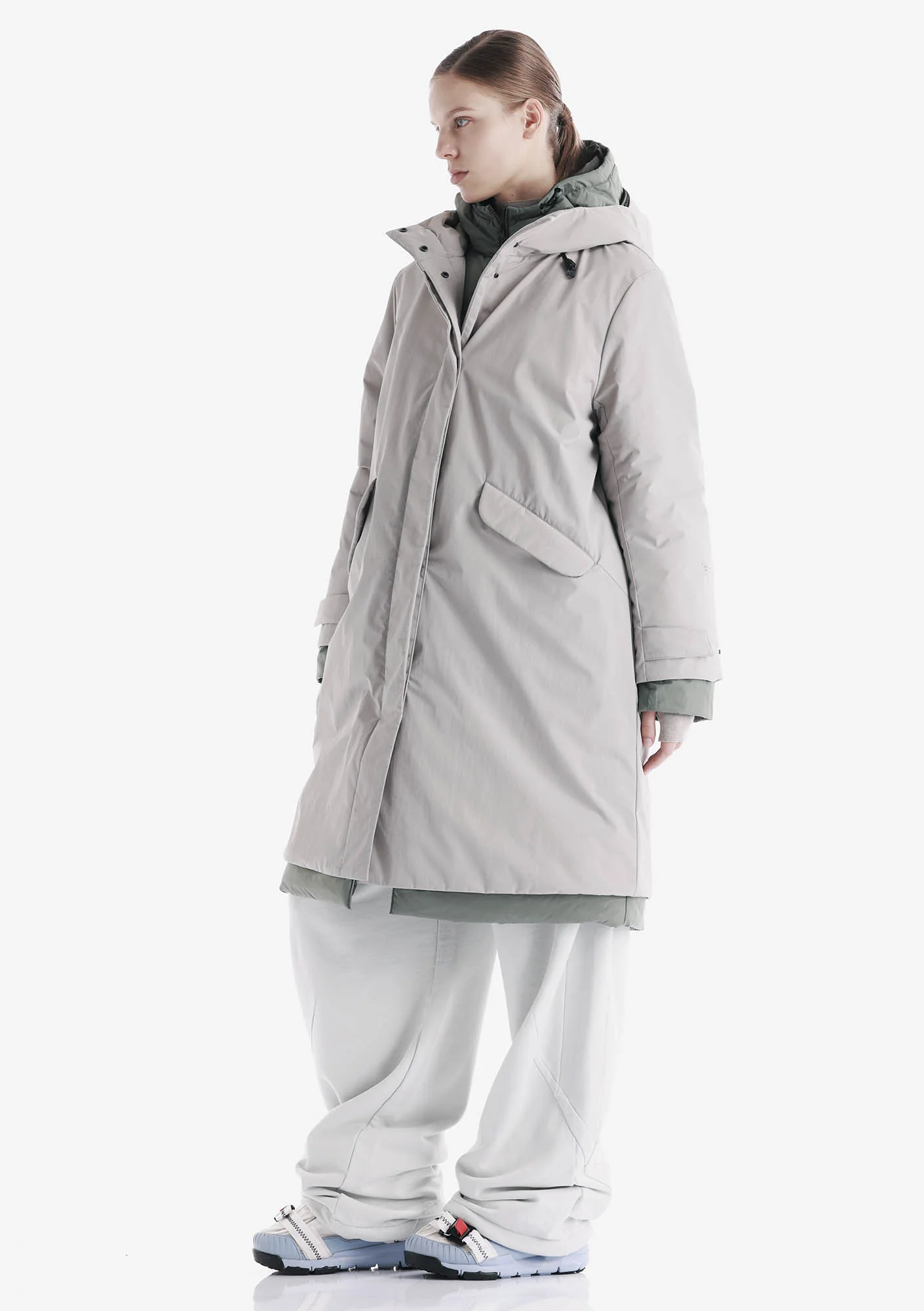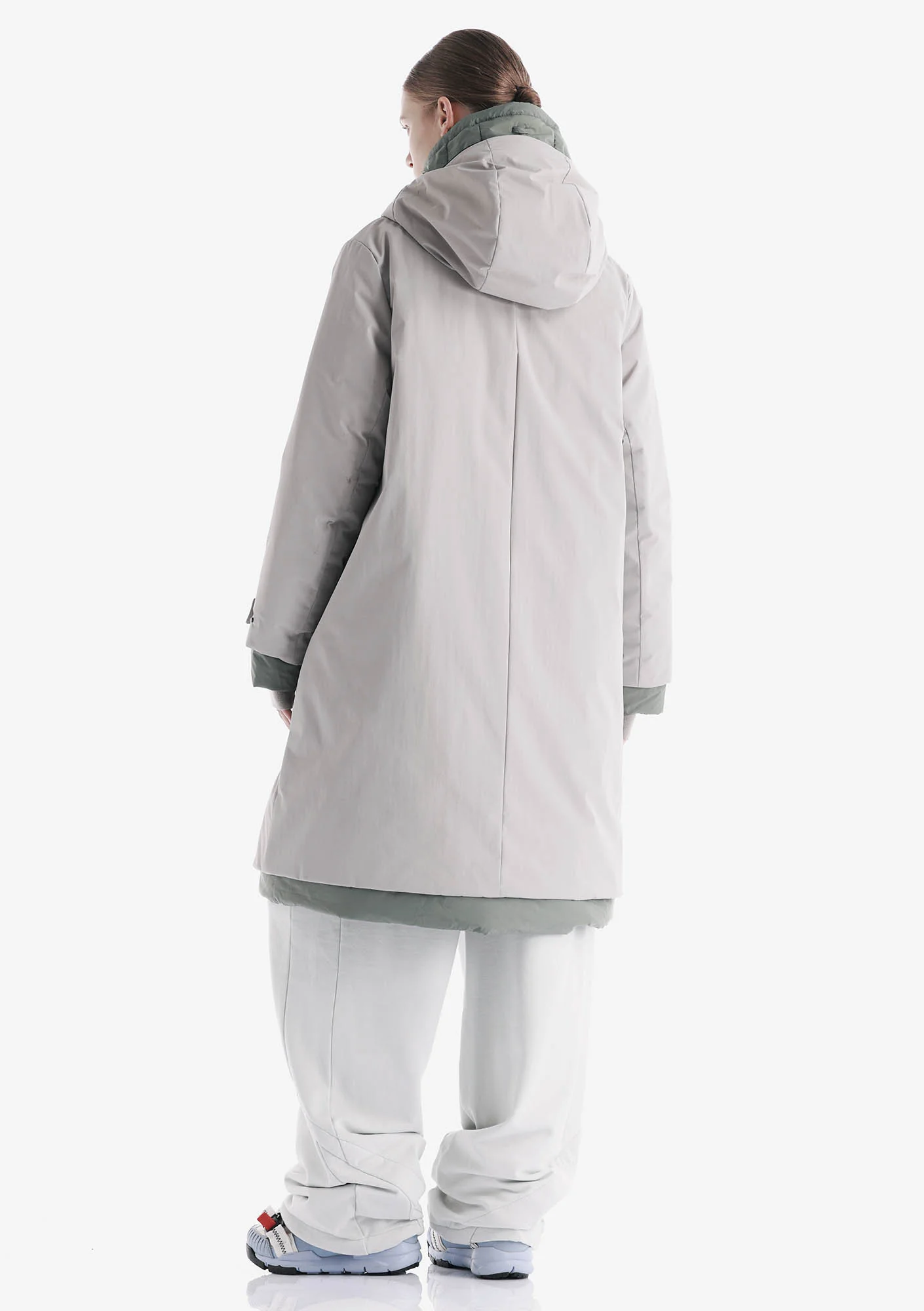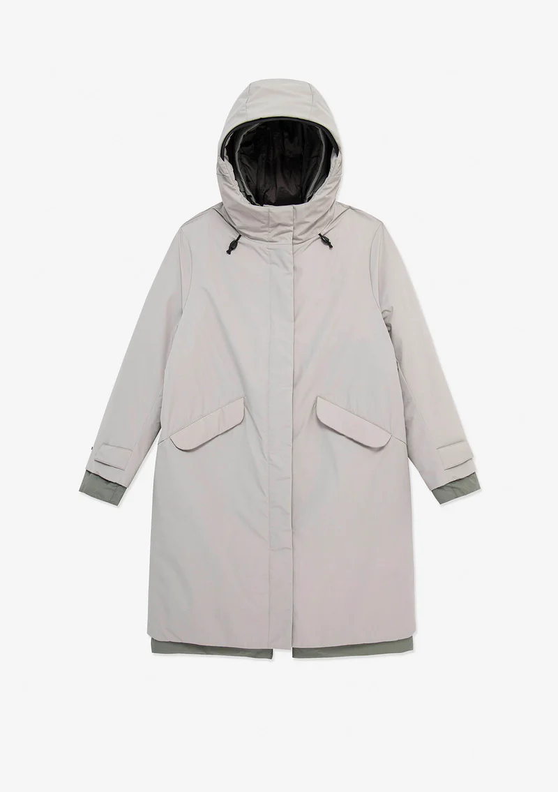 Удлинённая парка VELA с визуальным эффектом многослойности сделана из функциональной водостойкой ткани. Внешний капюшон с жёстким козырьком и внутренний утеплённый капюшон — двойная защита от непогоды. Две застёжки: внешняя — на магнитах и кнопках, внутренняя — на молнии с вентиляцией. Карманы с мягкой подкладкой и скрытые функциональные элементы усиливают комфорт и удобство в динамике.
