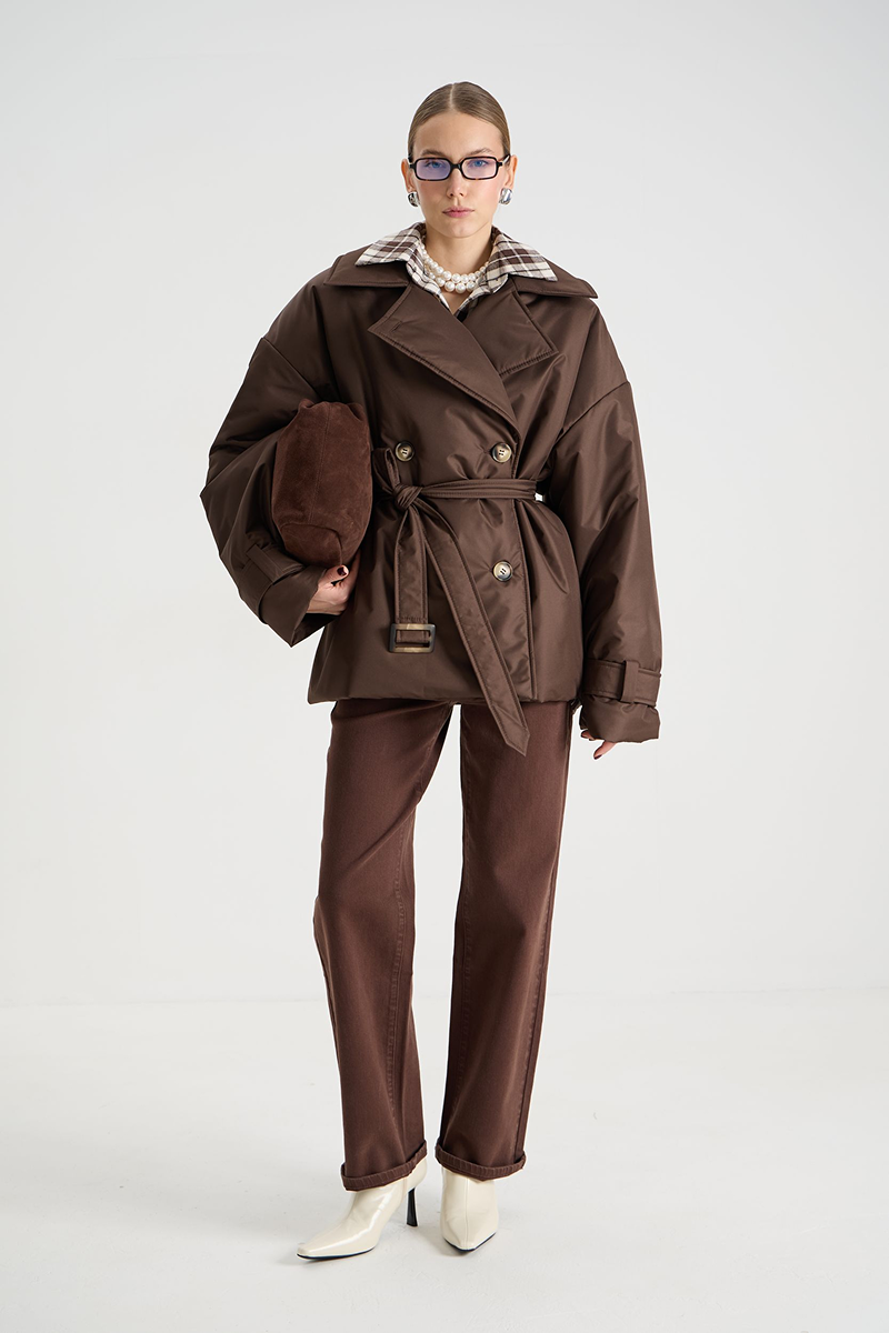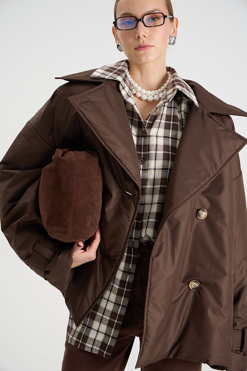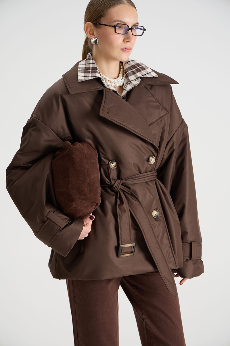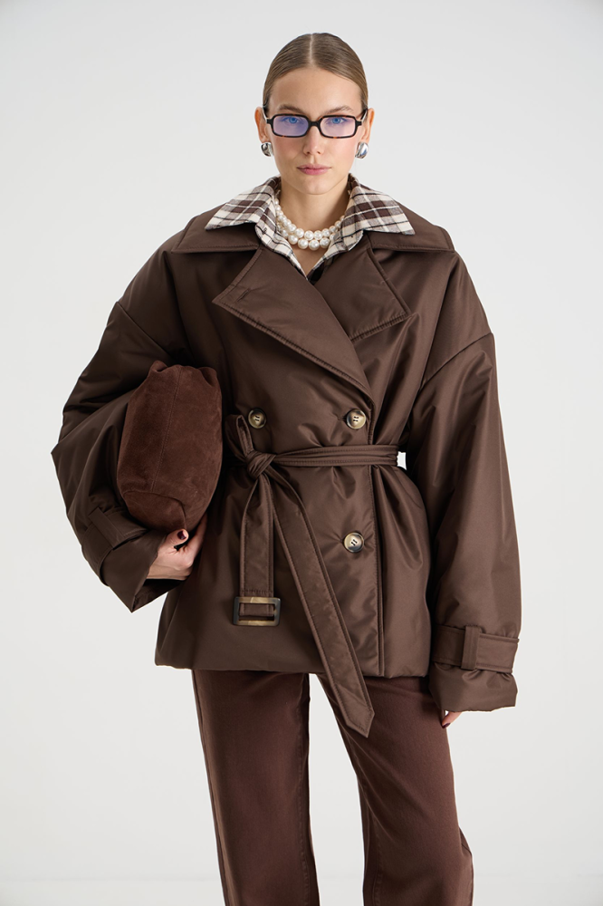 Стильная и функциональная верхняя одежда, которая станет отличным дополнением к вашему гардеробу. Модель отличается укороченным кроем, который подчёркивает изящность силуэта и позволяет легко сочетать тренч с различными элементами одежды.