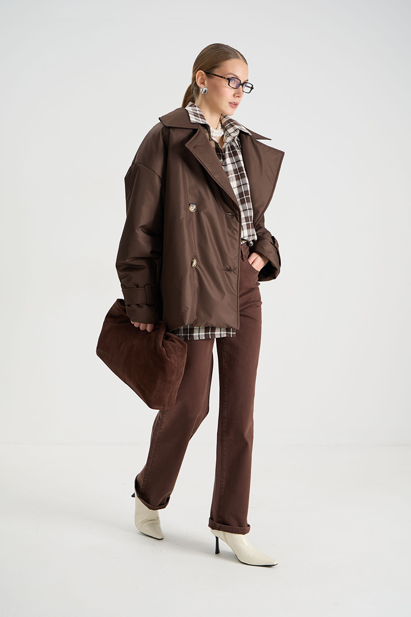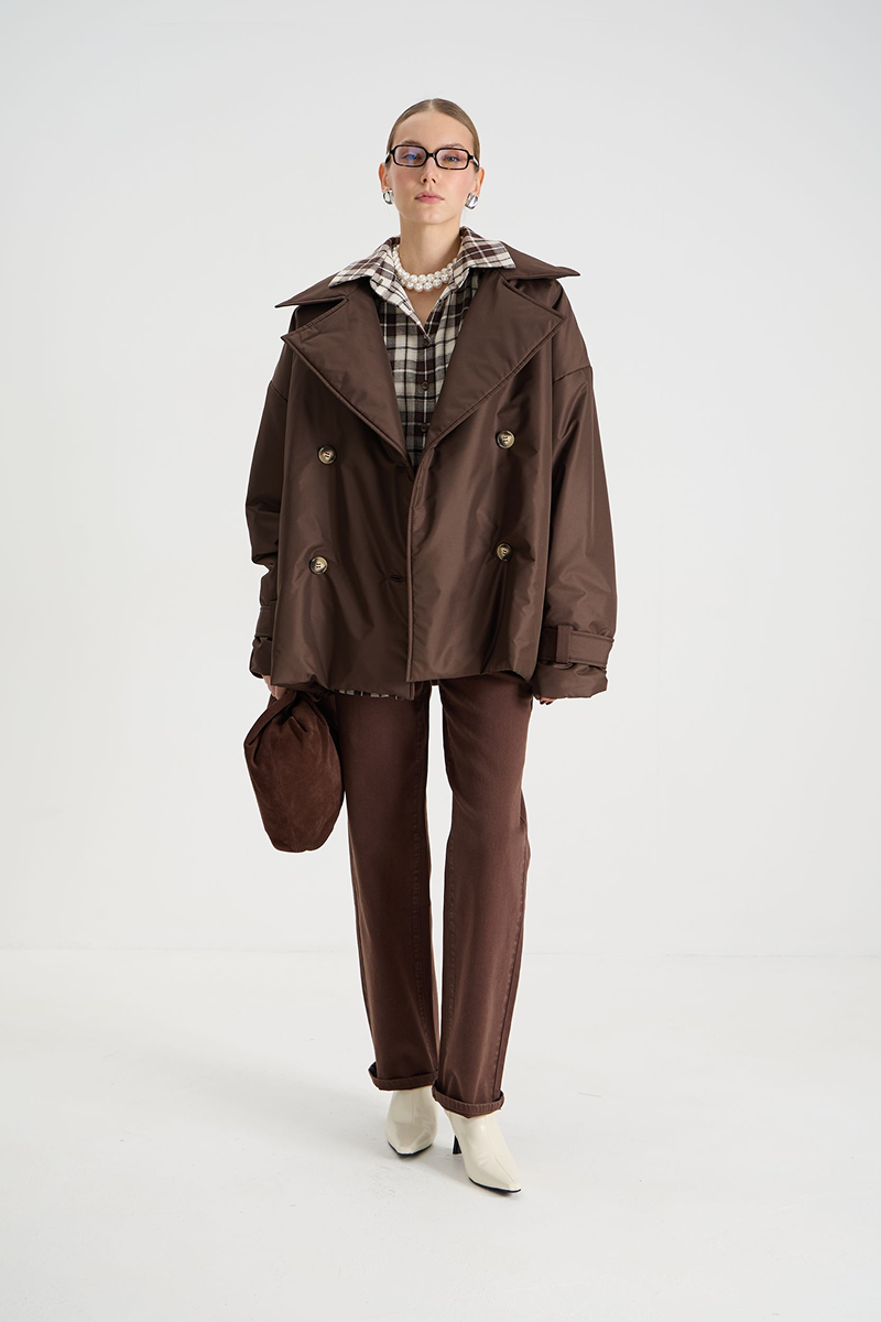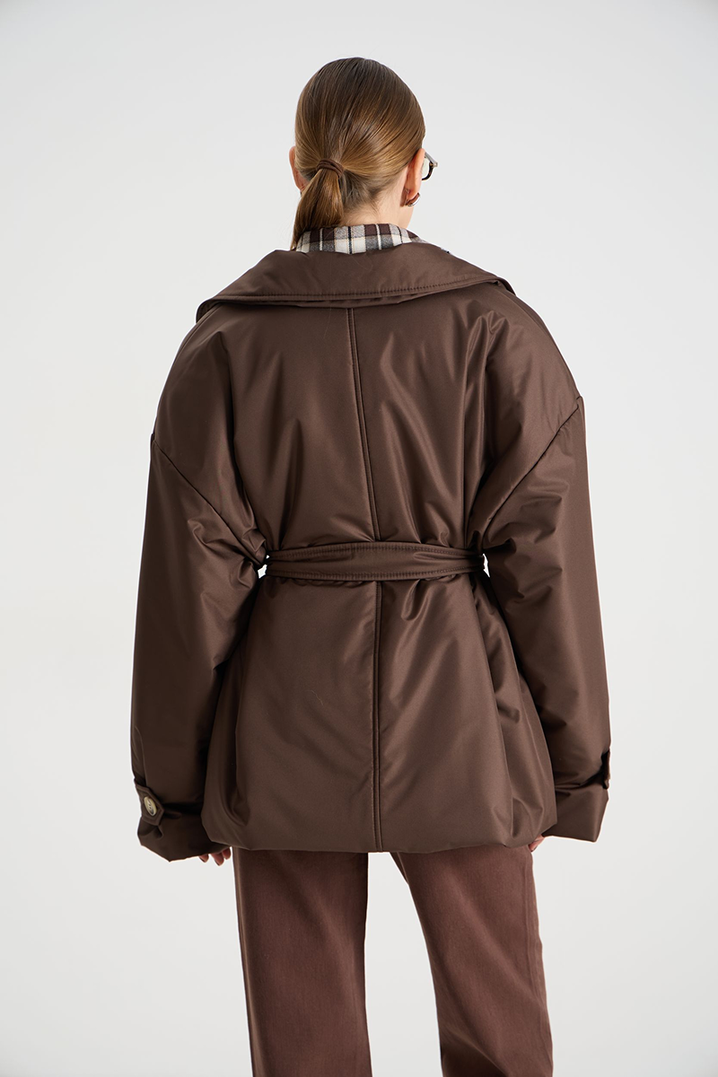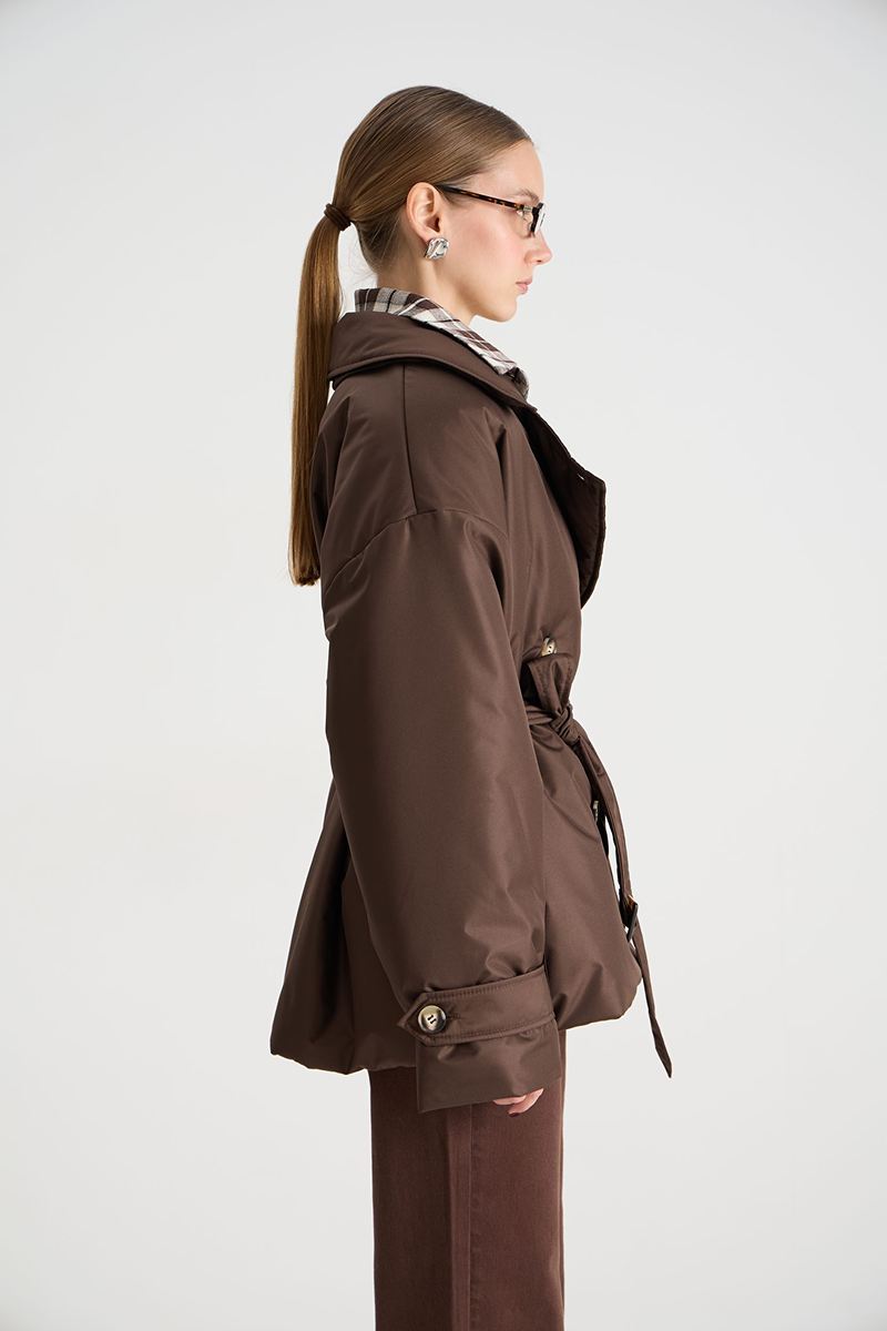 Стильная и функциональная верхняя одежда, которая станет отличным дополнением к вашему гардеробу. Модель отличается укороченным кроем, который подчёркивает изящность силуэта и позволяет легко сочетать тренч с различными элементами одежды.
