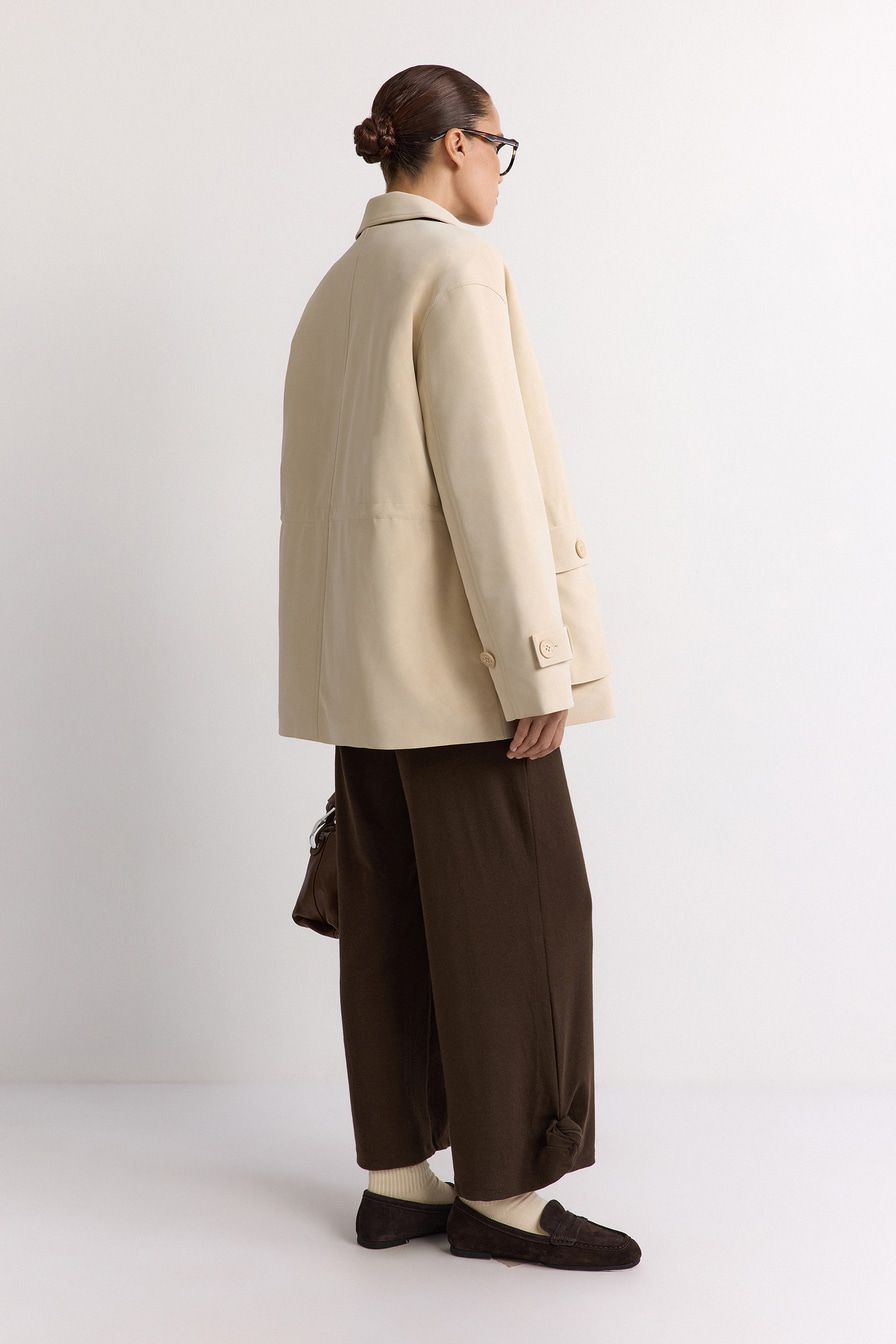«В офис носите куртку в комплекте с широкими брюками, рубашкой свободного кроя и высокими ботинками».