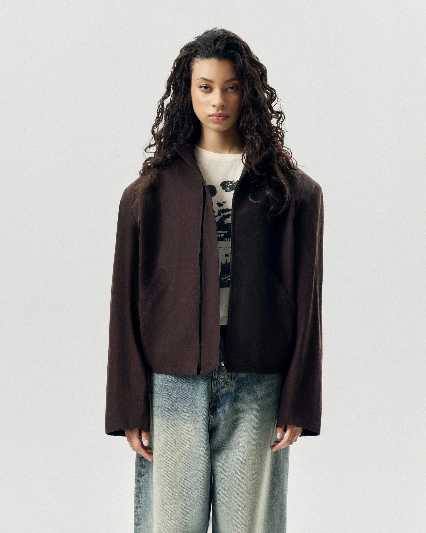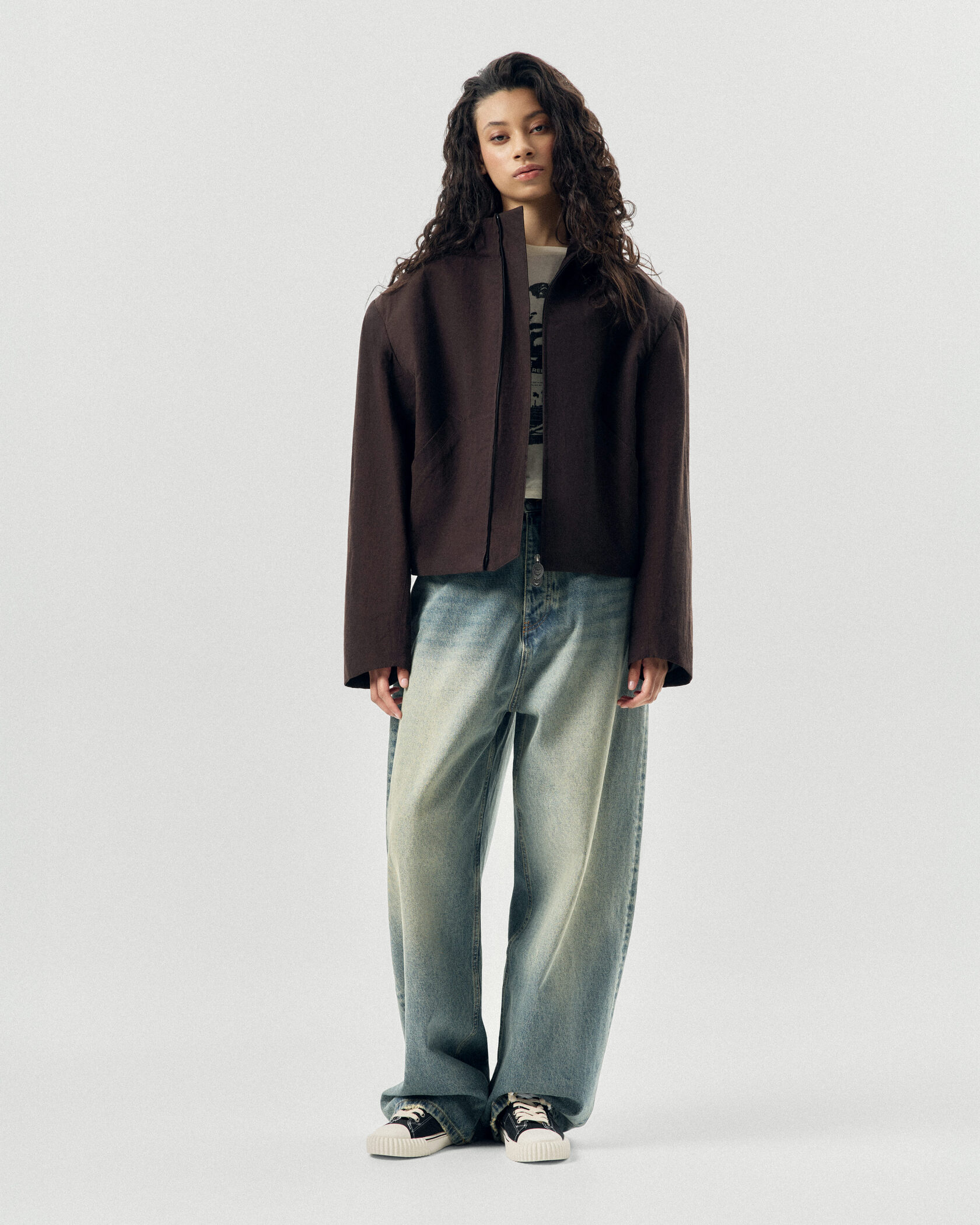 Куртка из плотного хлопка (205 г/м²) с подкладкой из атласной ткани для комфорта в межсезонье. Умеренно свободный крой, воротник-стойка и длинные рукава создают сдержанный современный силуэт. Функциональность дополняют прорезные карманы по бокам и один внутренний карман. Модель рассчитана на прохладную погоду (до +10 °C ) и легко интегрируется в базовый гардероб - сочетается с лонгсливами, худи, джинсами и спортивными брюками из коллекции.