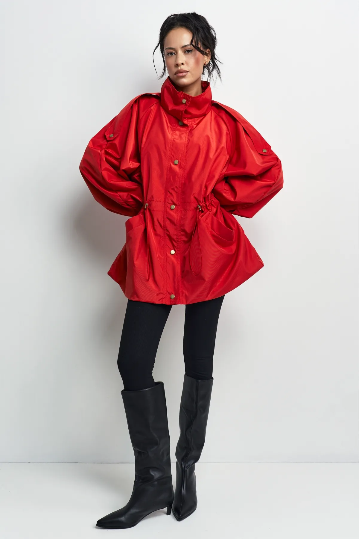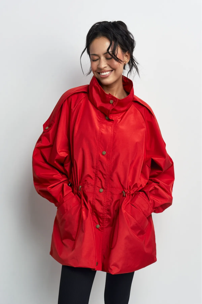 Объемная куртка-реглан на кулиске создана для стильных повседневных образов и динамичной жизни в городе — носите ее с джинсами и обувью на плоском ходу.