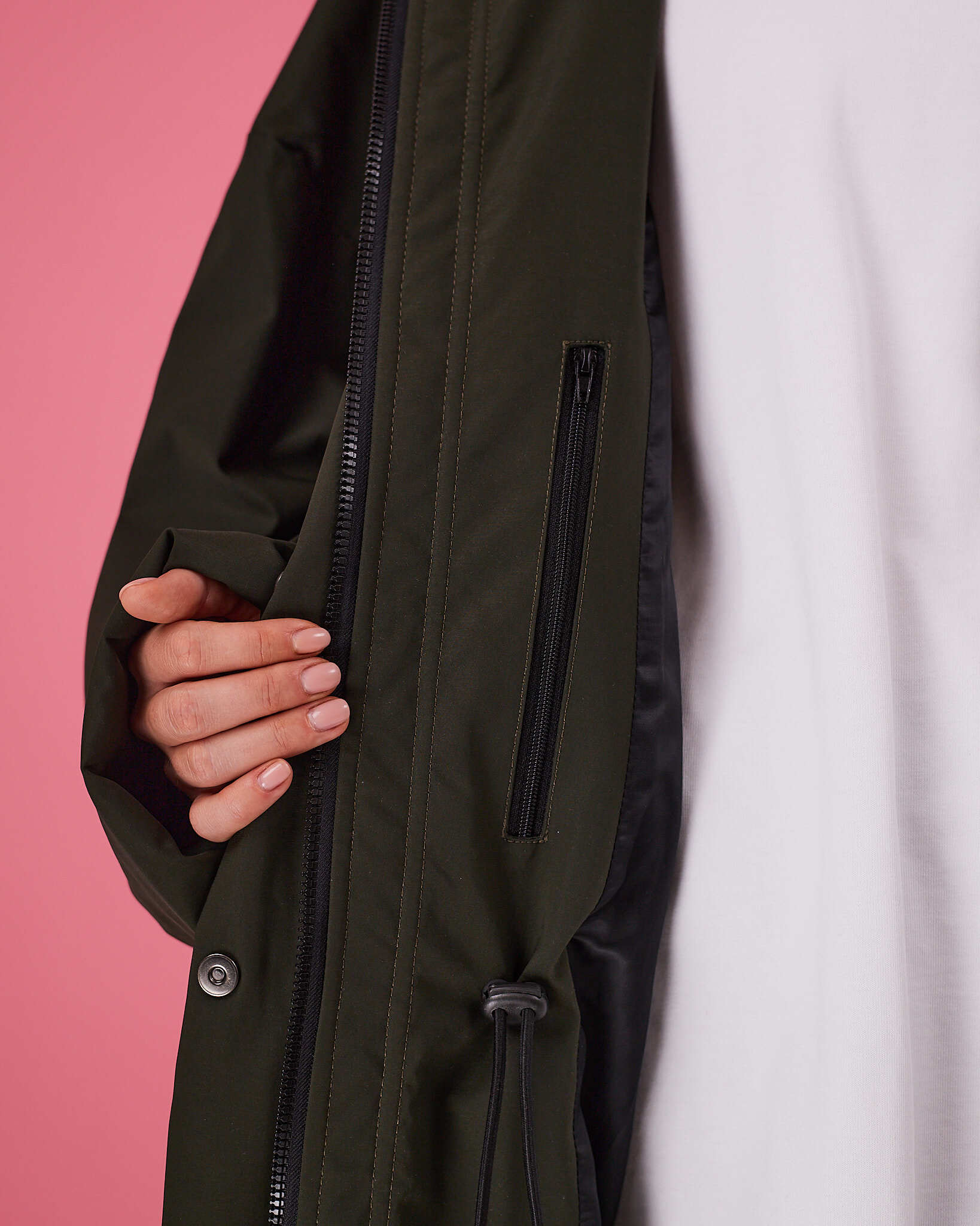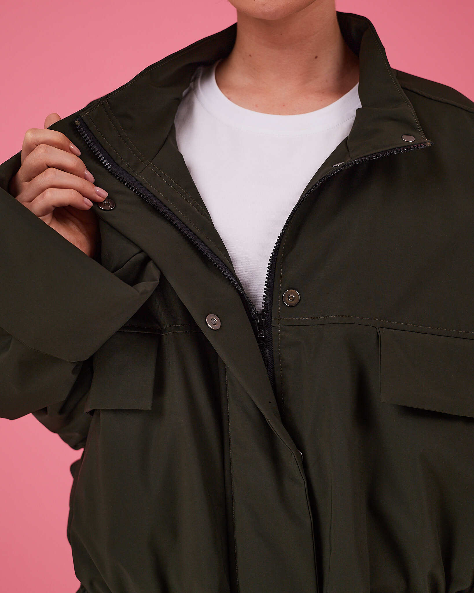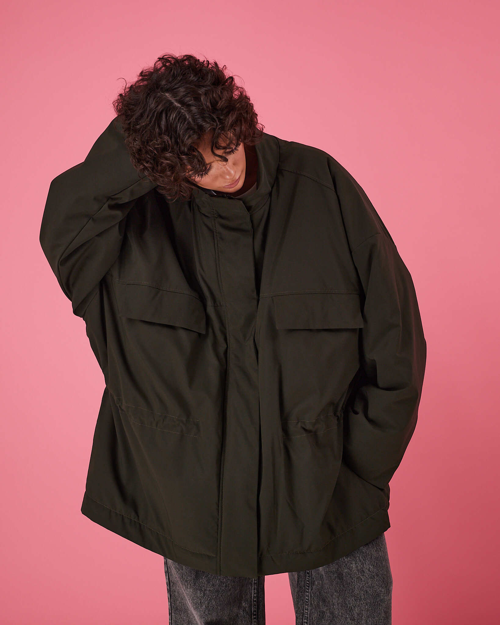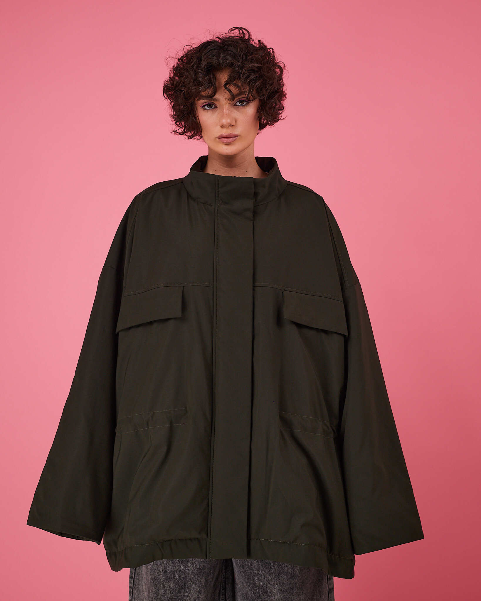 Куртка выполнена в актуальном свободном силуэте с возможностью трансформации: благодаря кулиске по талии вы легко меняете посадку — носите куртку расслабленно оверсайз или подчеркните фигуру, затянув её.
