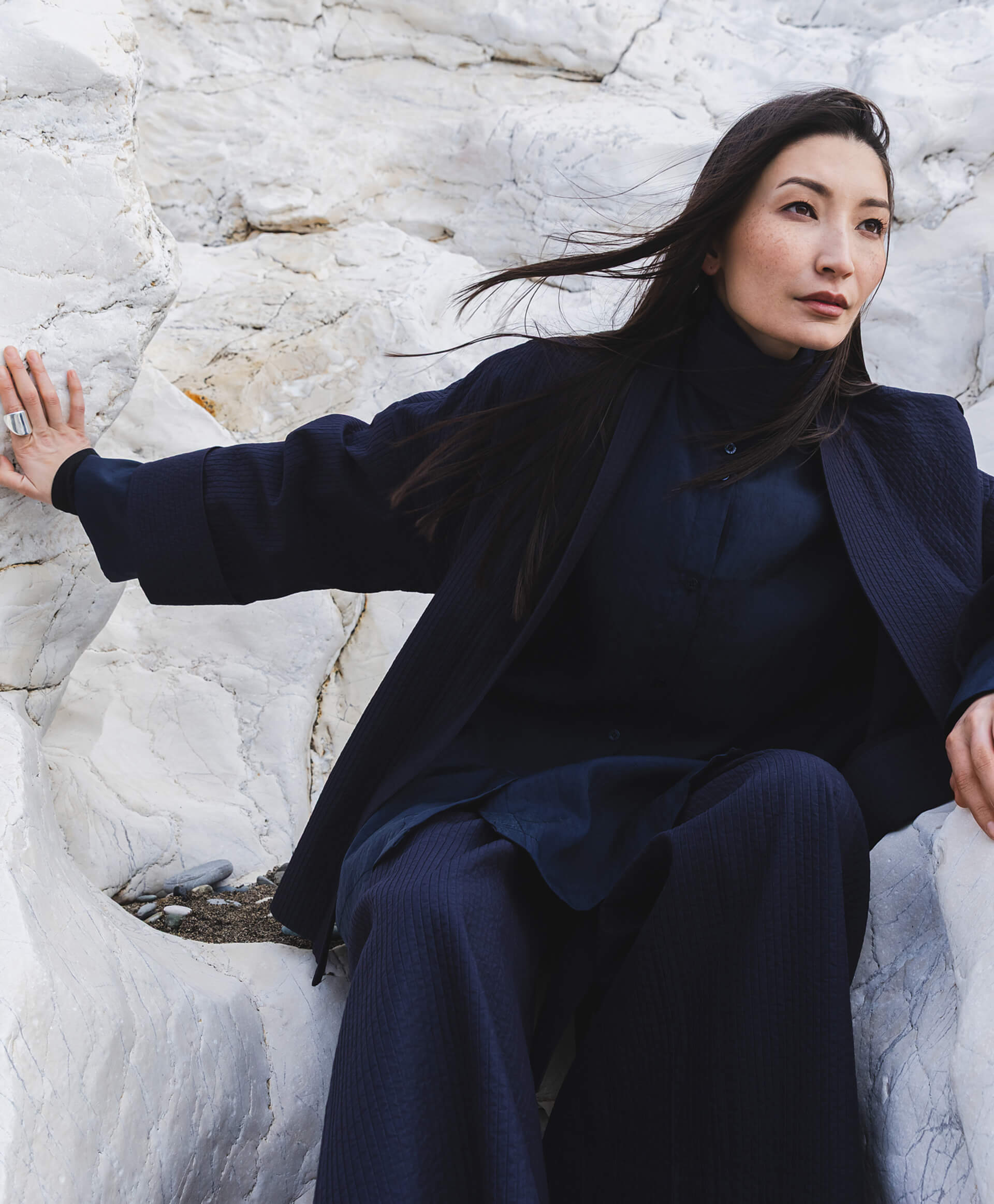 Куртка-кимоно - острая модная вещь, способная стать стилеобразующим элементом образа женщины. Выполненная из ткани с выразительной вертикальной жатой структурой, придающей ей интересный и нарядный вид, куртка-кимоно, вдохновленная японской культурой, выглядит элегантно, дорого, концептуально по эстетике, форме, крою. Модный цвет из палитры глубоких, насыщенных синих оттенков способствует свежему эмоциональному восприятию вещи. Глубокий запах, фиксирующийся с помощью длинного пояса, подчеркивает существенное достоинство модели - универсальность. Она может выглядеть просто и демократично в сочетании с майкой и джинсами, а также служить завершением нарядного образа для светского мероприятия. В любом случае, куртка-кимоно создаст оригинальный комплект в полном соответствии с актуальными трендами.
