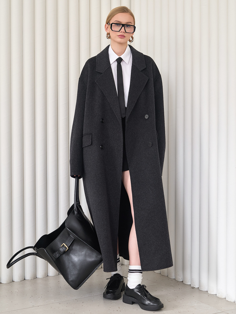 Строгое длинное пальто — идеальная основа для осенних деловых образов.