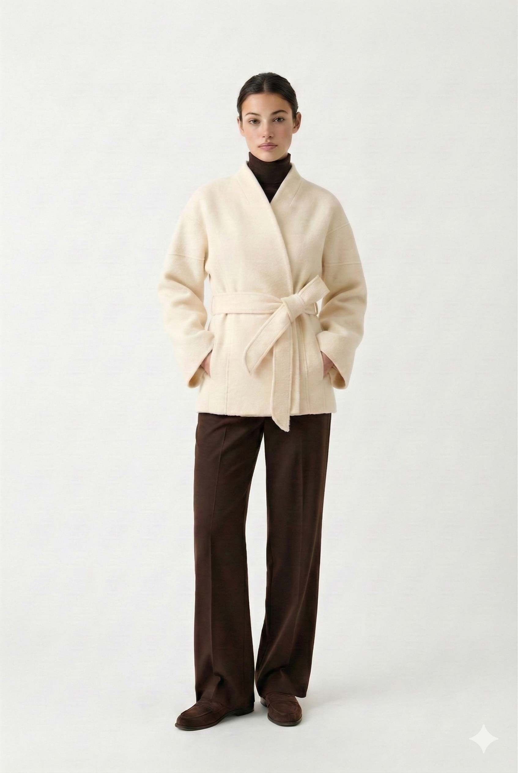 Это пальто подойдет как для повседневных прогулок, так и для особых случаев. Его универсальный дизайн позволяет сочетать изделие с различными аксессуарами и обувью.