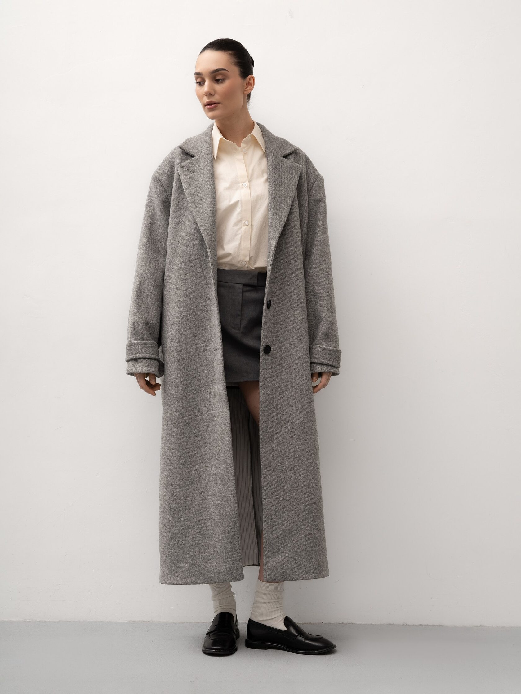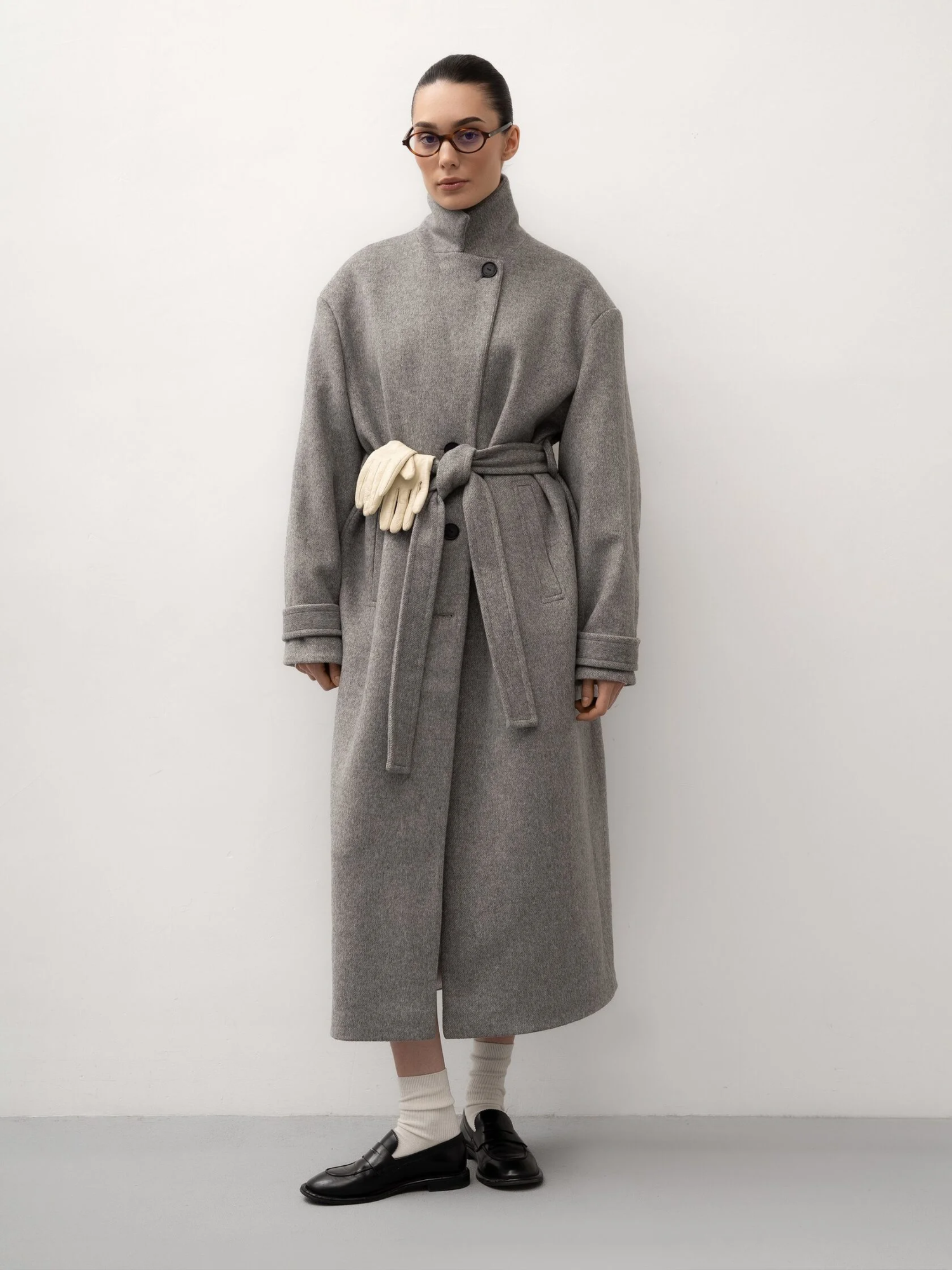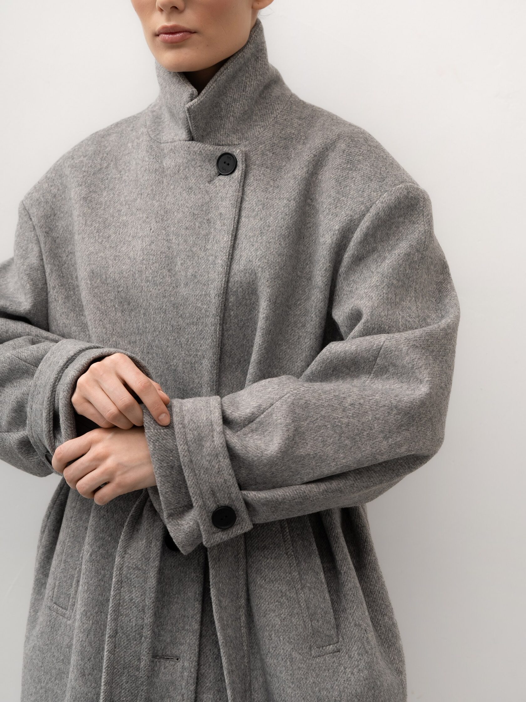 Серое пальто с поясом создает женственный образ без потери комфорта и подчеркивает фигуру. Шерсть в составе делает пальто теплым и подходящим для холодного сезона, а лаконичный дизайн позволяет носить его как с повседневными комплектами, так и с более элегантными образами. Универсальная вещь для спокойного городского гардероба.