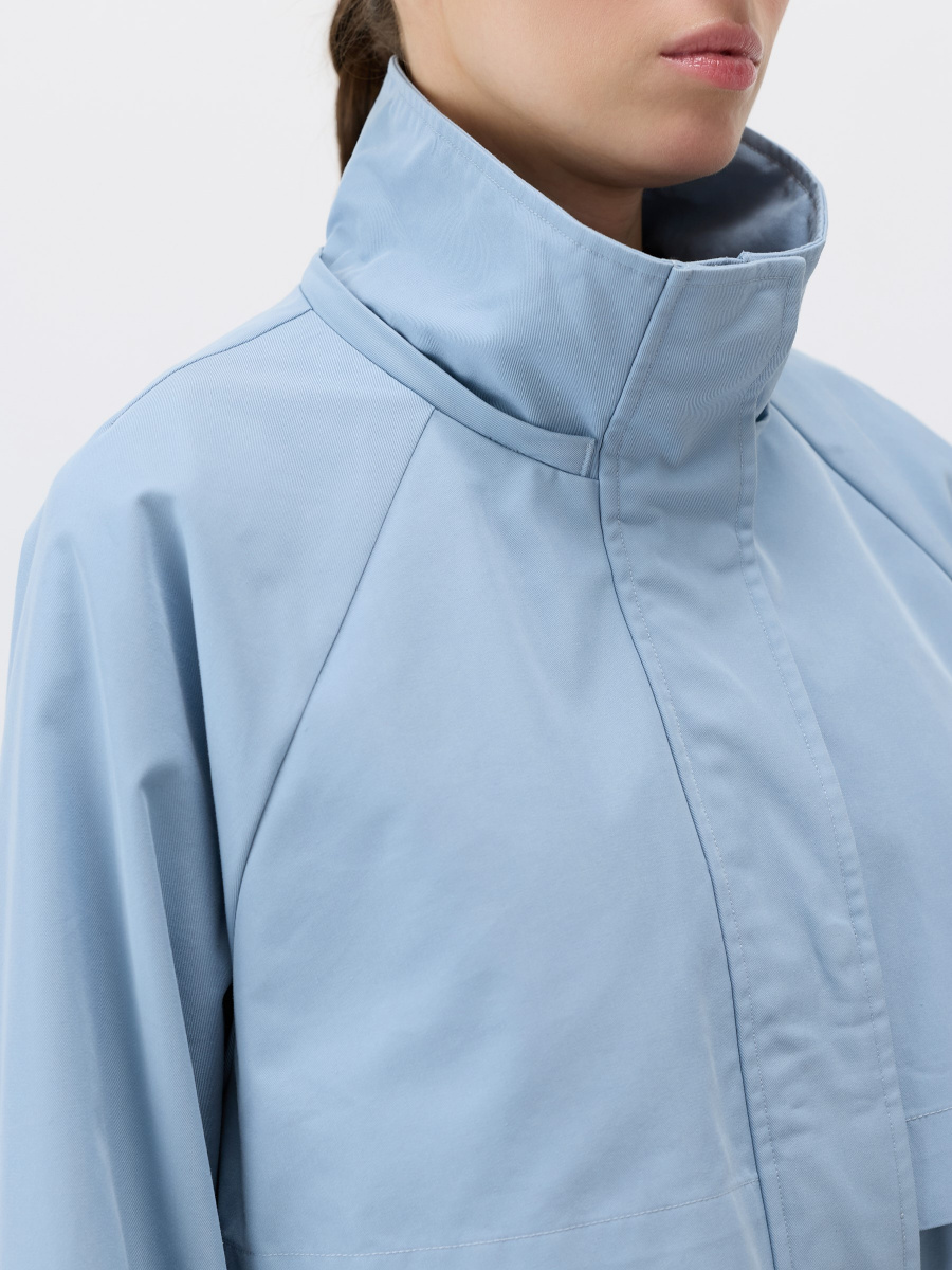 съемным капюшоном и отлетными кокетками, которые добавляют объем и защищают от ветра. Рукава реглан мягко подстраиваются под объем плеч, а кулиса на талии позволяет регулировать облегание. Застежка на молнию и кнопки усилена ветрозащитной планкой. Изделие дополнено вместительными карманами.