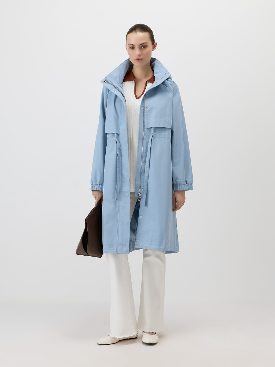 Лаконичный плащ из непродуваемой хлопковой ткани для переменчивого межсезонья. Дополнен