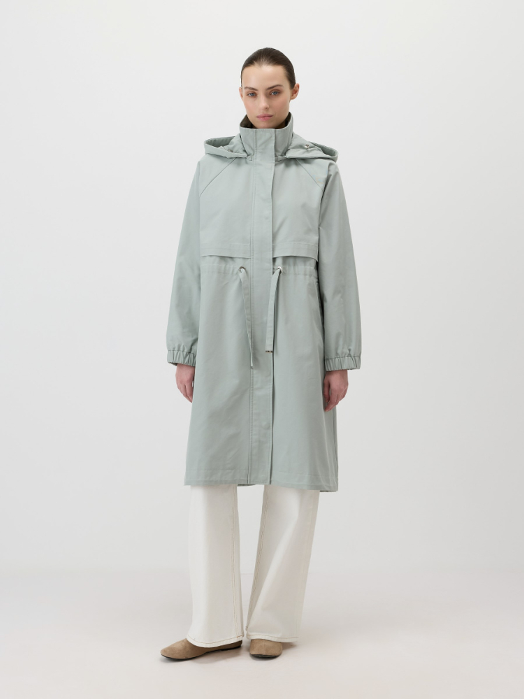 Лаконичный плащ из непродуваемой хлопковой ткани для переменчивого межсезонья. Дополнен