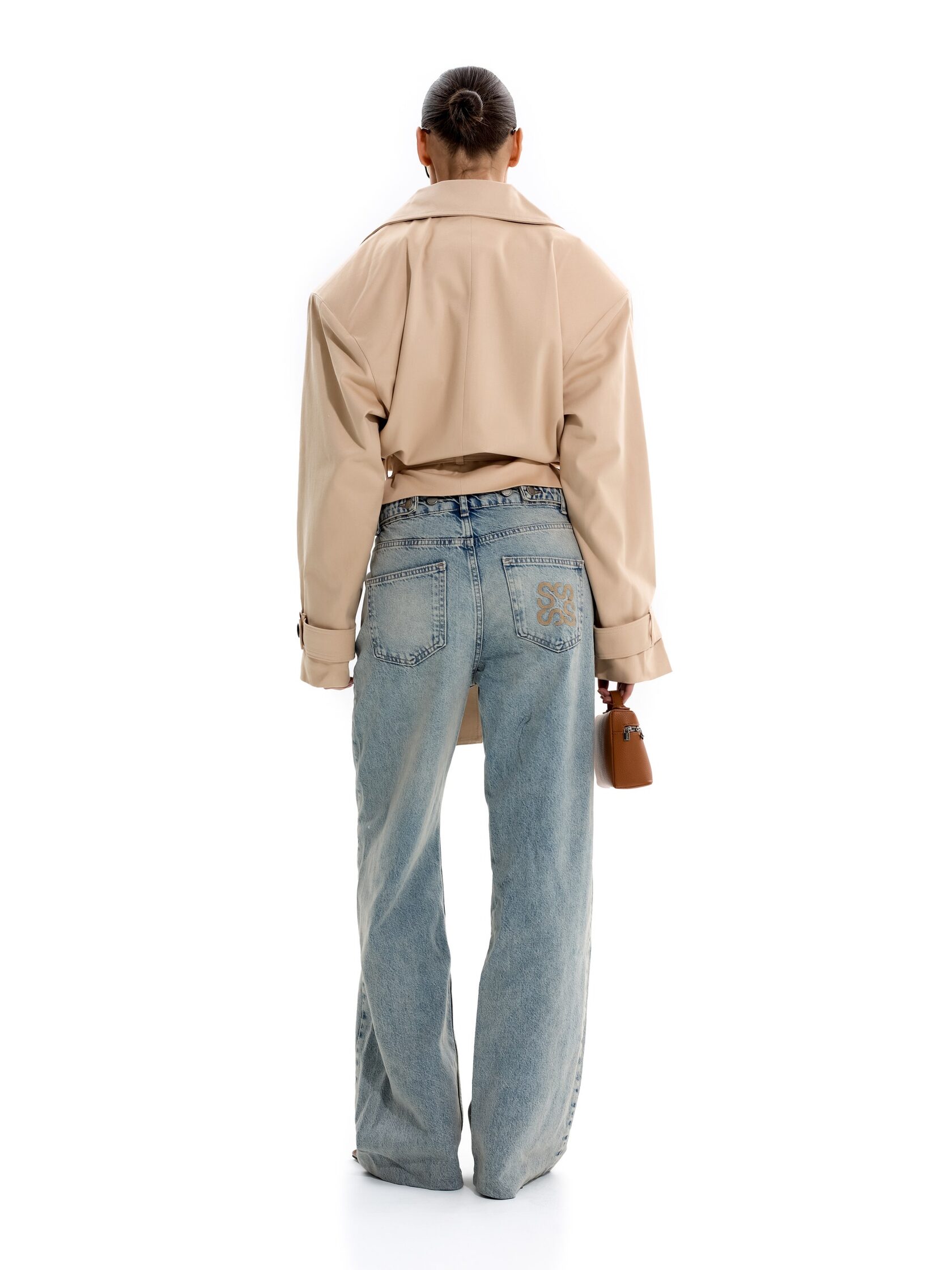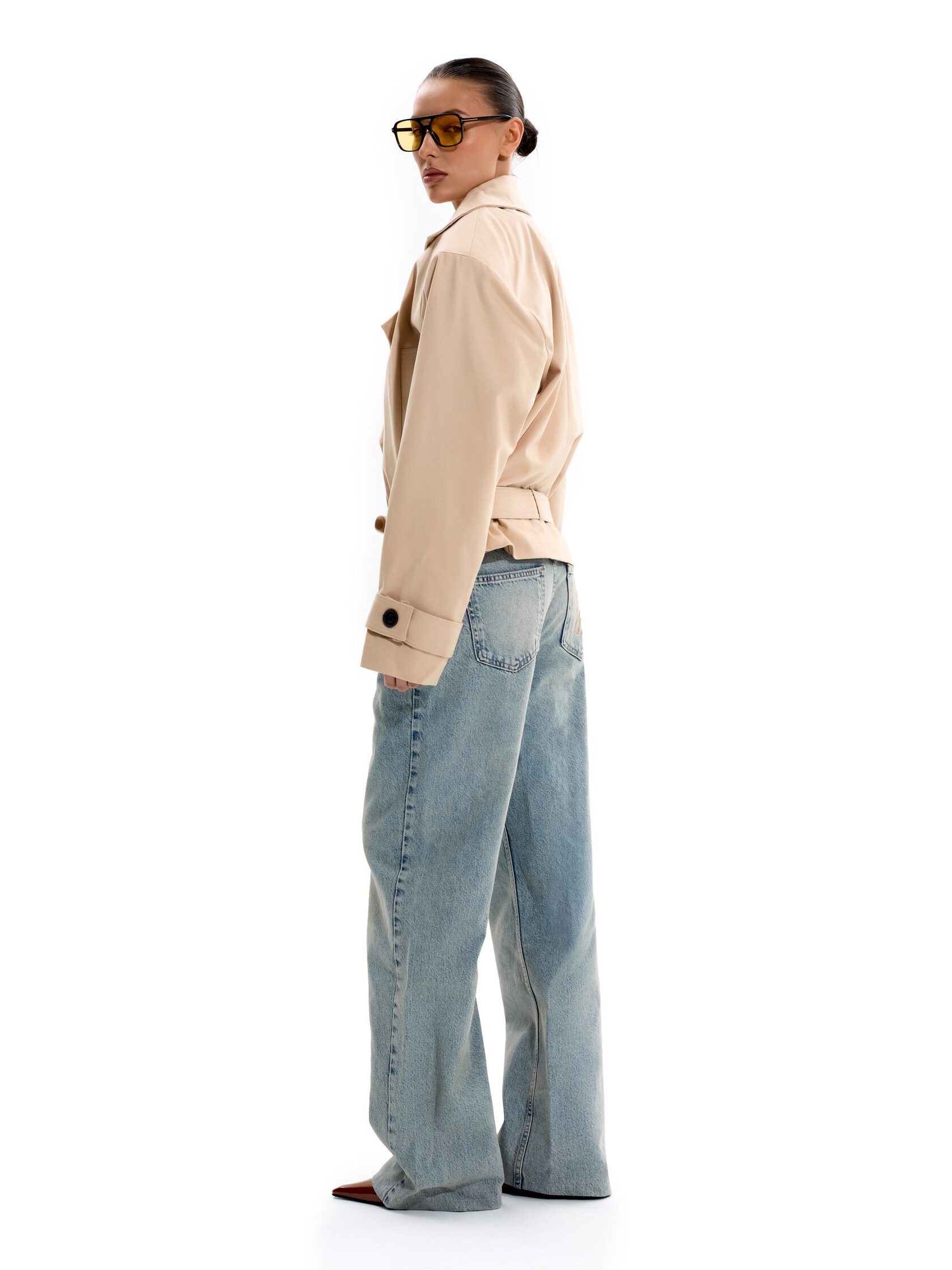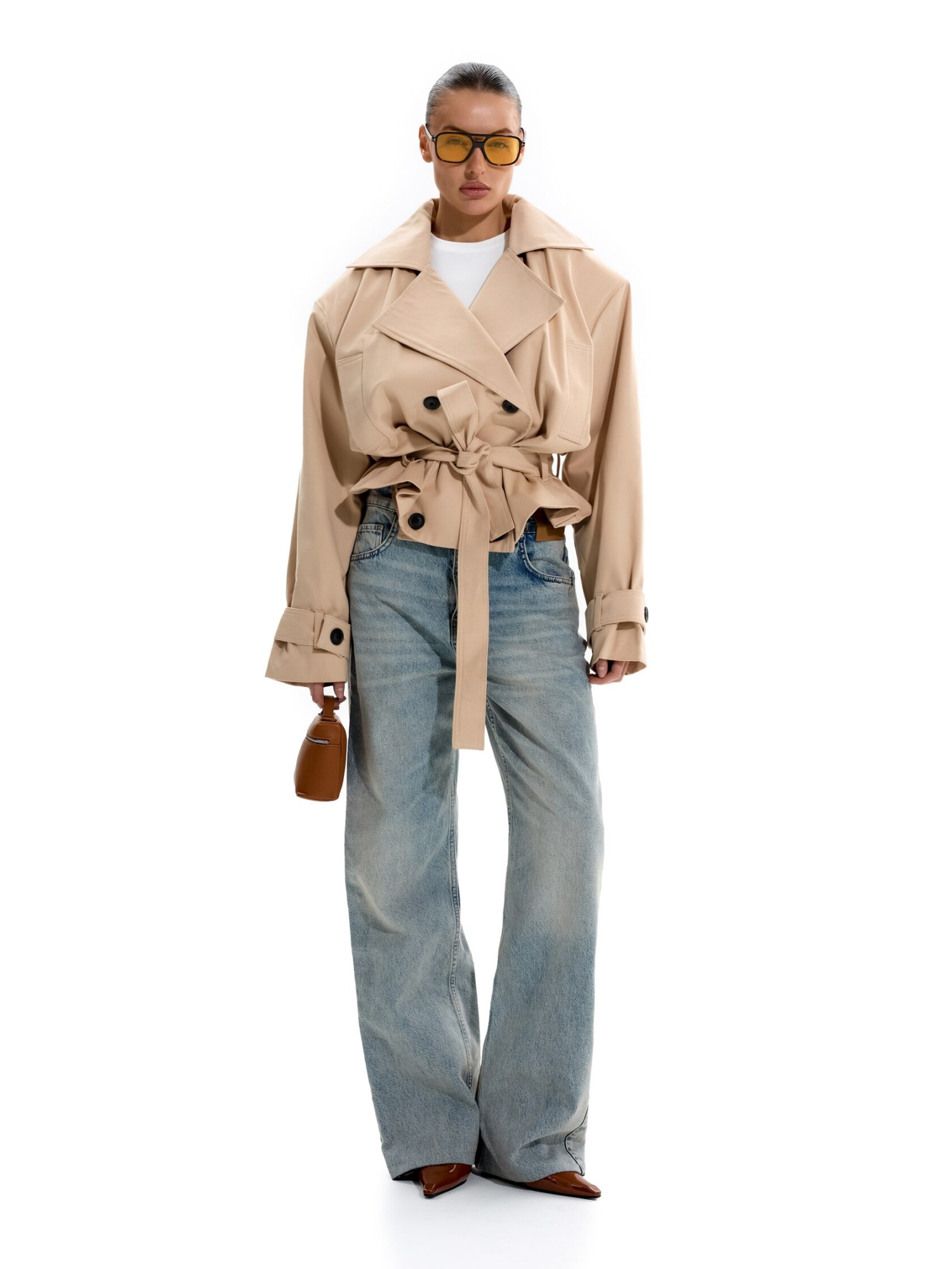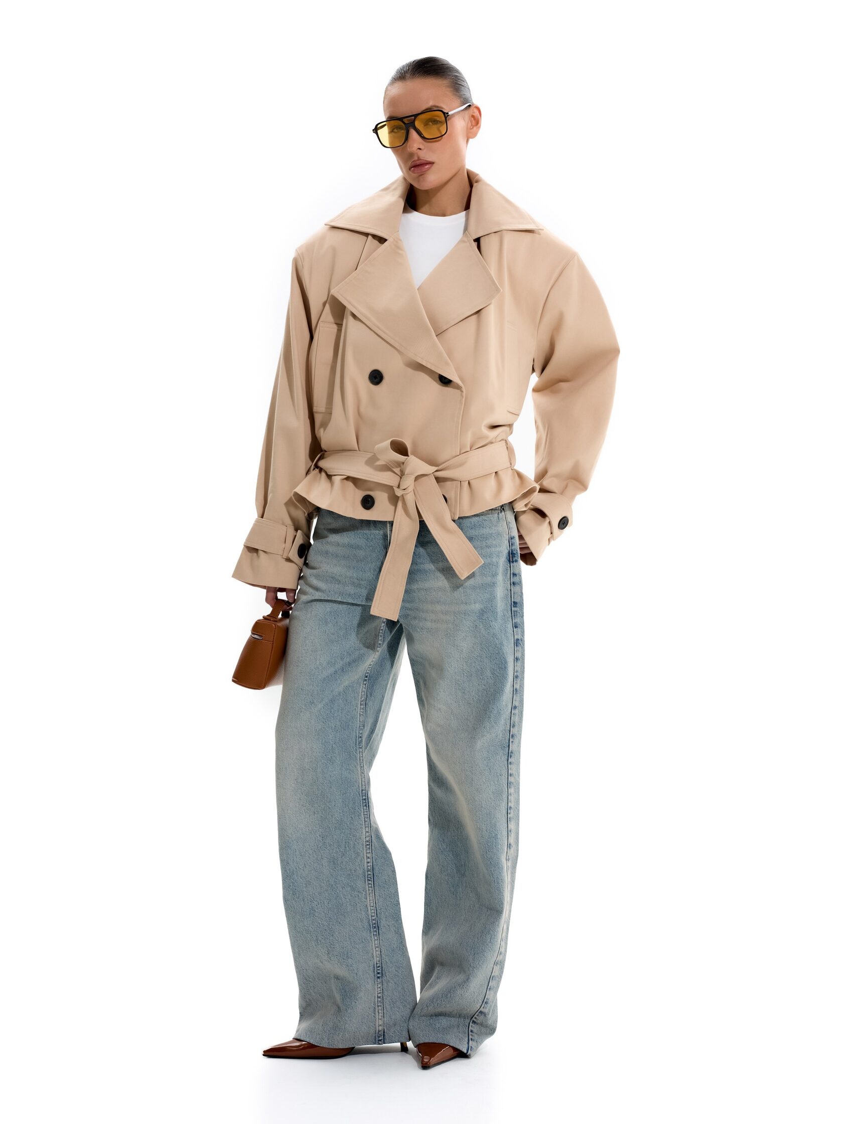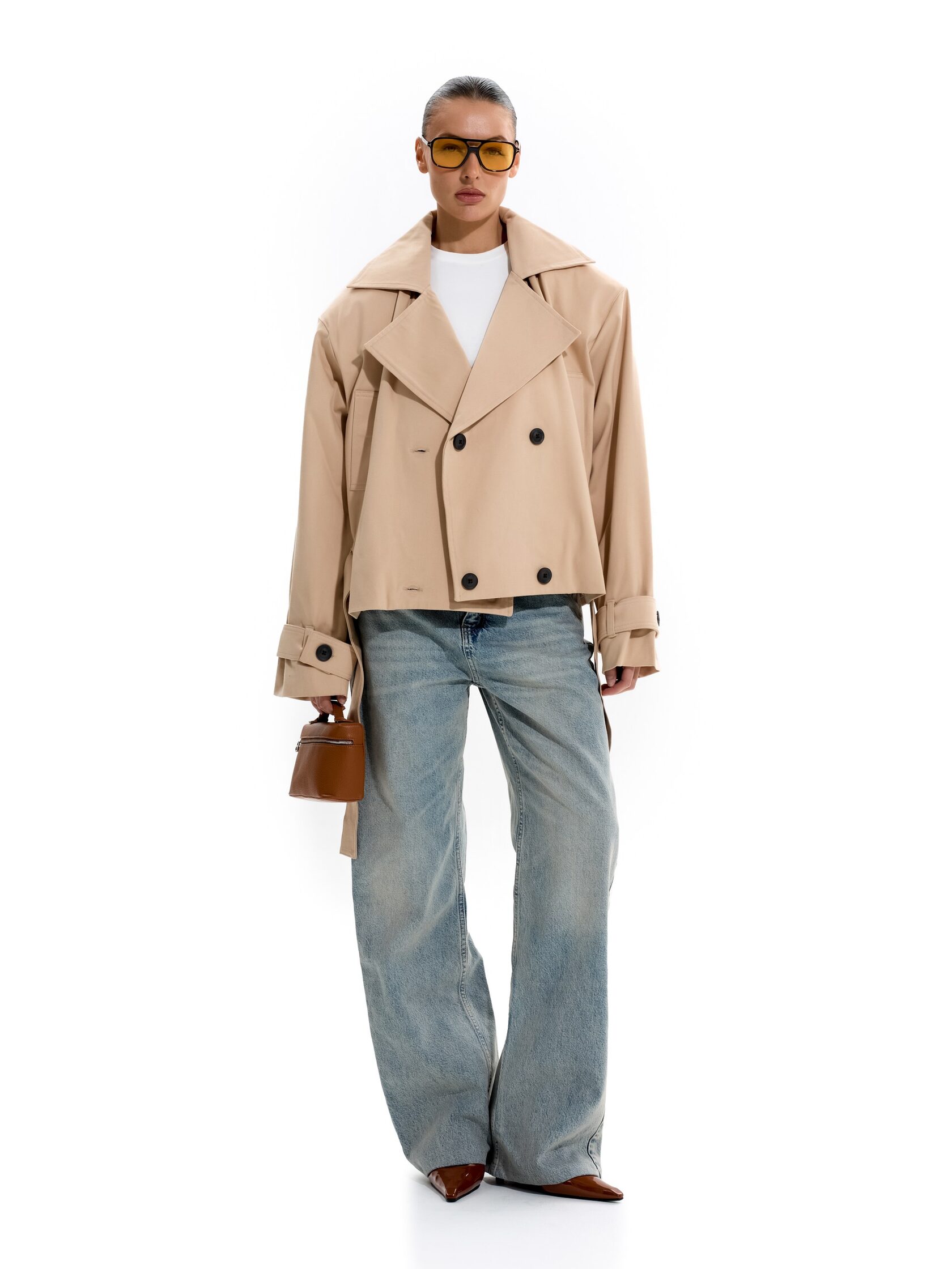 Укороченный тренч с объемными плечами