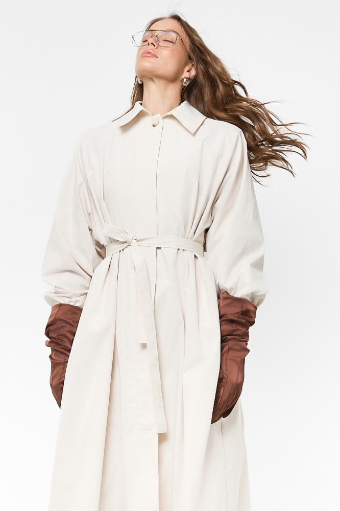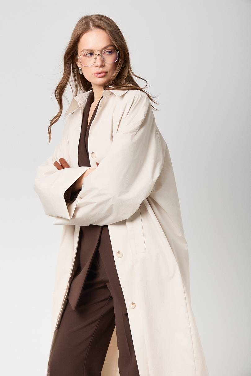 Облегченный тренч из технологичной ткани — стильная и практичная модель для межсезонья. Лаконичный силуэт, комфортная посадка и легкий материал делают тренч удобным для ежедневной носки, а современная ткань помогает изделию держать форму и выглядеть аккуратно в течение дня. Модель без пропитки, поэтому идеально подходит для сухой и умеренно прохладной погоды.
