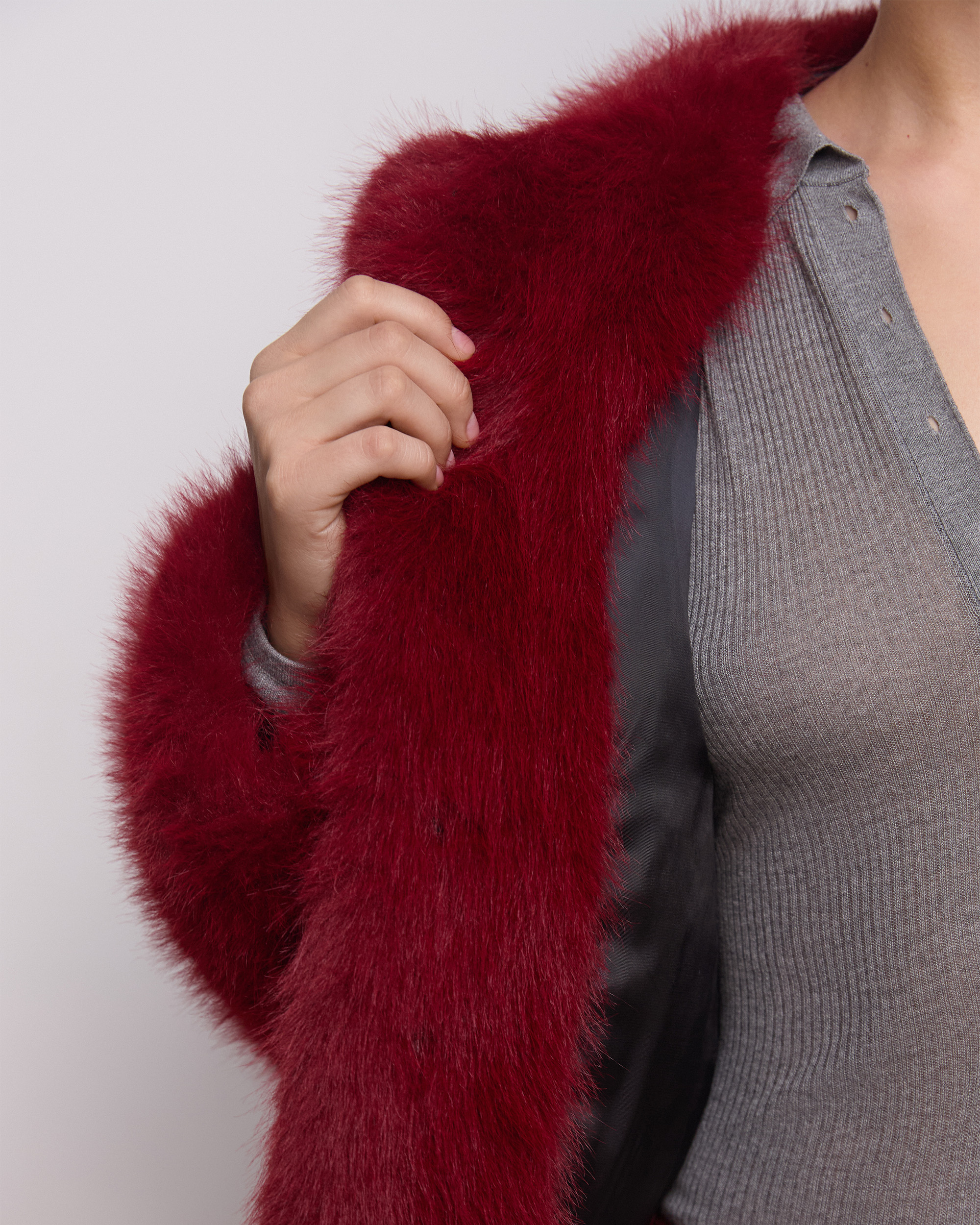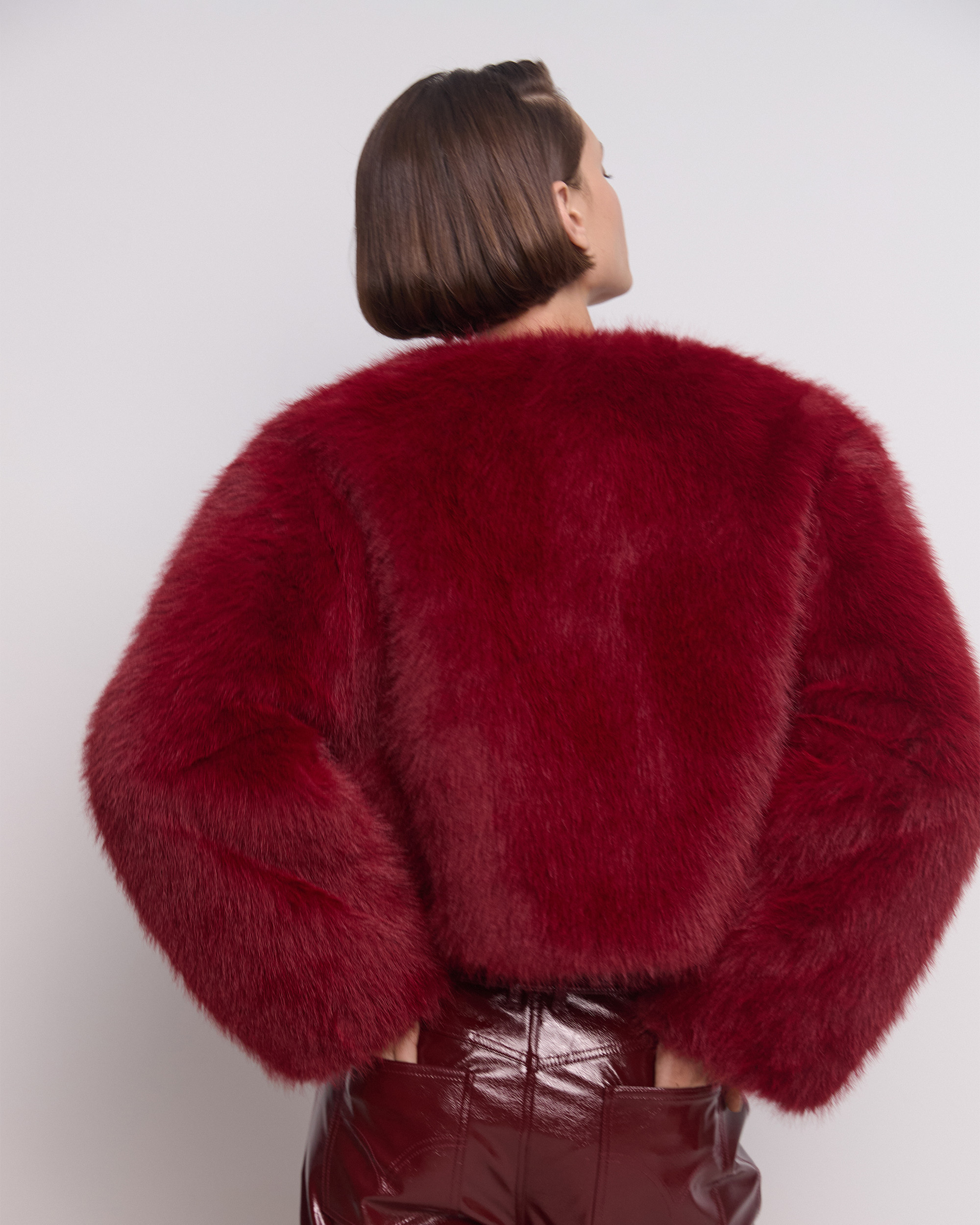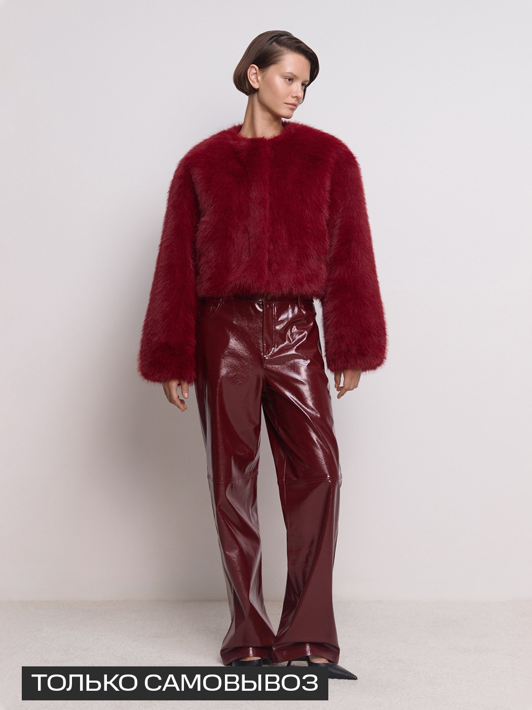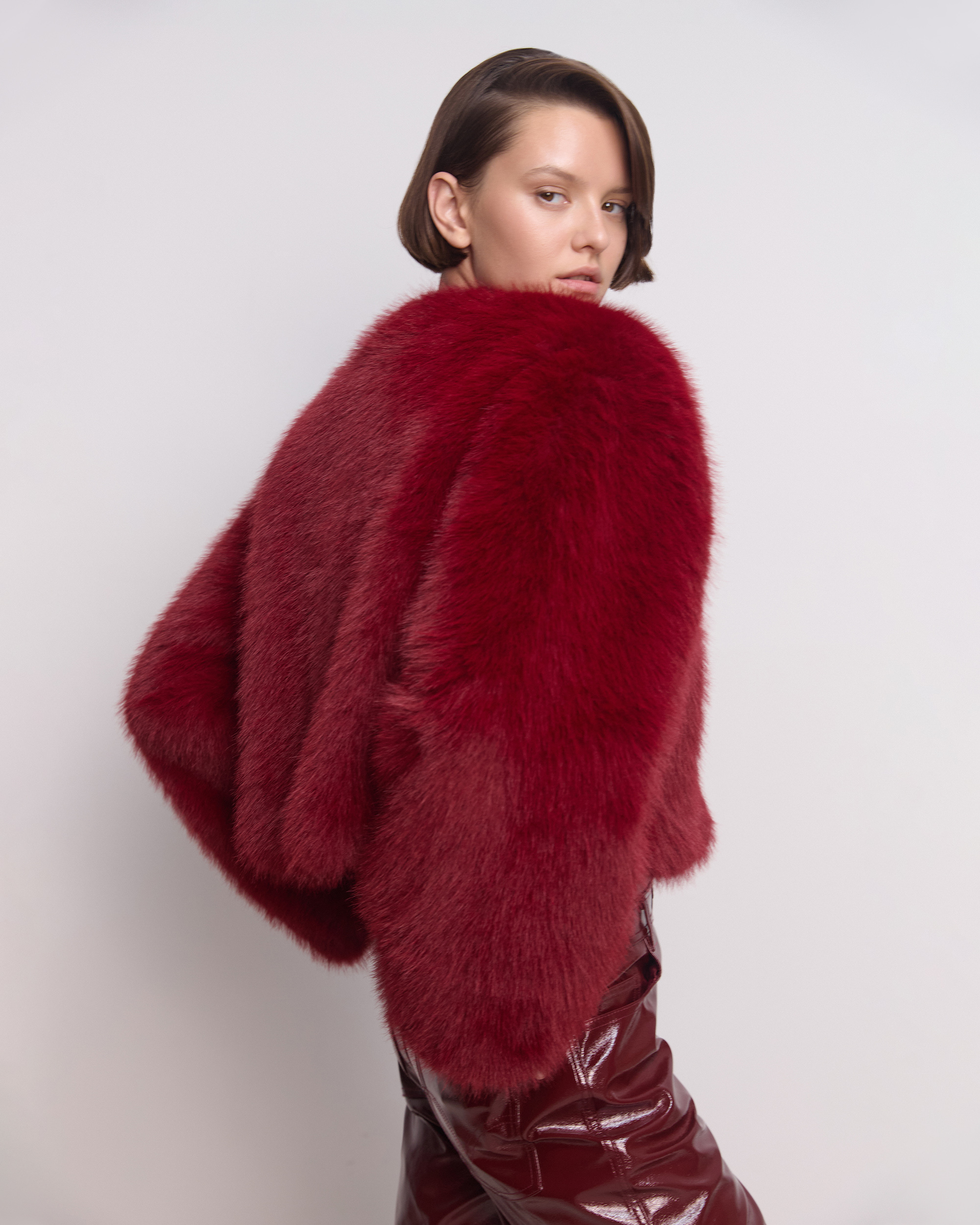 Эффектная укороченная шуба из пушистого экомеха под песца.