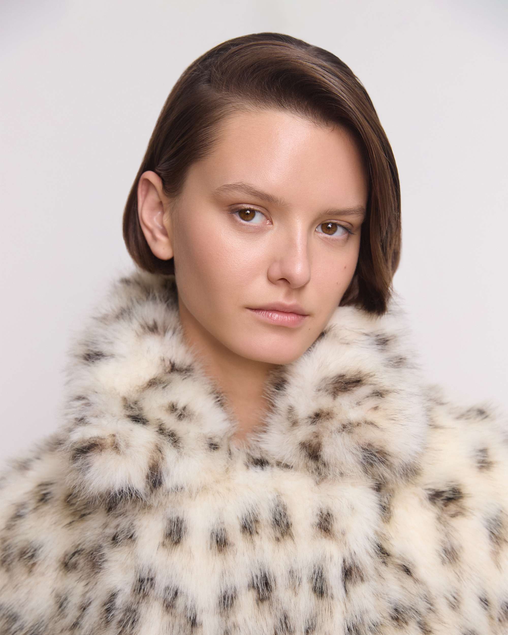Усовершенствованная версия знаковой для бренда модели – экошубы оверсайз силуэта со спущенным плечом и английским воротником.