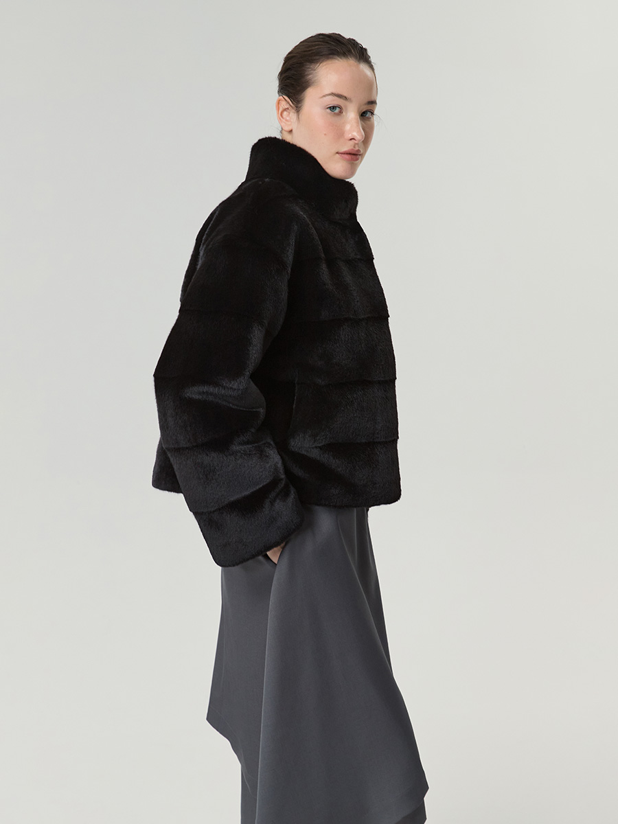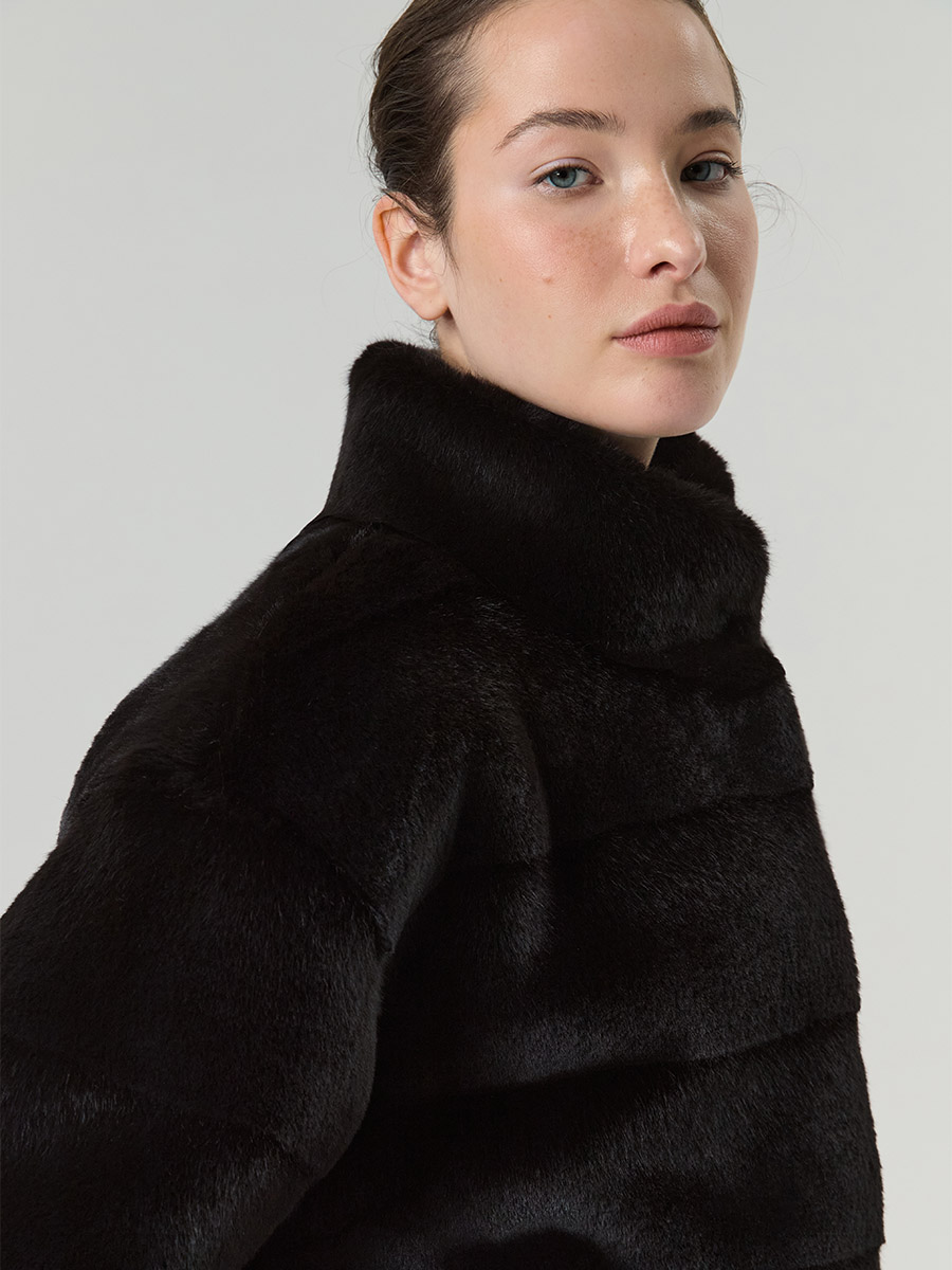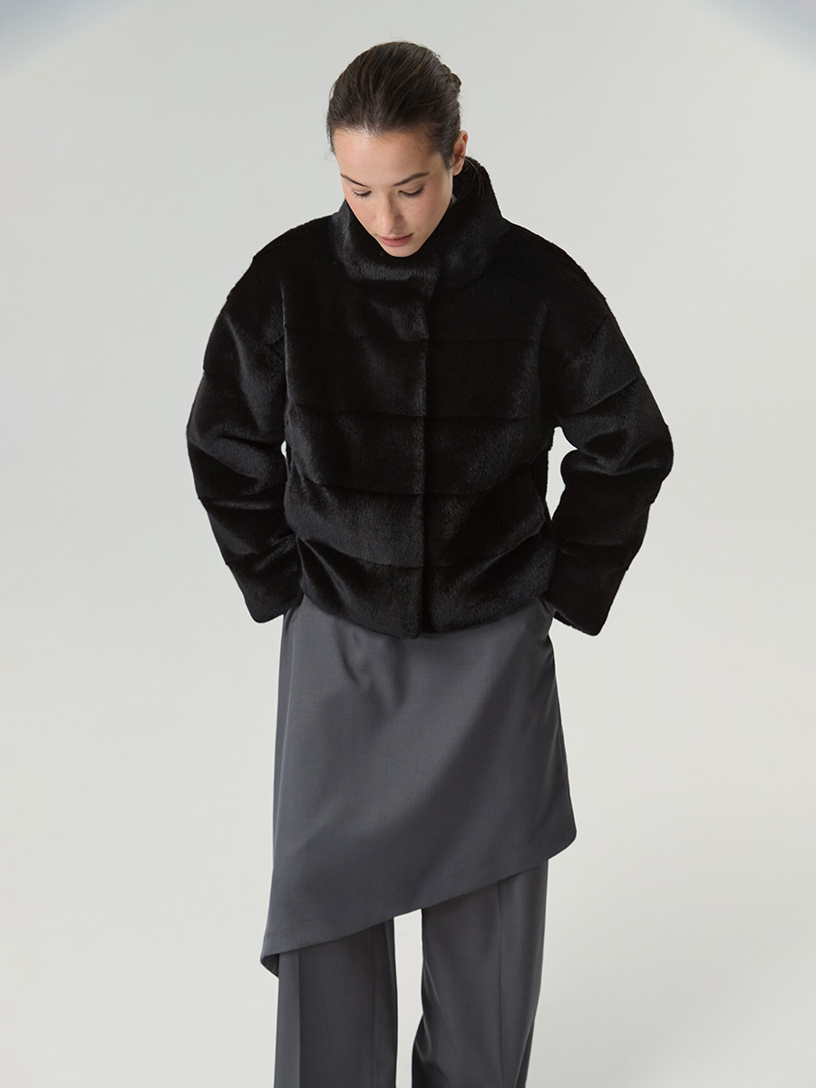 Экошуба с воротником стойка