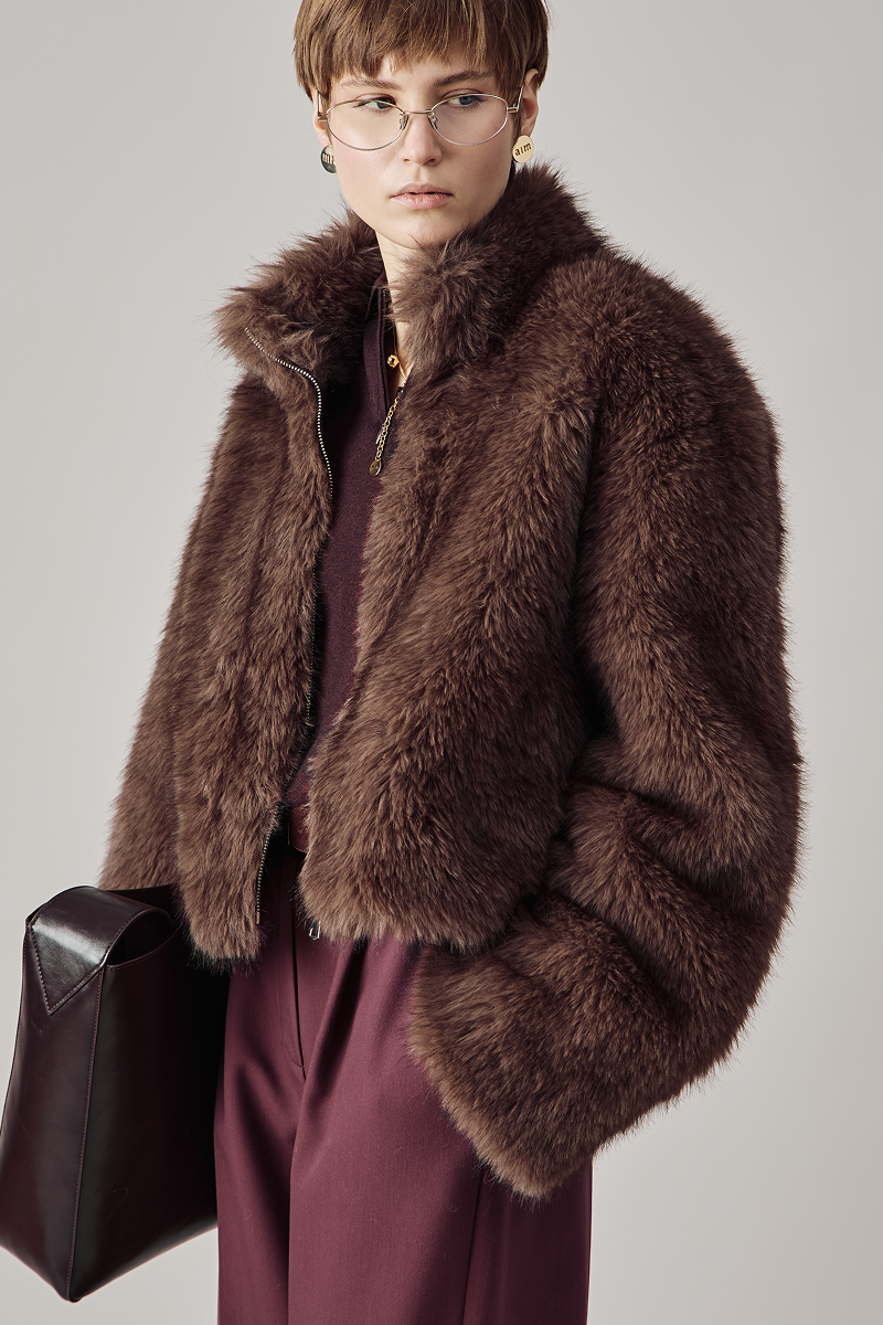 Коричневый бомбер из экомеха — это стильный и практичный элемент гардероба. Модель отлично подойдёт для создания повседневных образов, добавляя в них нотку уюта и тепла.