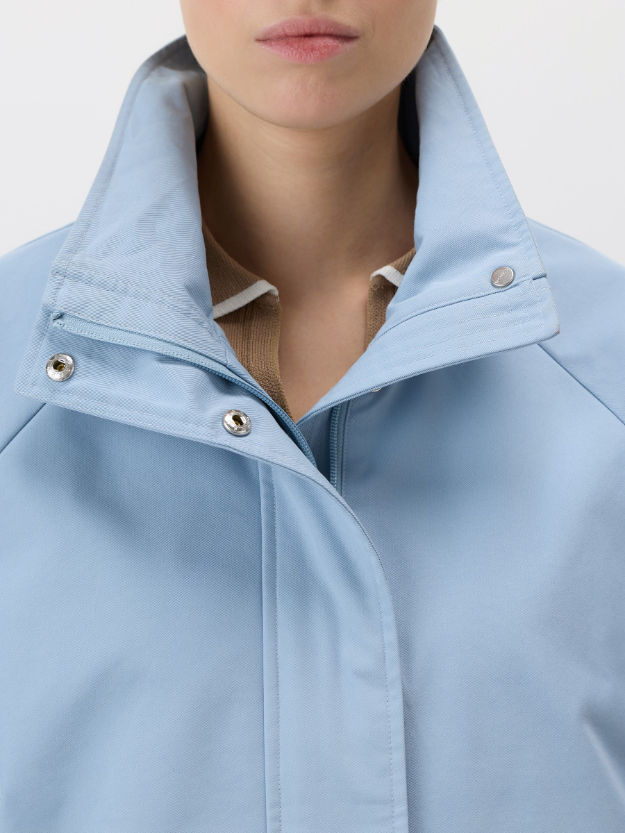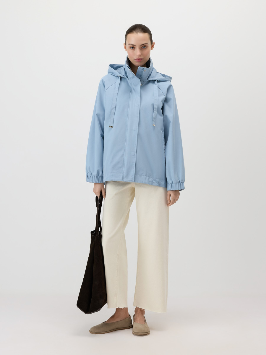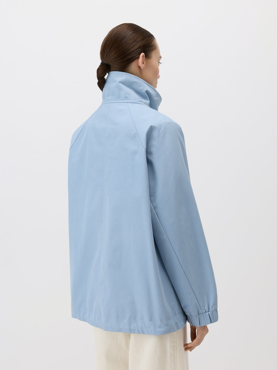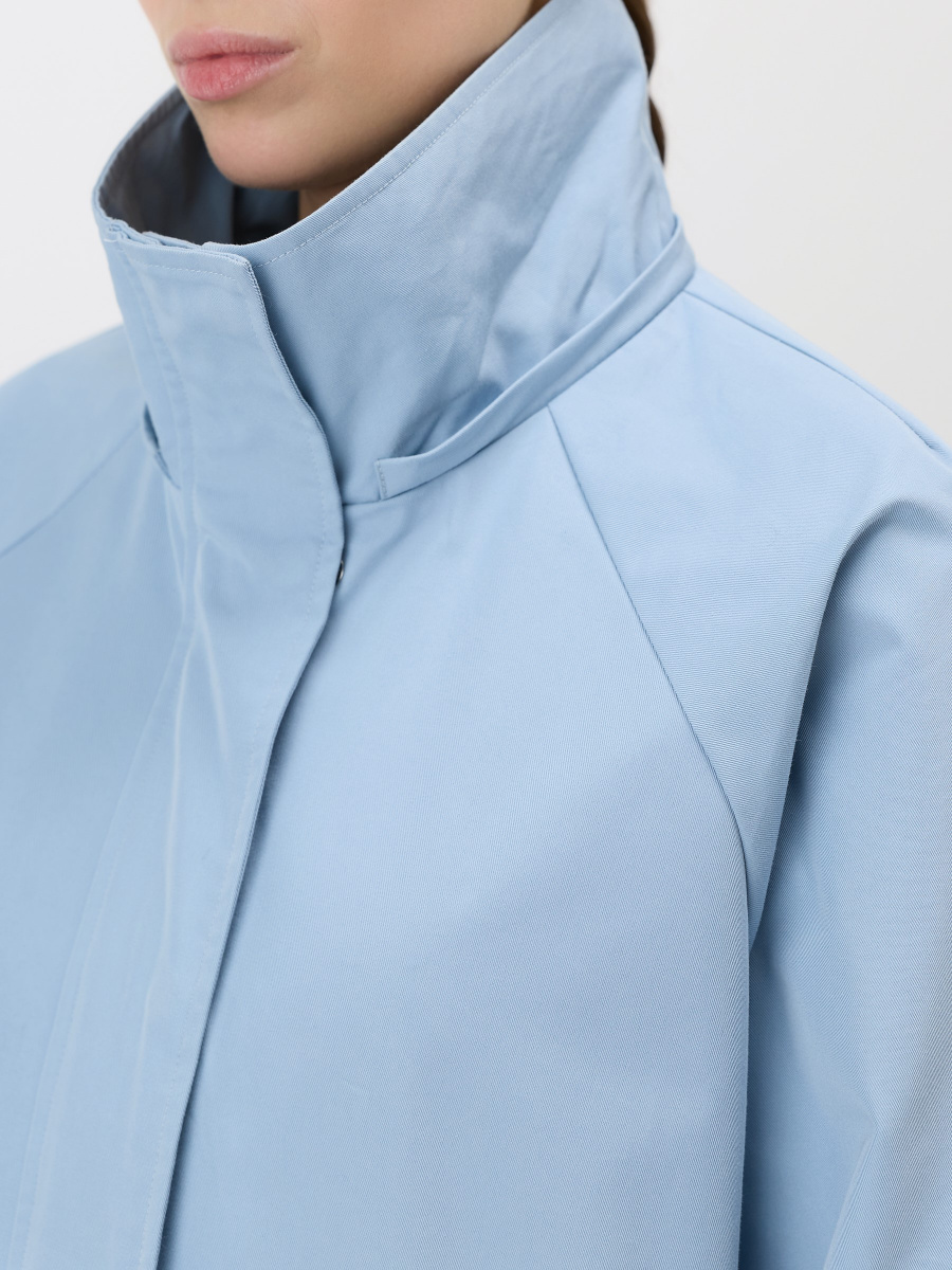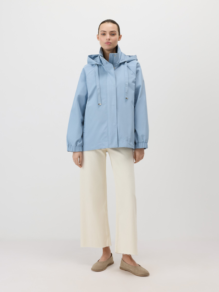 Утилитарная городская куртка со съемным капюшоном для переменчивого межсезонья. Плотная непродуваемая ткань на основе хлопка без утеплителя и шелковистая подкладка. Рукава реглан обеспечивают мягкую посадку по плечам, а скрытая кулиса по низу позволяет регулировать объем. Застежка на нейлоновую молнию и металлические кнопки с ветрозащитной планкой. Вместительные карманы для перчаток и нужных мелочей.