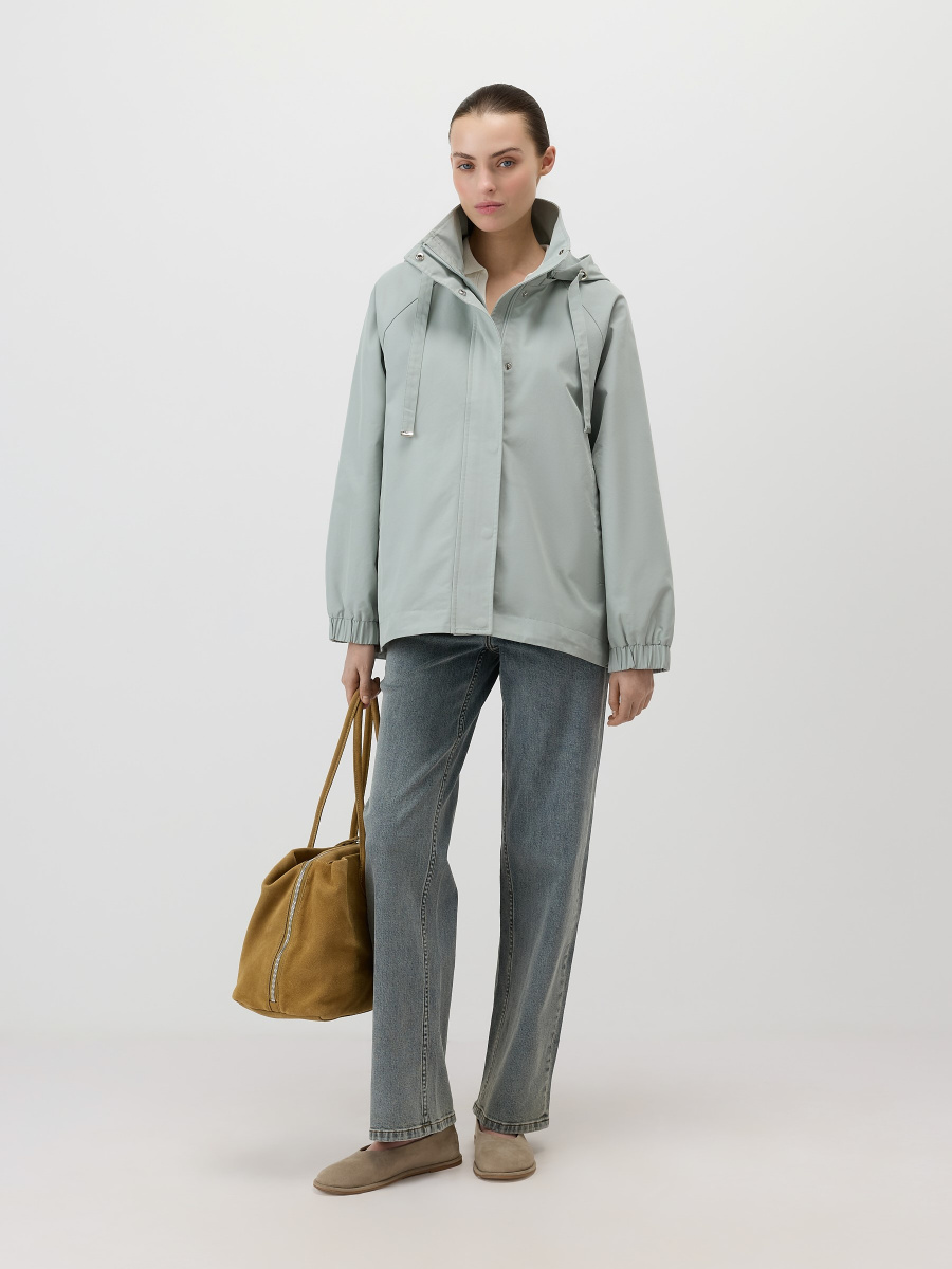Утилитарная городская куртка со съемным капюшоном для переменчивого межсезонья. Плотная непродуваемая ткань на основе хлопка без утеплителя и шелковистая подкладка. Рукава реглан обеспечивают мягкую посадку по плечам, а скрытая кулиса по низу позволяет регулировать объем. Застежка на нейлоновую молнию и металлические кнопки с ветрозащитной планкой. Вместительные карманы для перчаток и нужных мелочей.