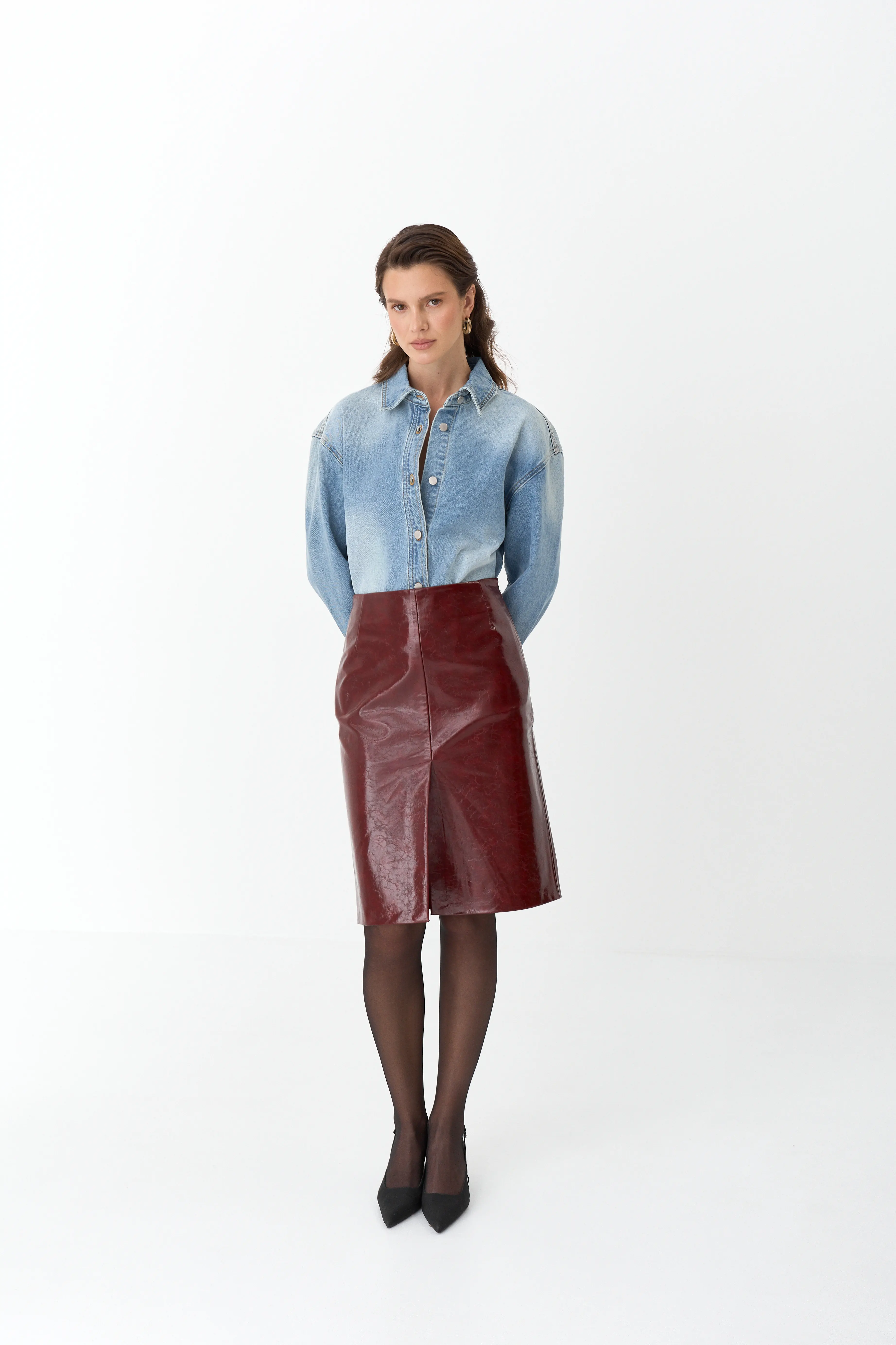 Юбка миди из лакированной экокожи — трендовый элемент гардероба, который подчеркнёт индивидуальность и создаст эффектный акцент в образе.