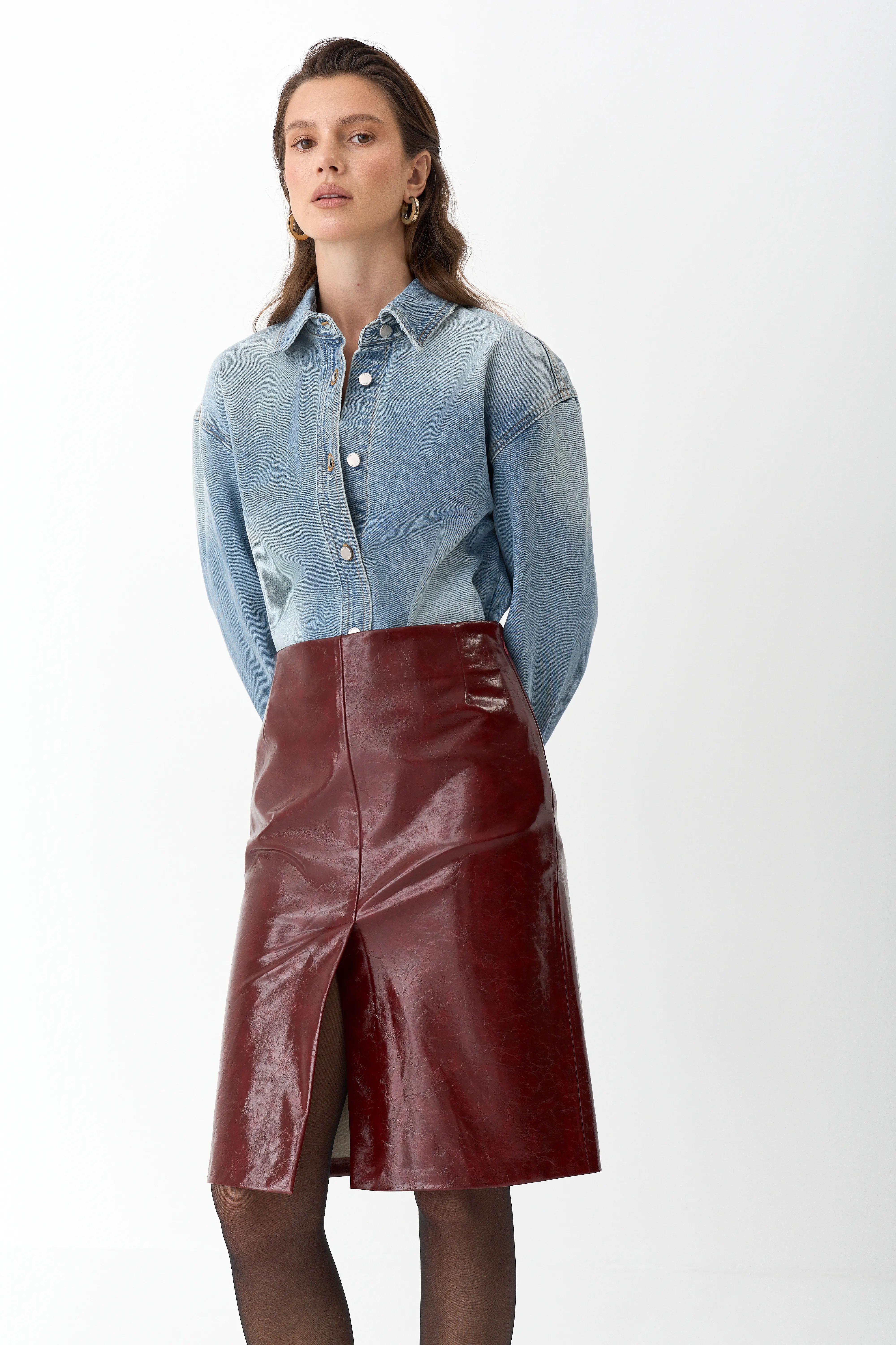 Юбка миди из лакированной экокожи