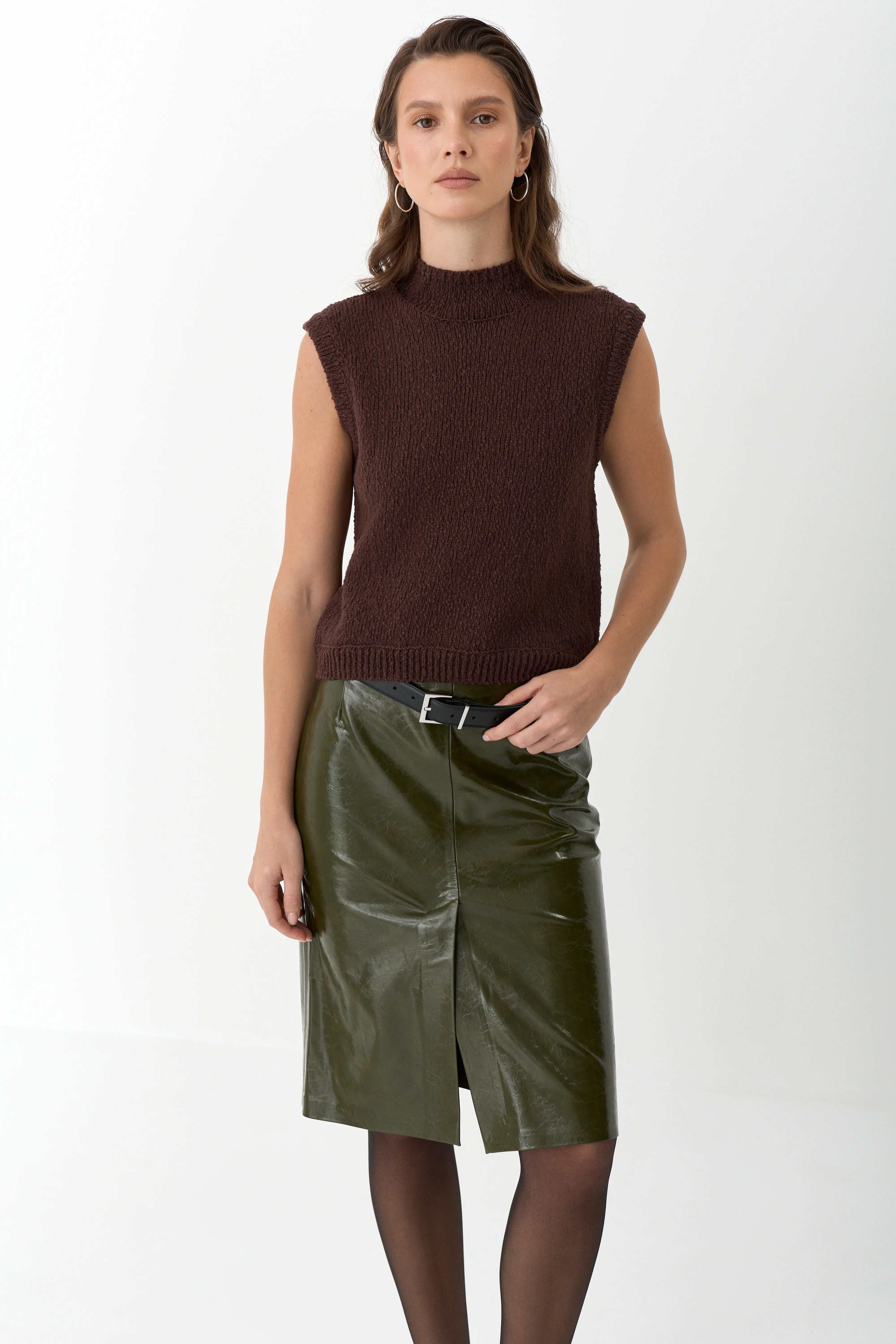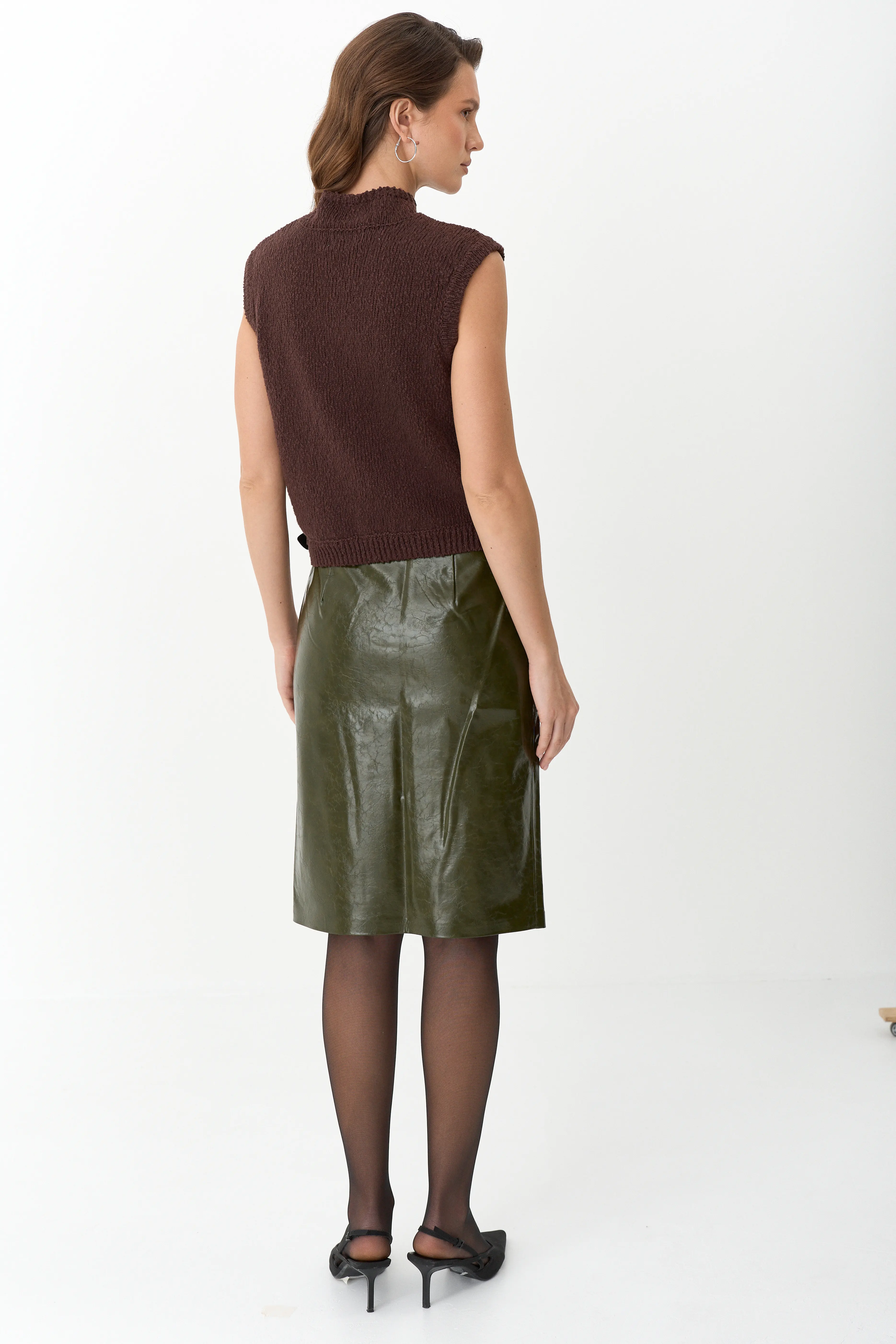Юбка миди из лакированной экокожи — трендовый элемент гардероба, который подчеркнёт индивидуальность и создаст эффектный акцент в образе.