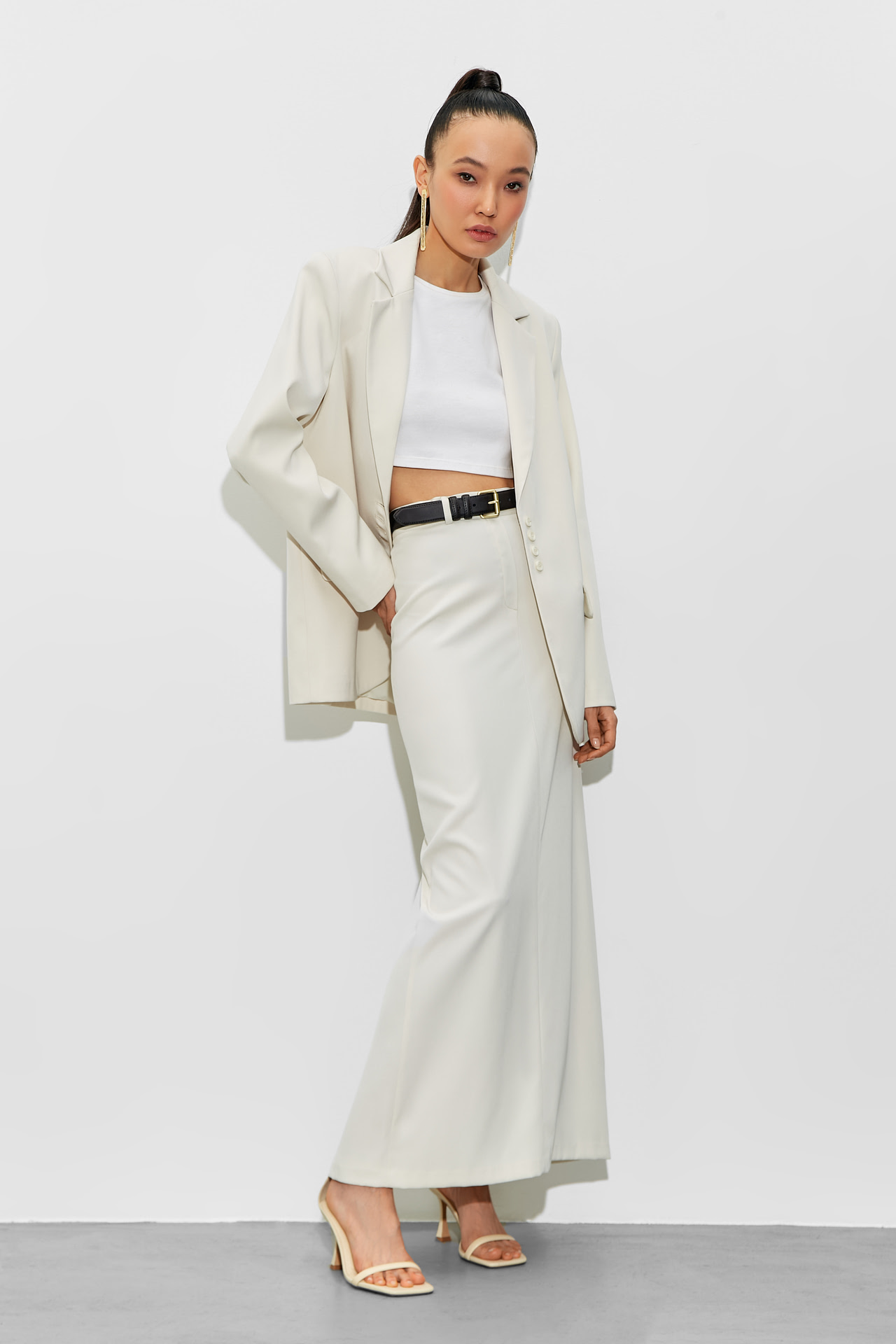 Юбка макси молочного цвета. Длинная юбка уместна в любой ситуации: и в офисе, и на торжественном мероприятии.