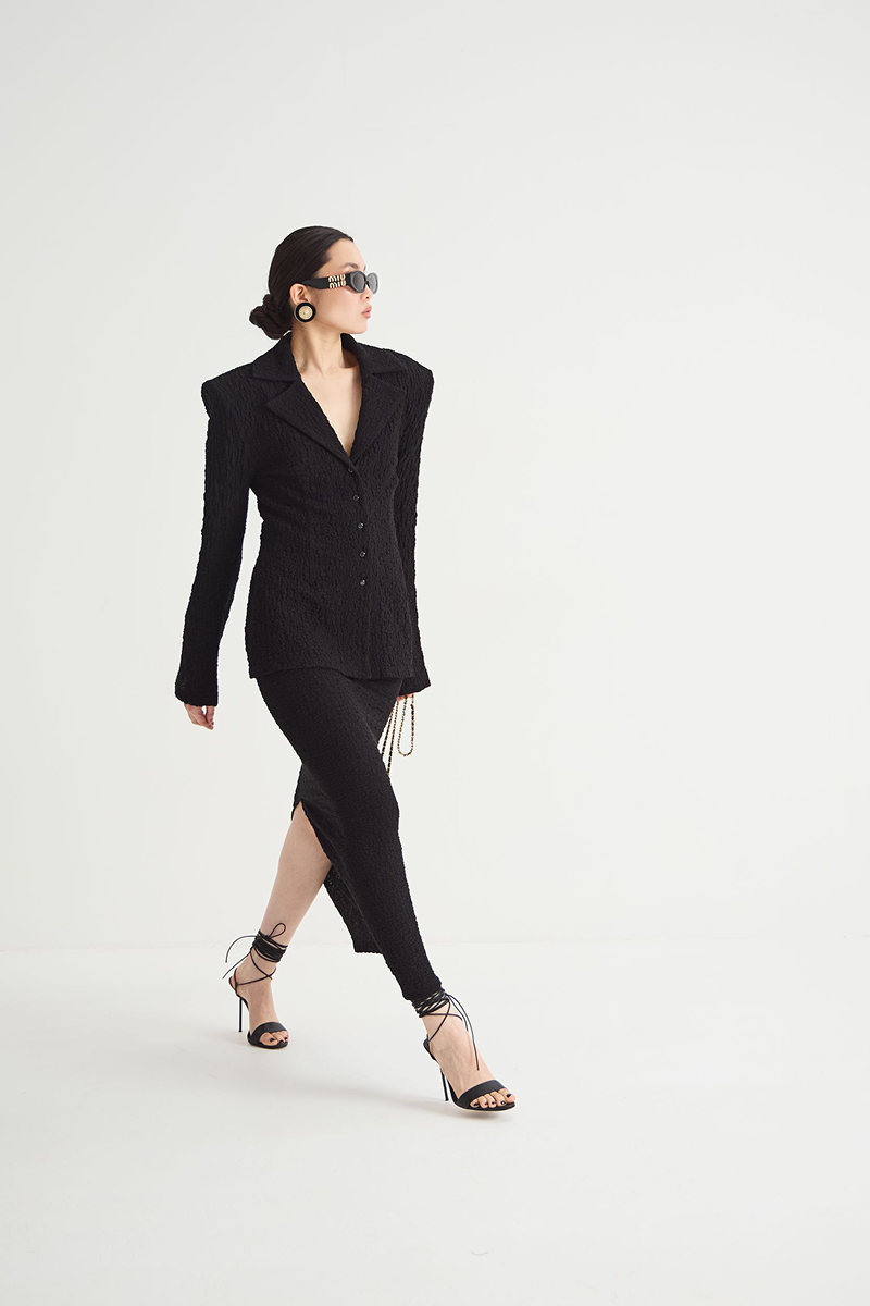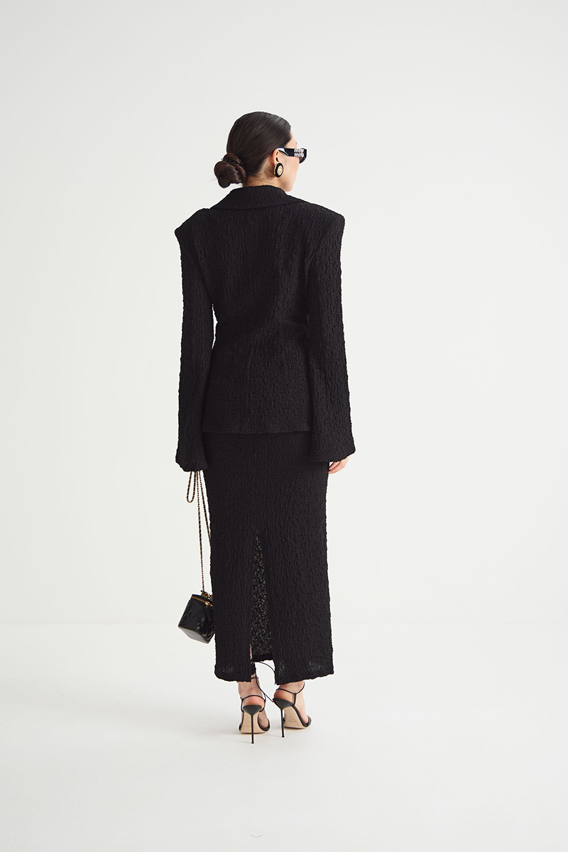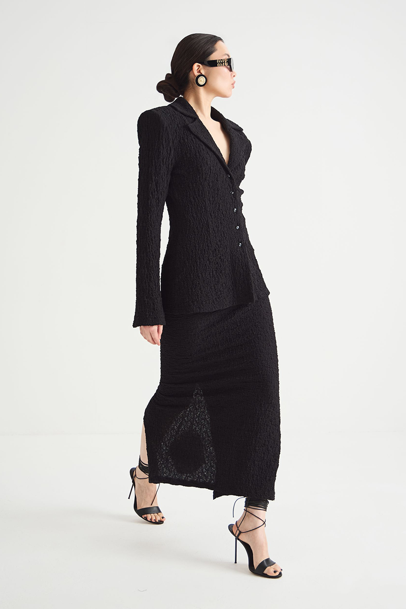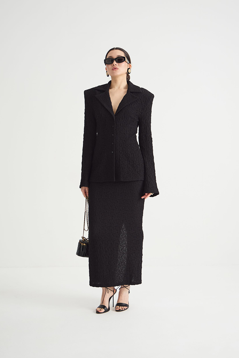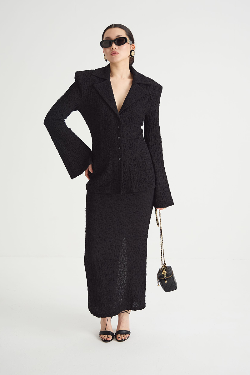 Чёрный цвет юбки делает её универсальной — она подойдёт как для повседневных образов, так и для более торжественных мероприятий. Юбка-макси отлично сочетается с различными топами и блузами, позволяя создавать разнообразные стильные ансамбли.