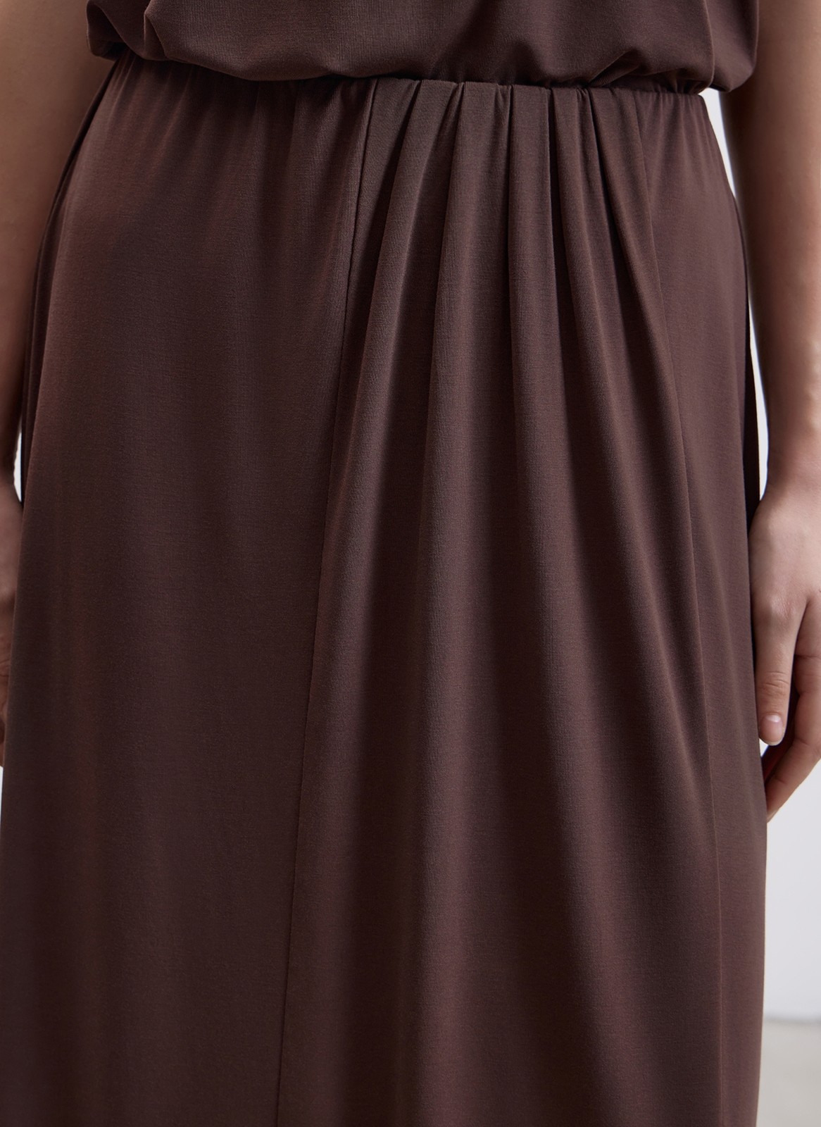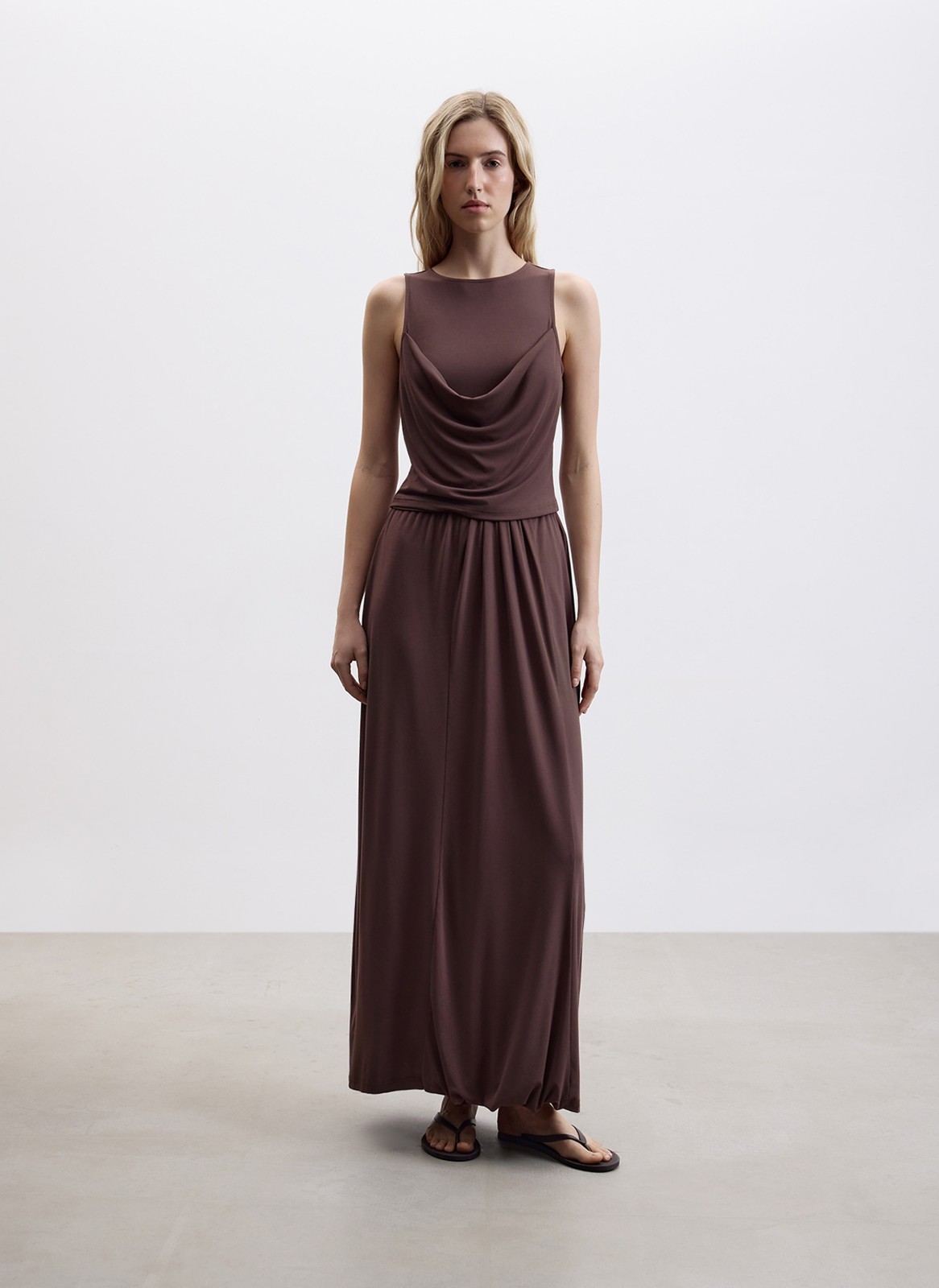 Флюидный трикотаж из модала мягко обтекает фигуру и дарит приятные тактильные ощущения.