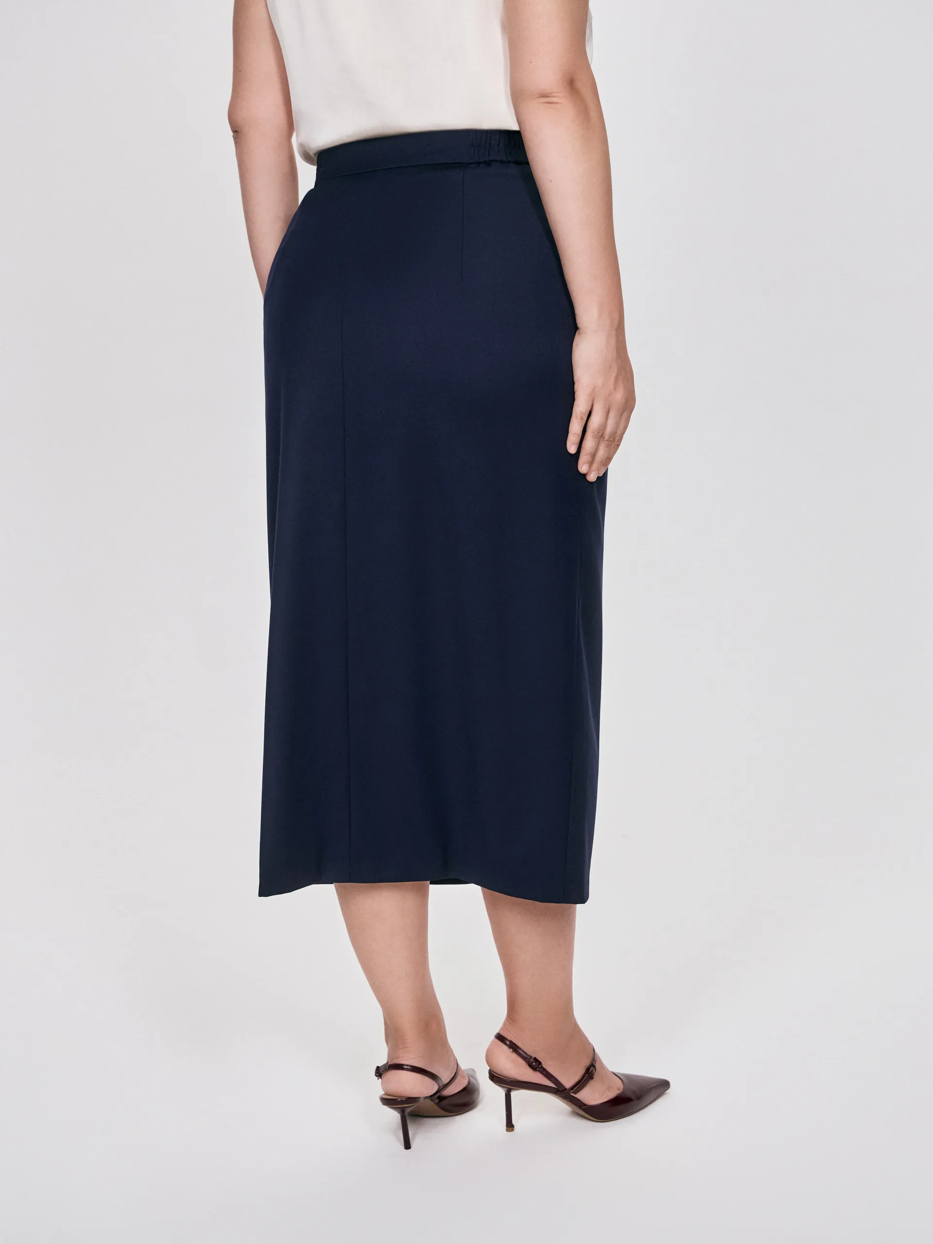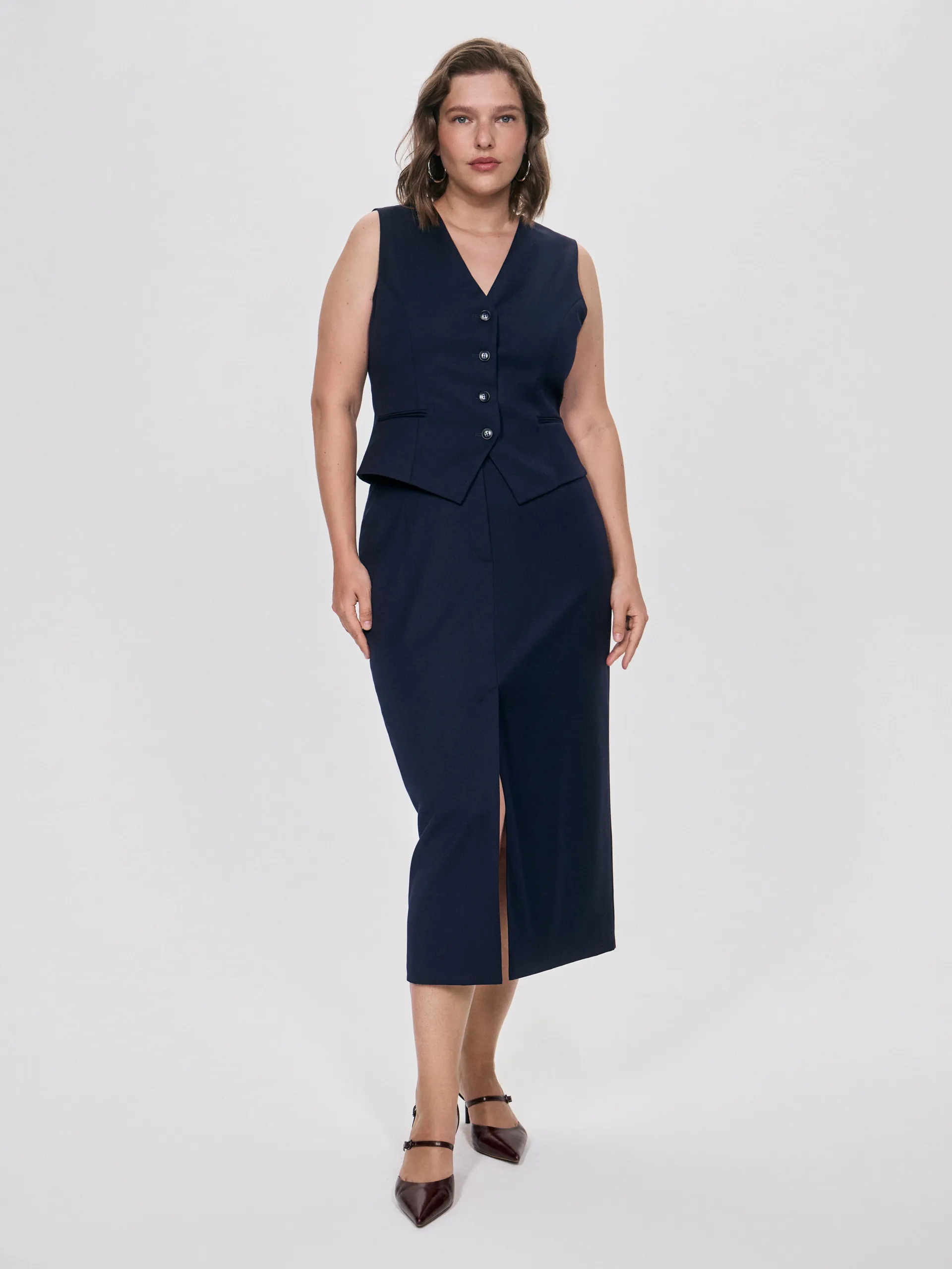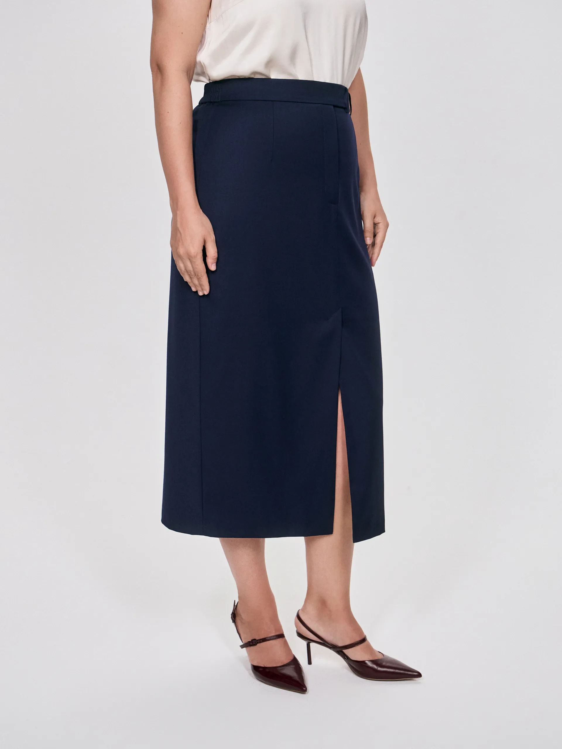 Юбка Nesto из премиальной костюмной ткани — лаконичная модель в длине миди, выполненная в темно-синем оттенке. Прямой крой и высокая посадка подчёркивают силуэт и визуально вытягивают фигуру, а аккуратная шлица спереди добавляет свободы движения. Мы используем собственные натуральные красители и окрашиваем ткань по Pantone, благодаря чему цвет получается живым, глубоким и уникальным. Подкладка с высоким содержанием вискозы приятна к телу и позволяет коже дышать. Носите юбку с жилетом Niel или жакетом Jed — в комплекте они формируют сдержанный, но выразительный образ.