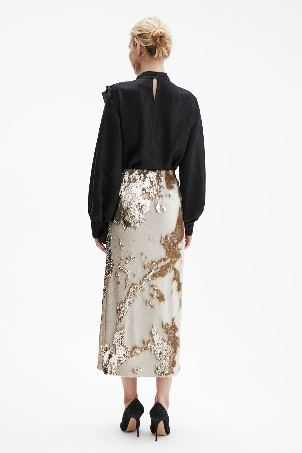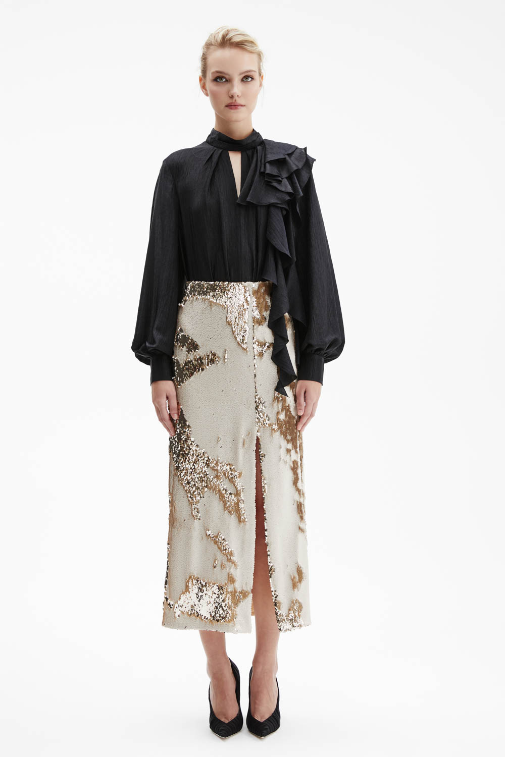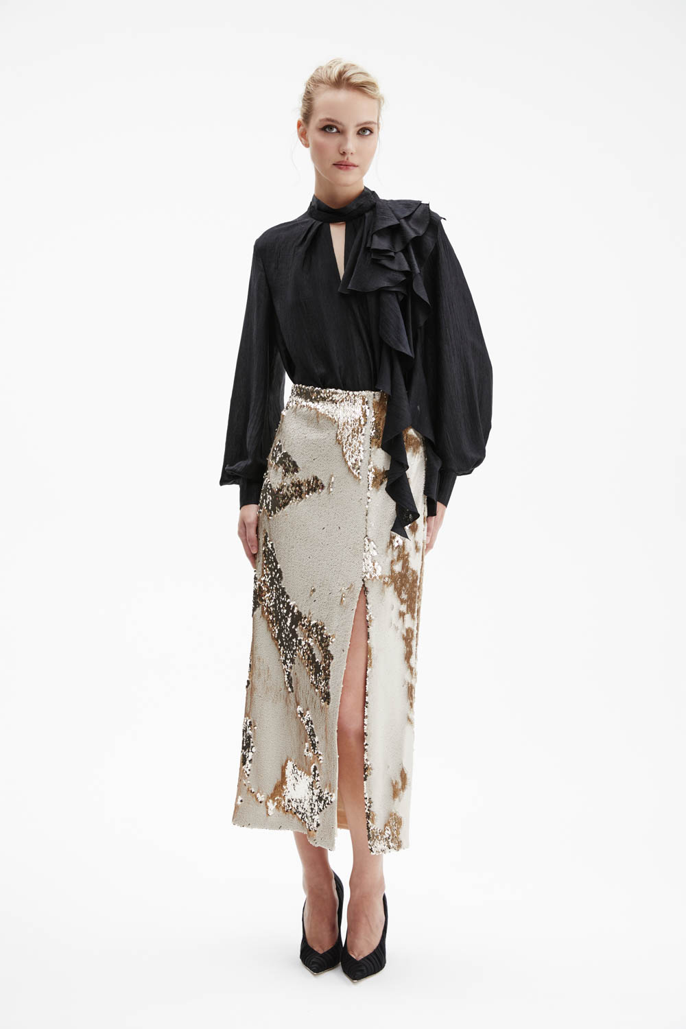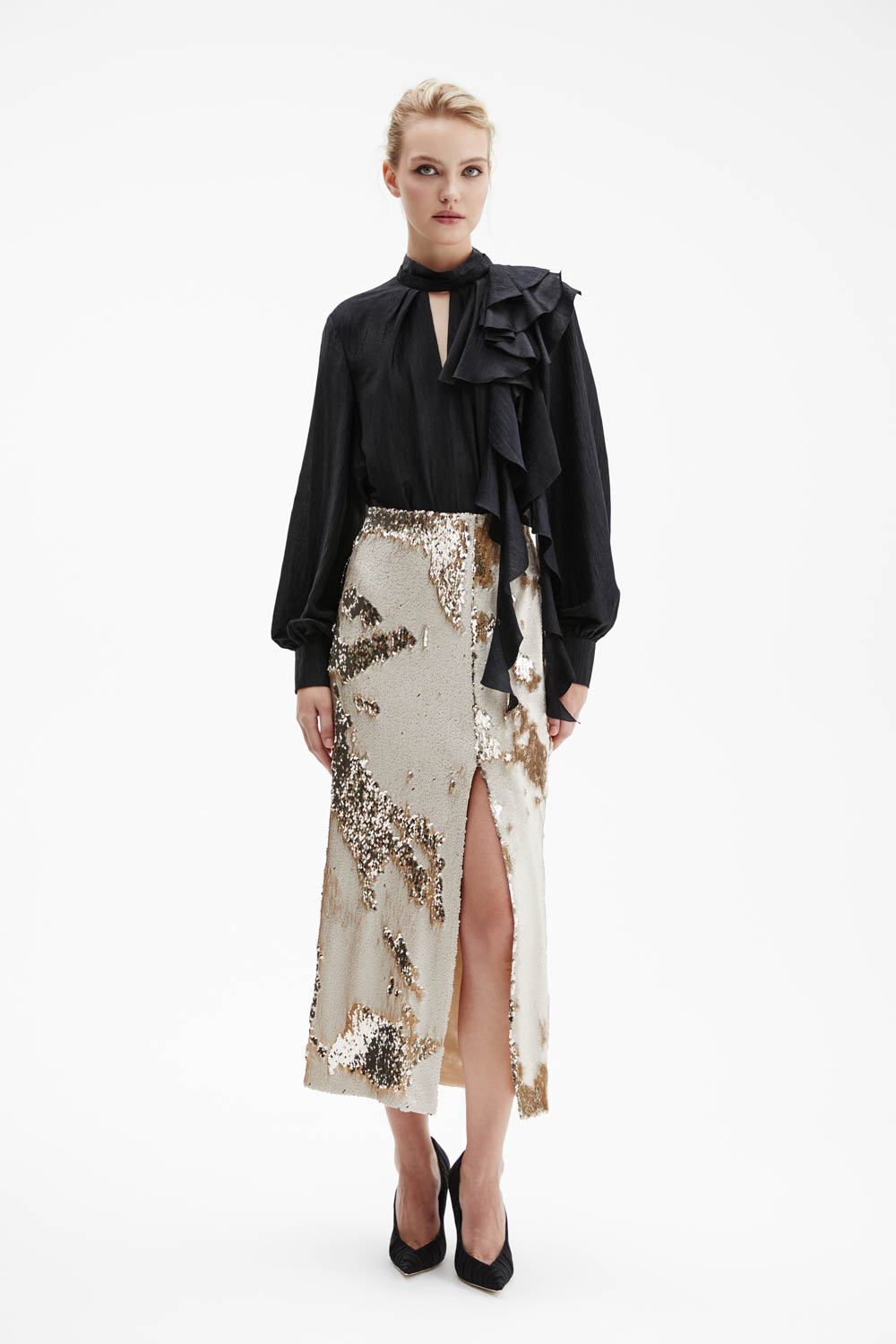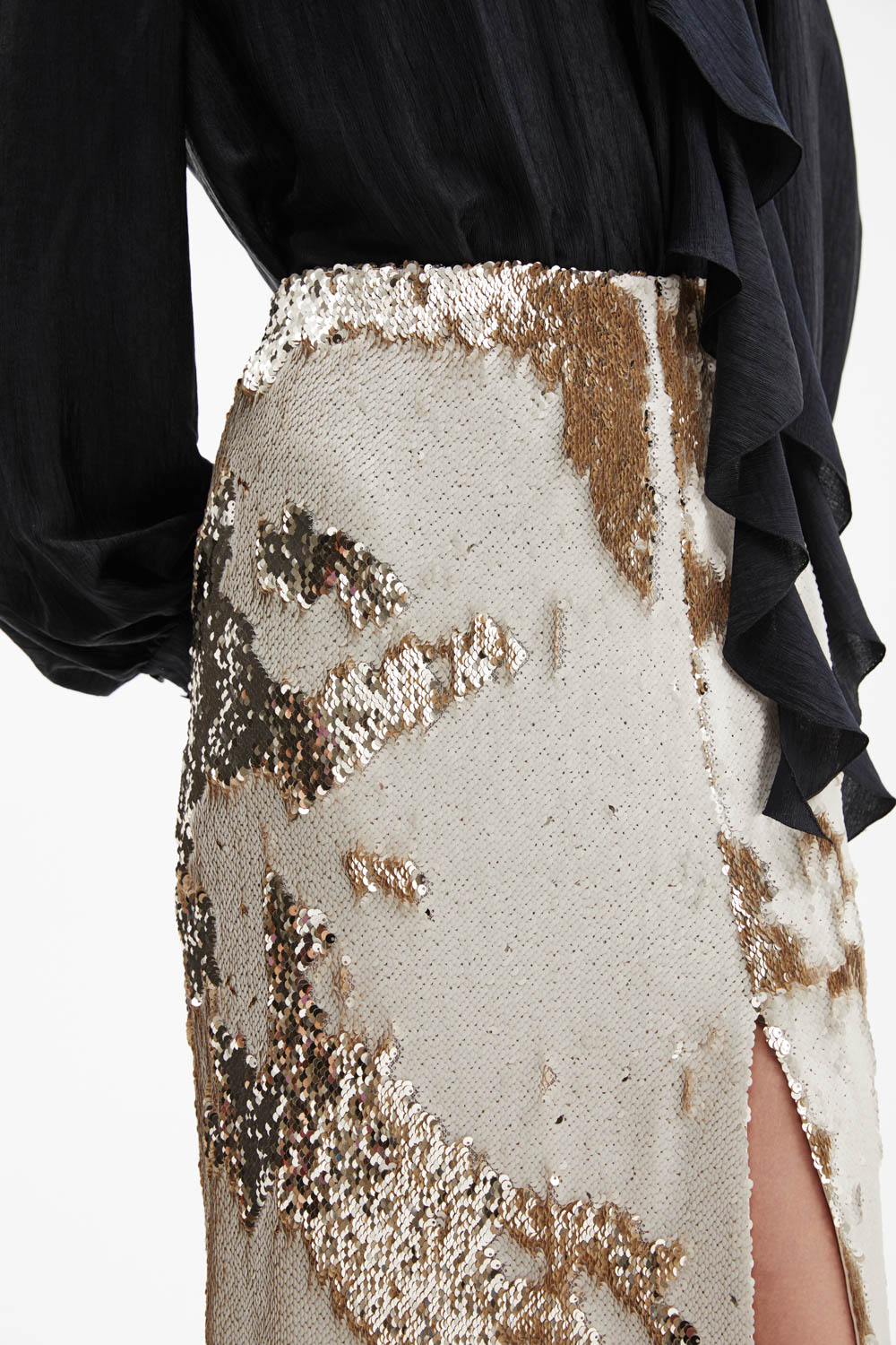 Юбка с реверсивными пайетками и высоким разрезом