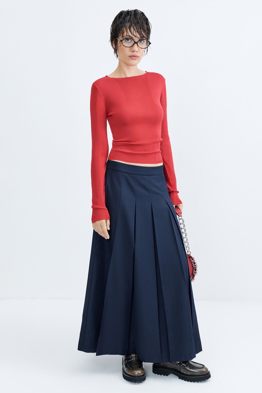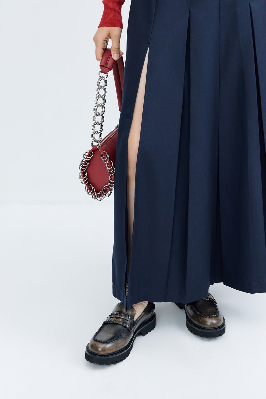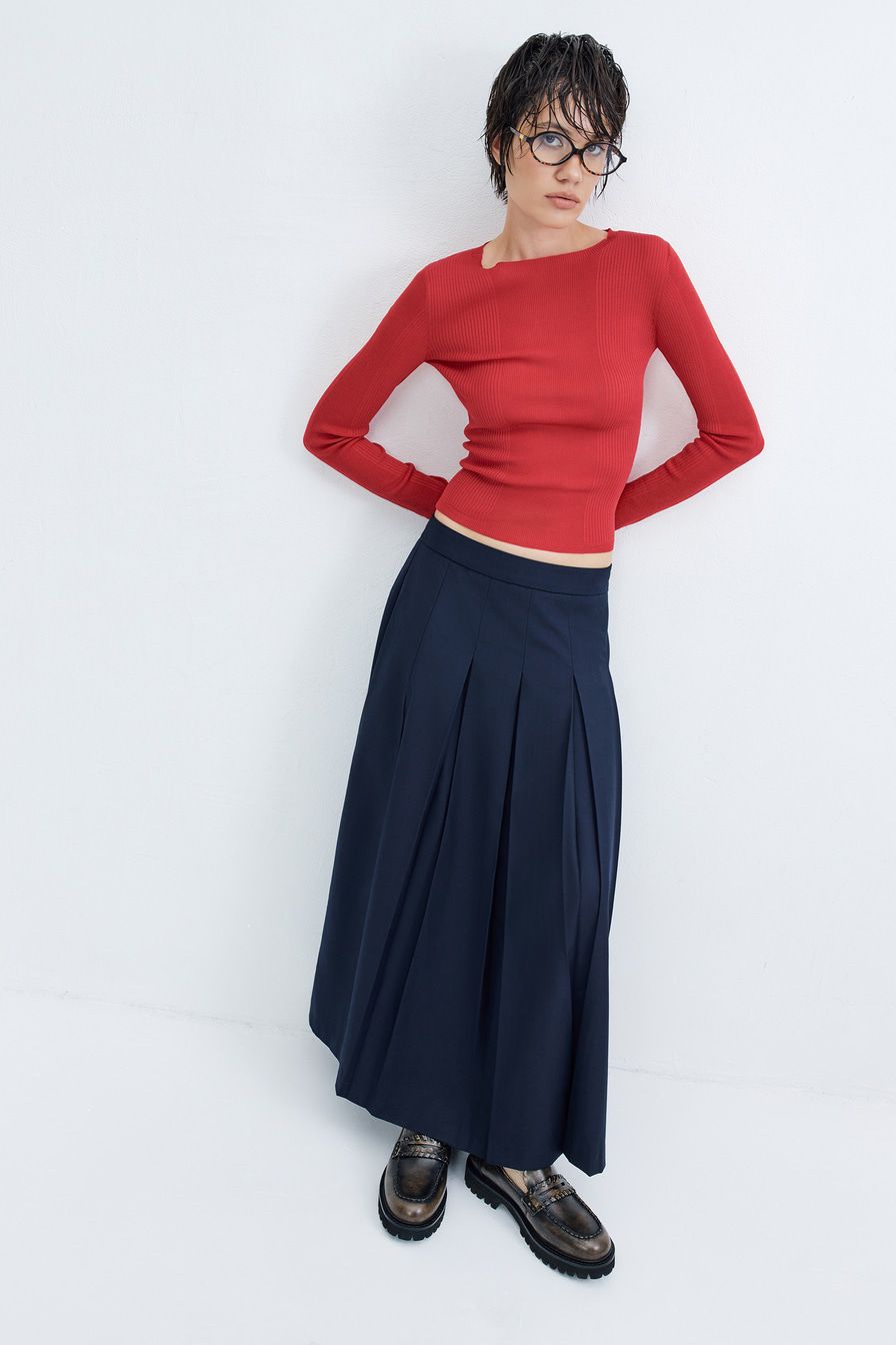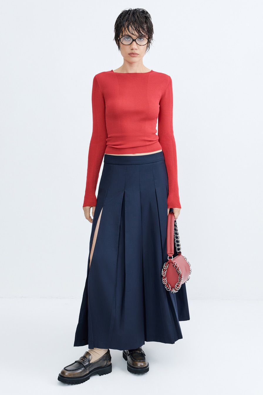 «Для повседневного лука сочетайте юбку с базовой майкой или трикотажным кроп-топом, балетками и сумкой-багетом».