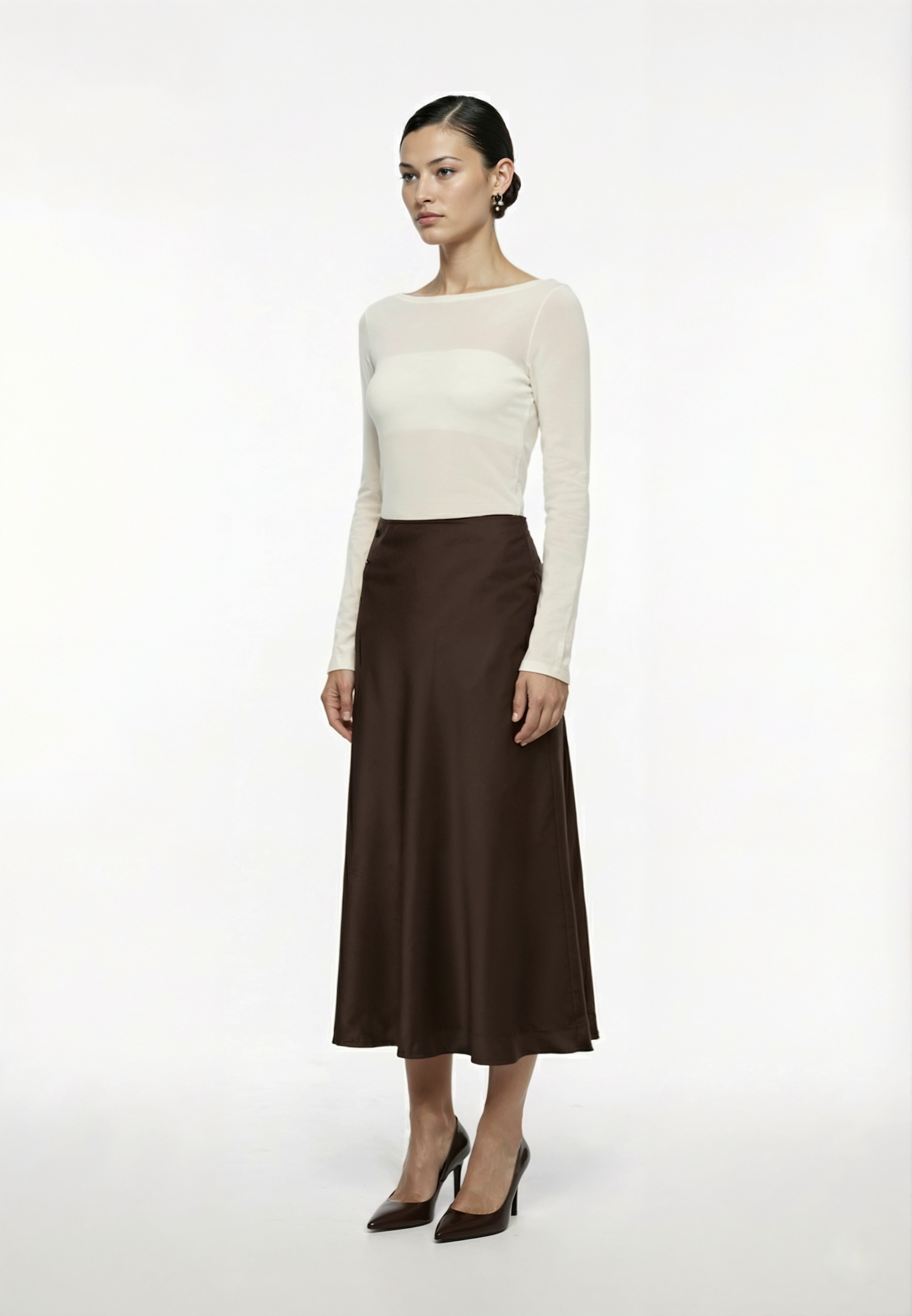 Длинная струящаяся юбка в бельевом стиле — безоговорочный must have. Модель имеет модную посадку на бёдрах.
