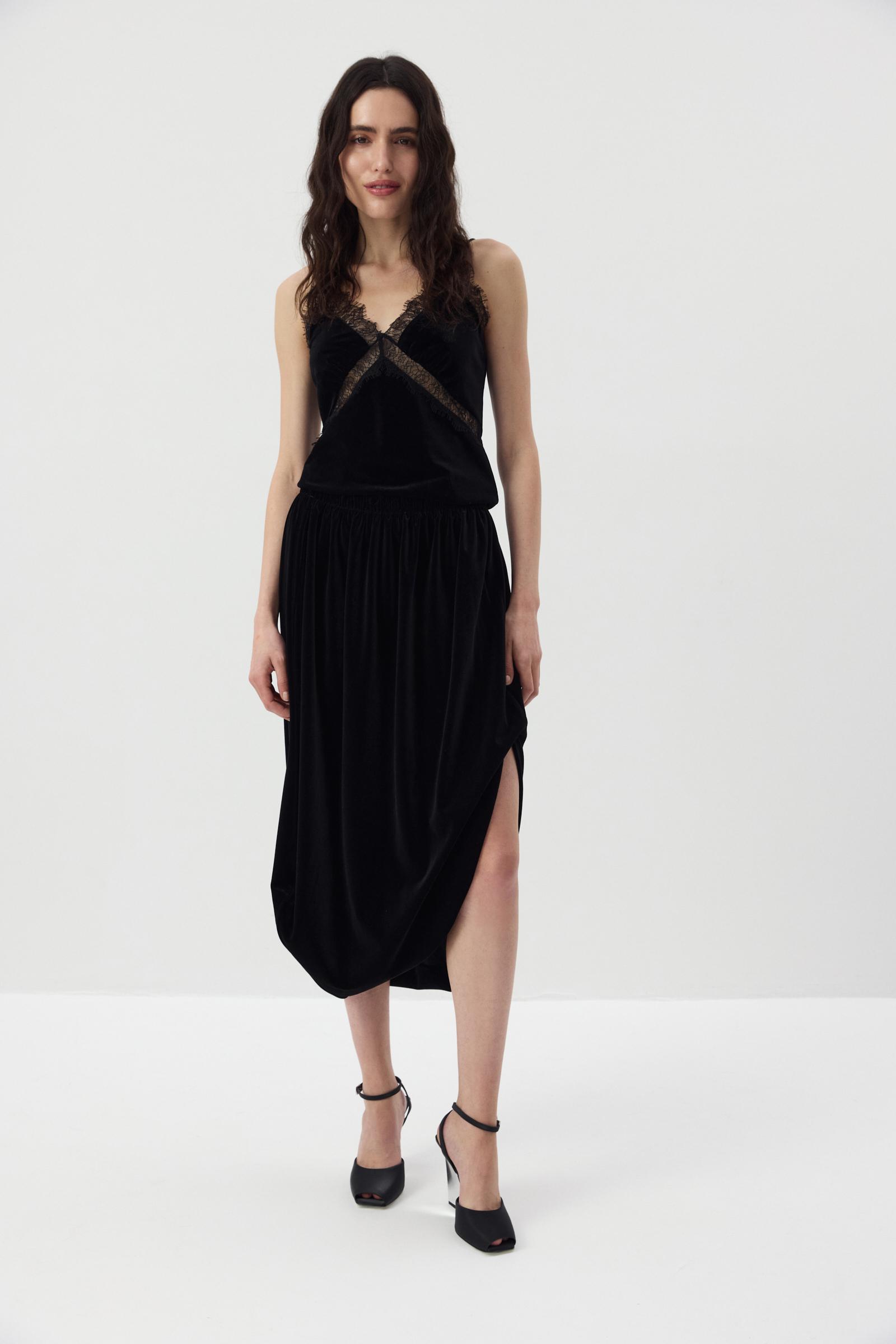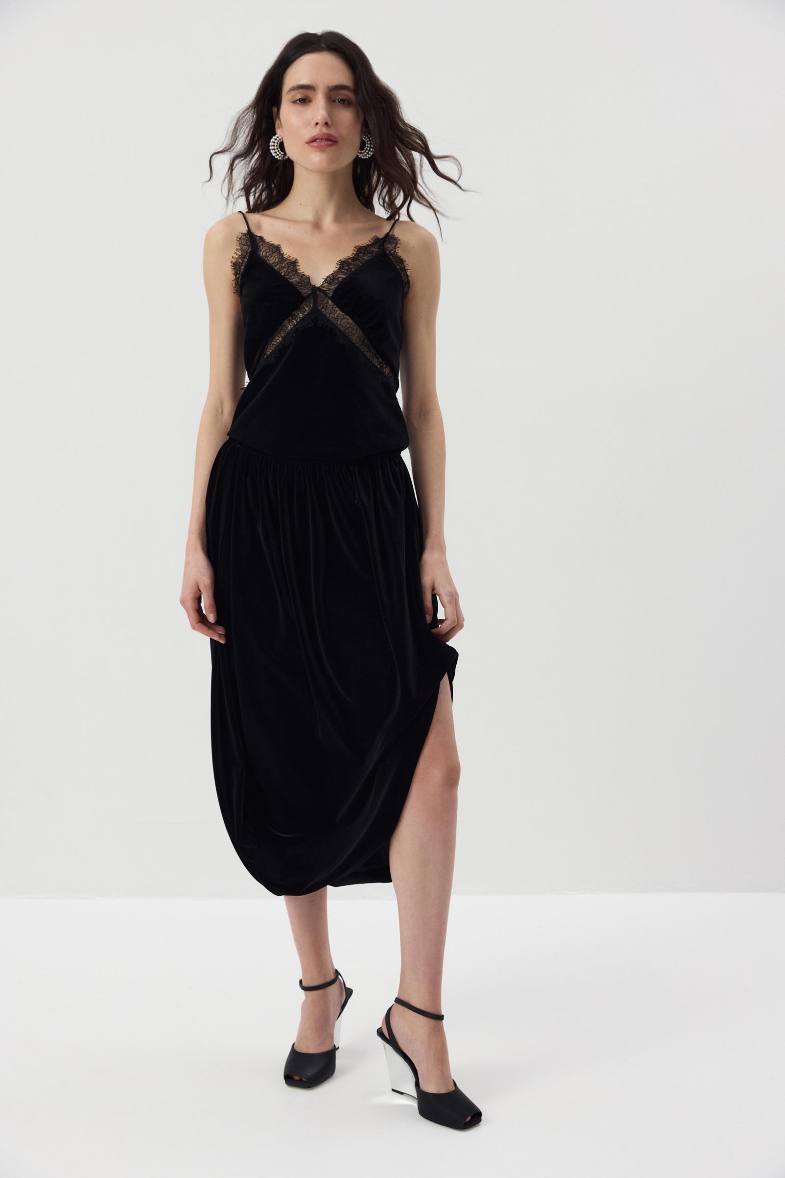Сочетайте с топом из идентичного материала в нашей коллекции. Юбка-баллон изо бархата словно создана для расслабленных и неторопливых выходов.