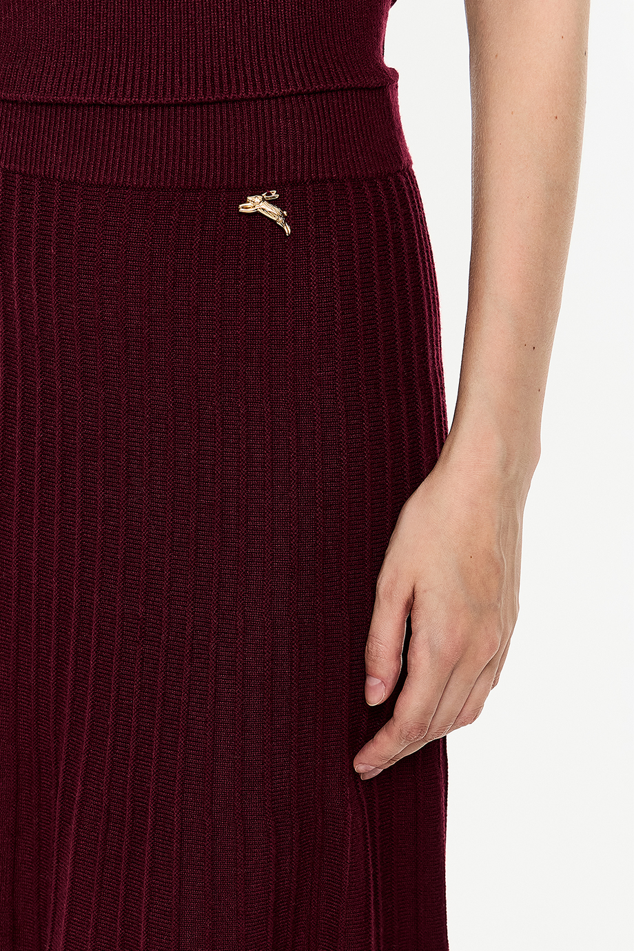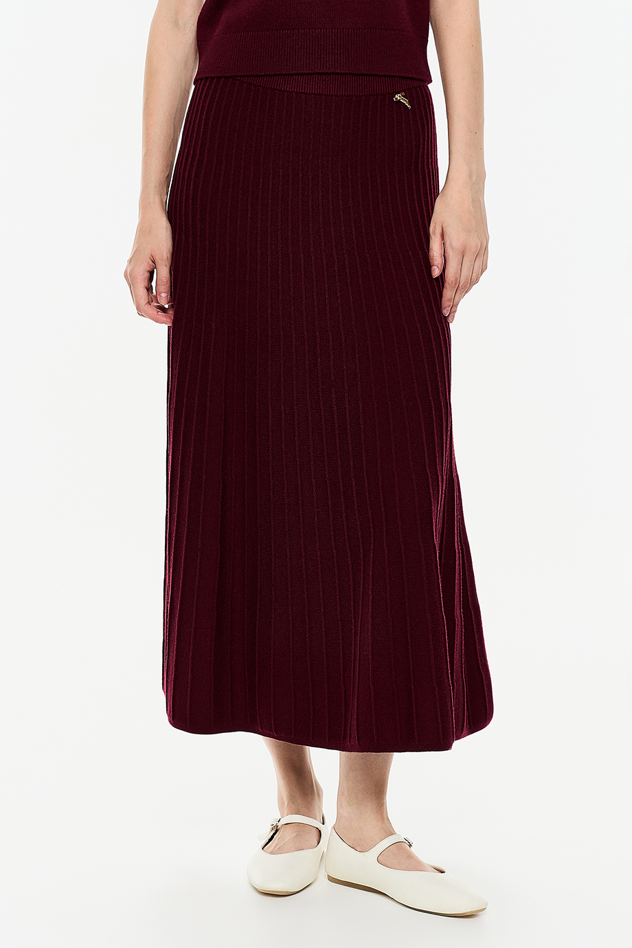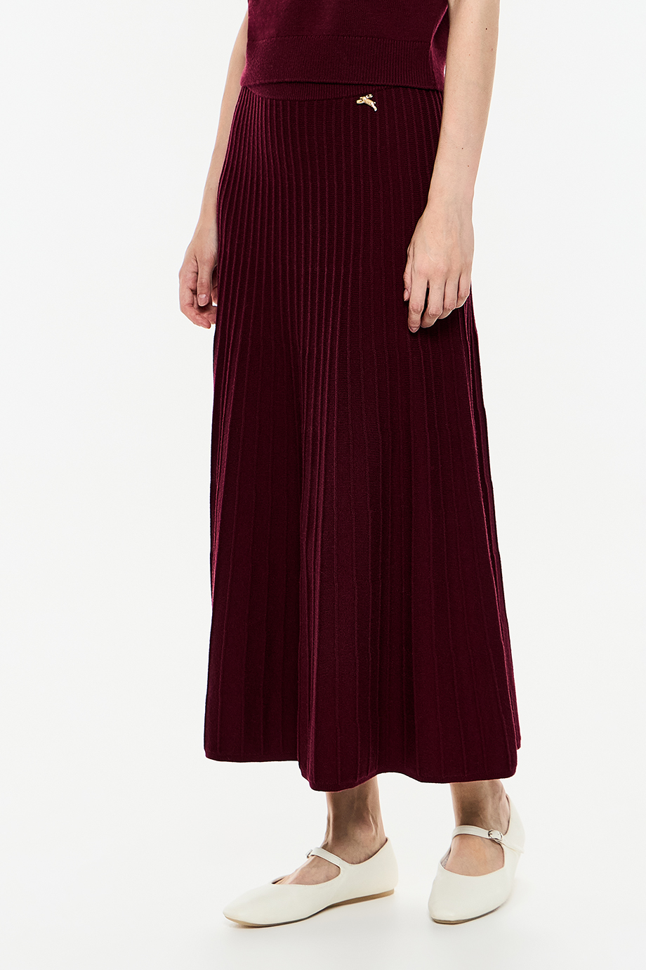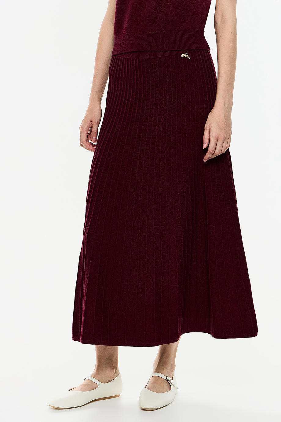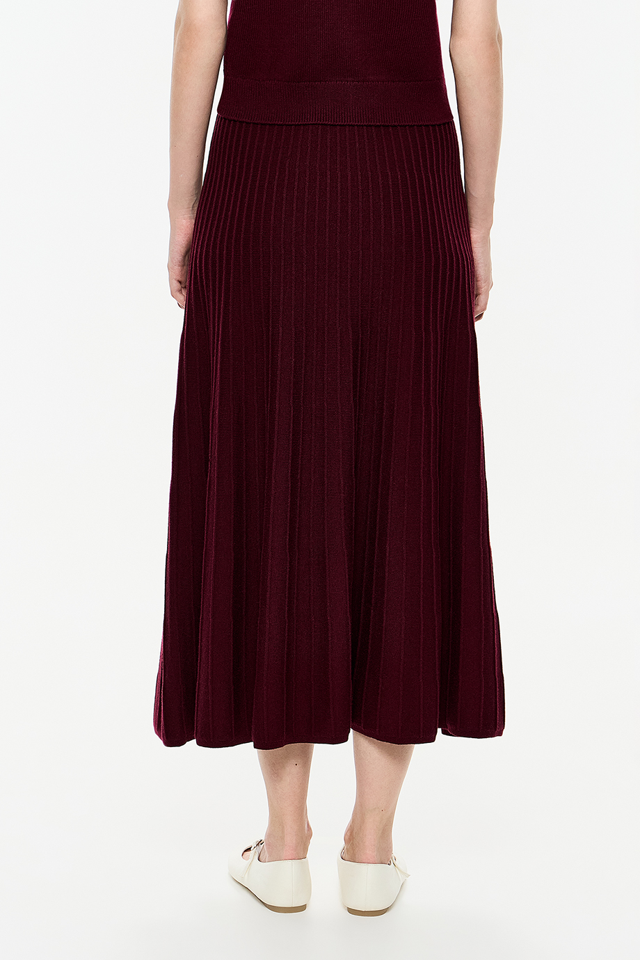 Юбка-миди бордового оттенка. Модель А-силуэта, выполненная из тонкой мериносовой шерсти и вискозы дополнена тонким эластичным поясом.