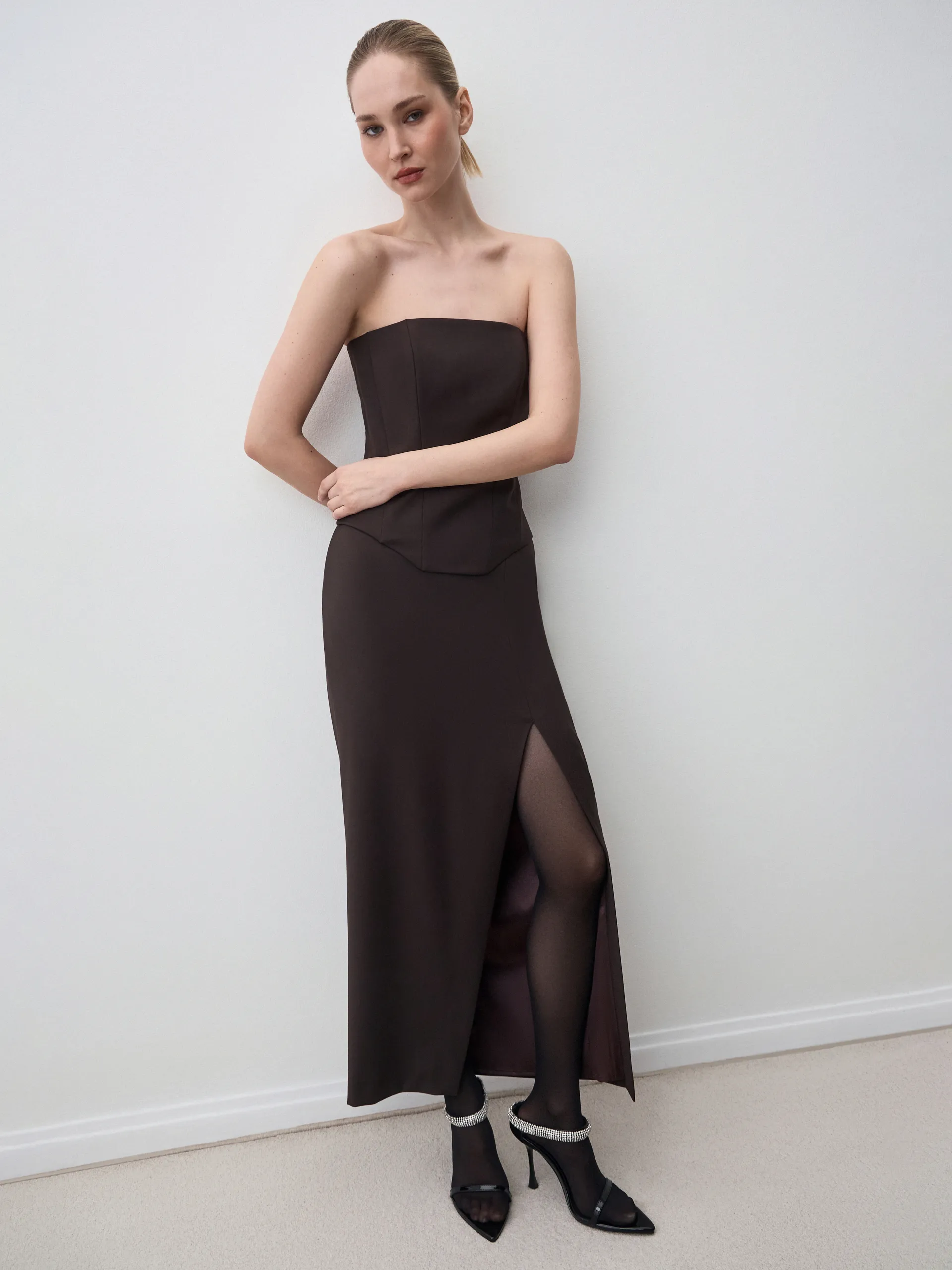 Юбка Yuvi в классической длине миди — универсальная модель, которая сочетает элегантность и комфорт. Акцент на талии и продуманная длина визуально вытягивают силуэт, создавая женственный и пропорциональный образ. Глубокий оттенок тёмного шоколада придаёт выразительность и легко вписывается как в повседневные, так и в более строгие сочетания. Рекомендуем стилизовать с корсетами, рубашками и жилетами — юбка открывает множество вариантов для осенних и зимних образов.