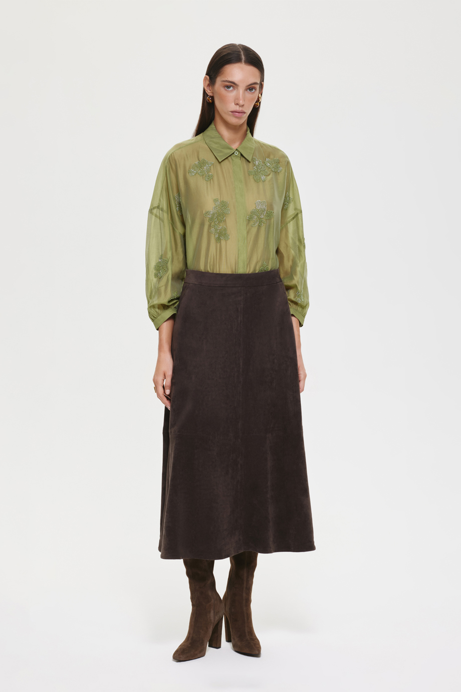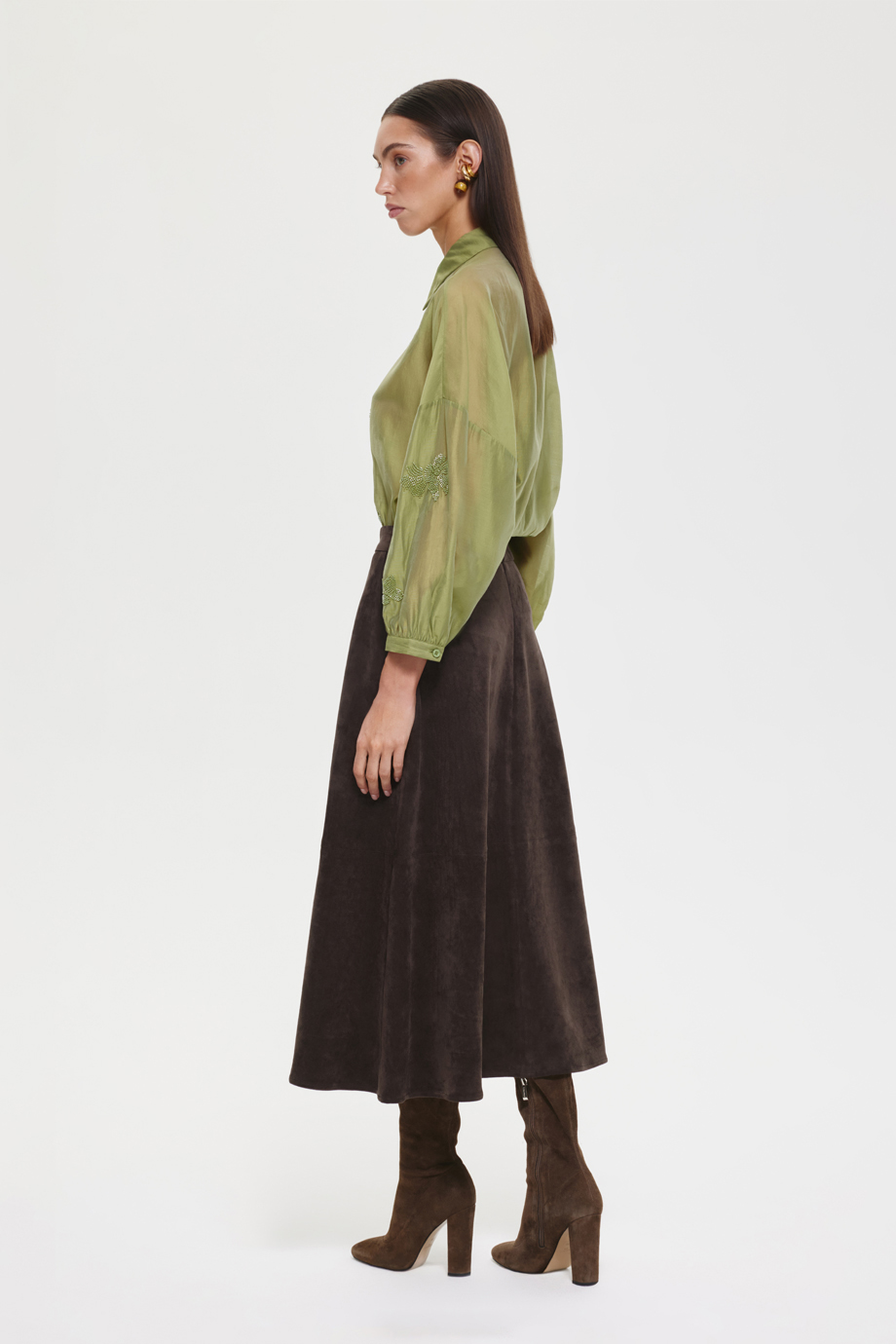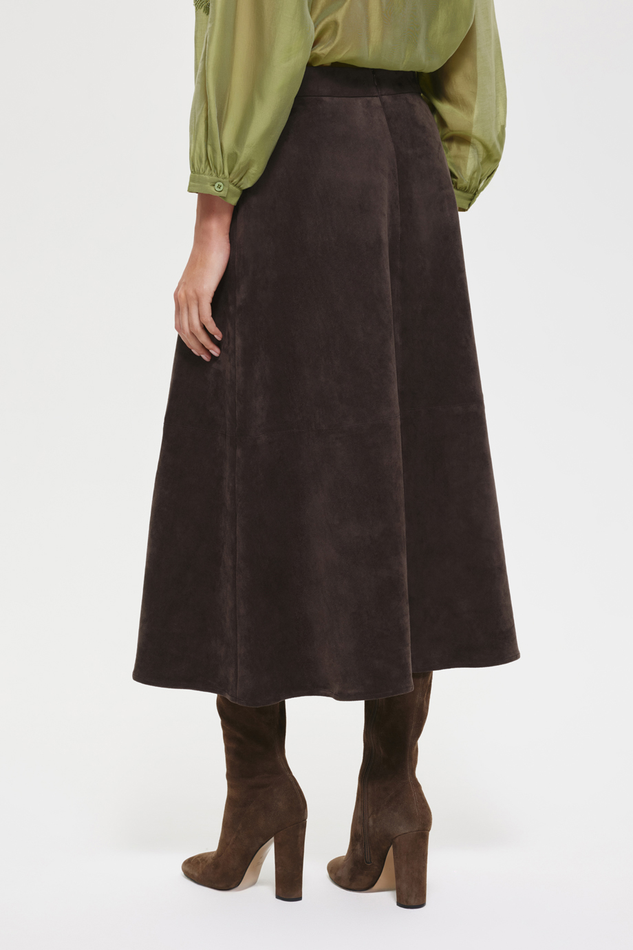 Юбка из экозамши — идеальный выбор для создания стильного аутфита. Сочетайте её с рубашкой из того же материала для создания гармоничного и модного образа. Юбка добавит вашему гардеробу изысканности и позволит выделиться.