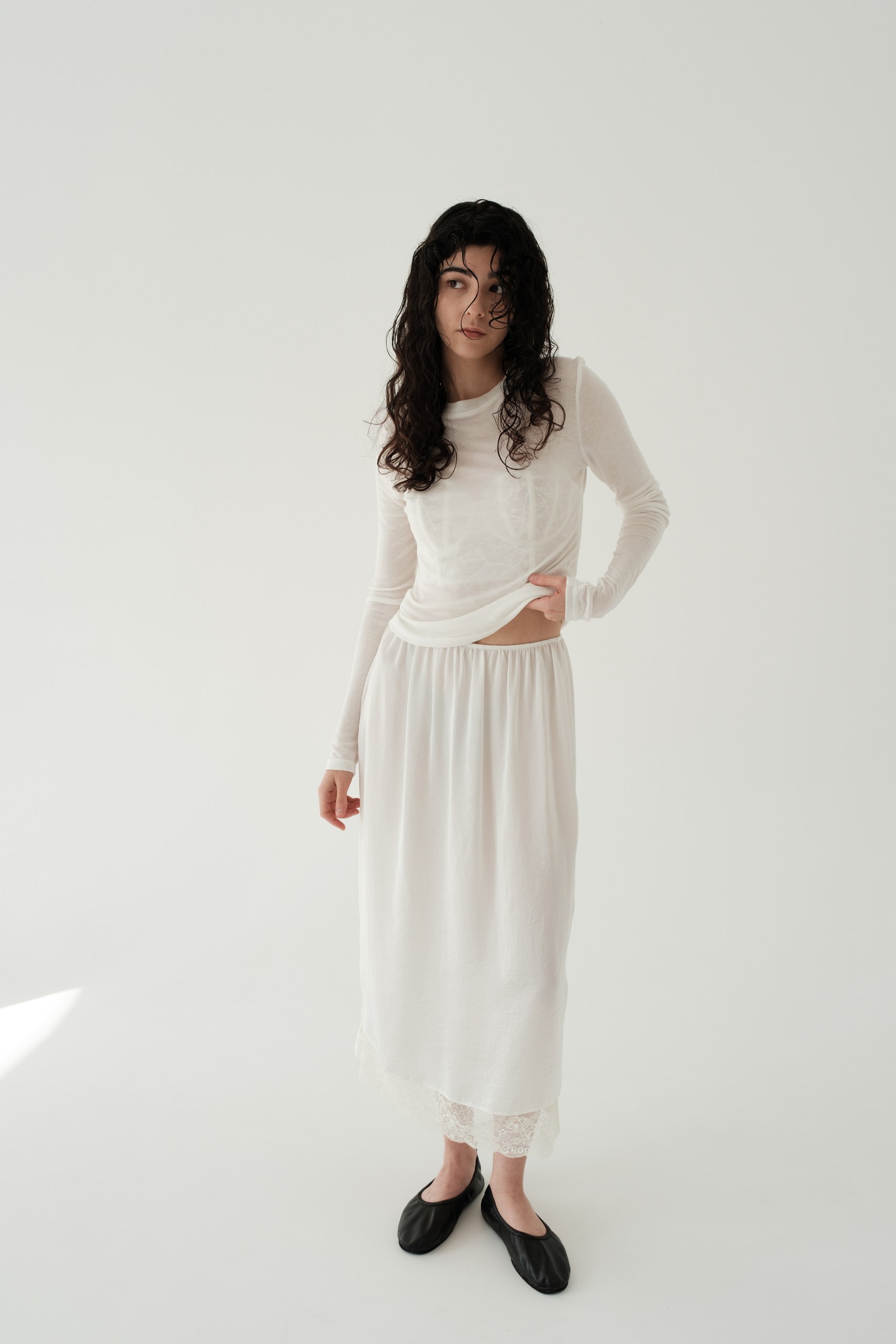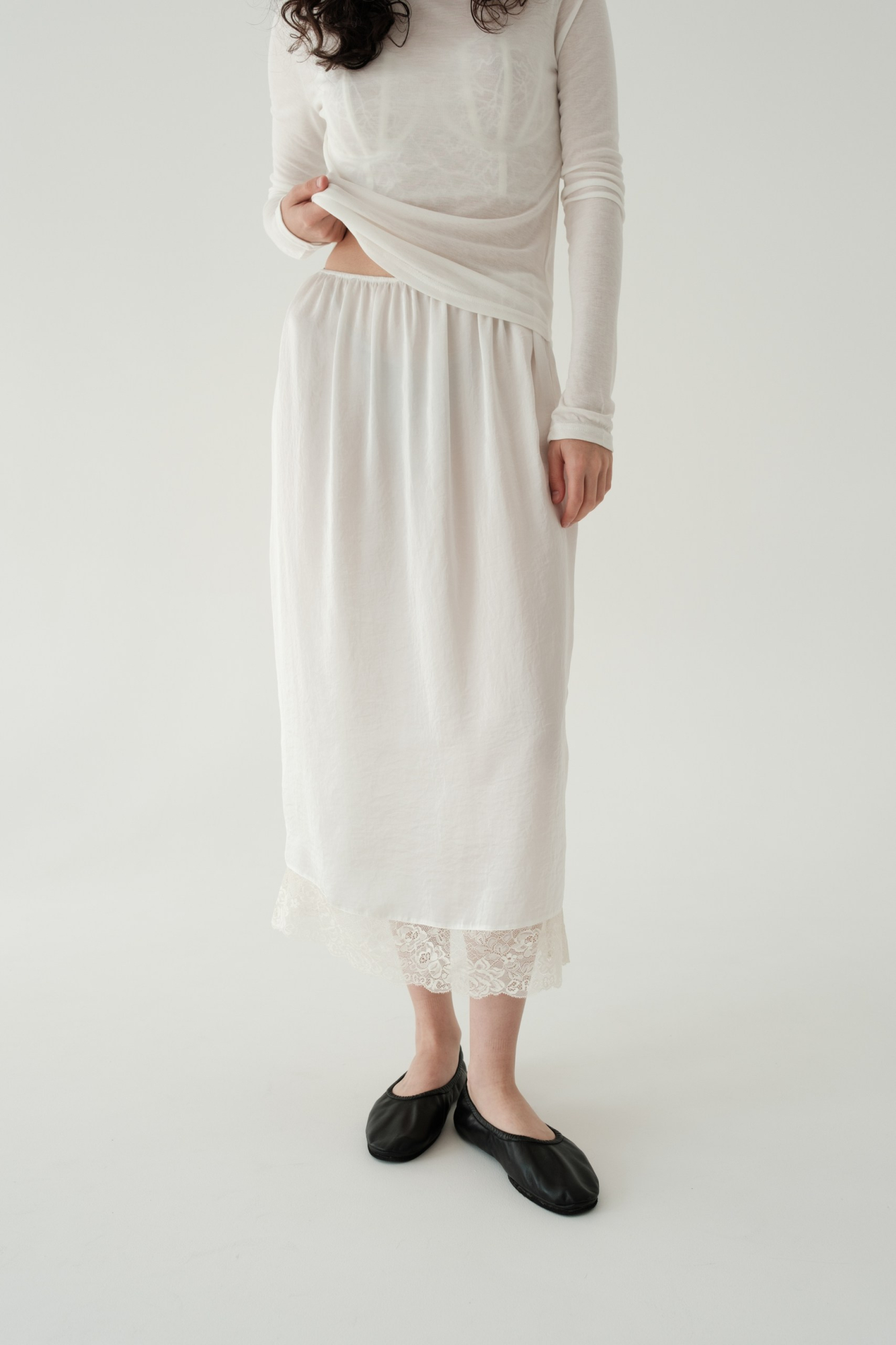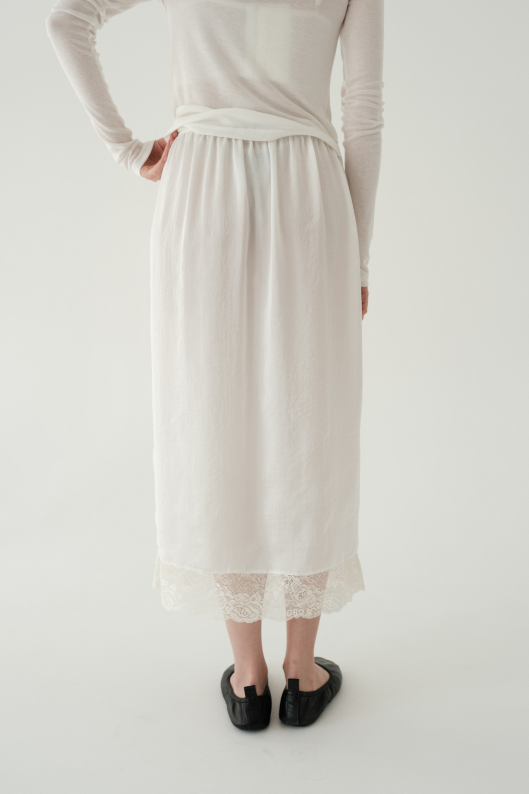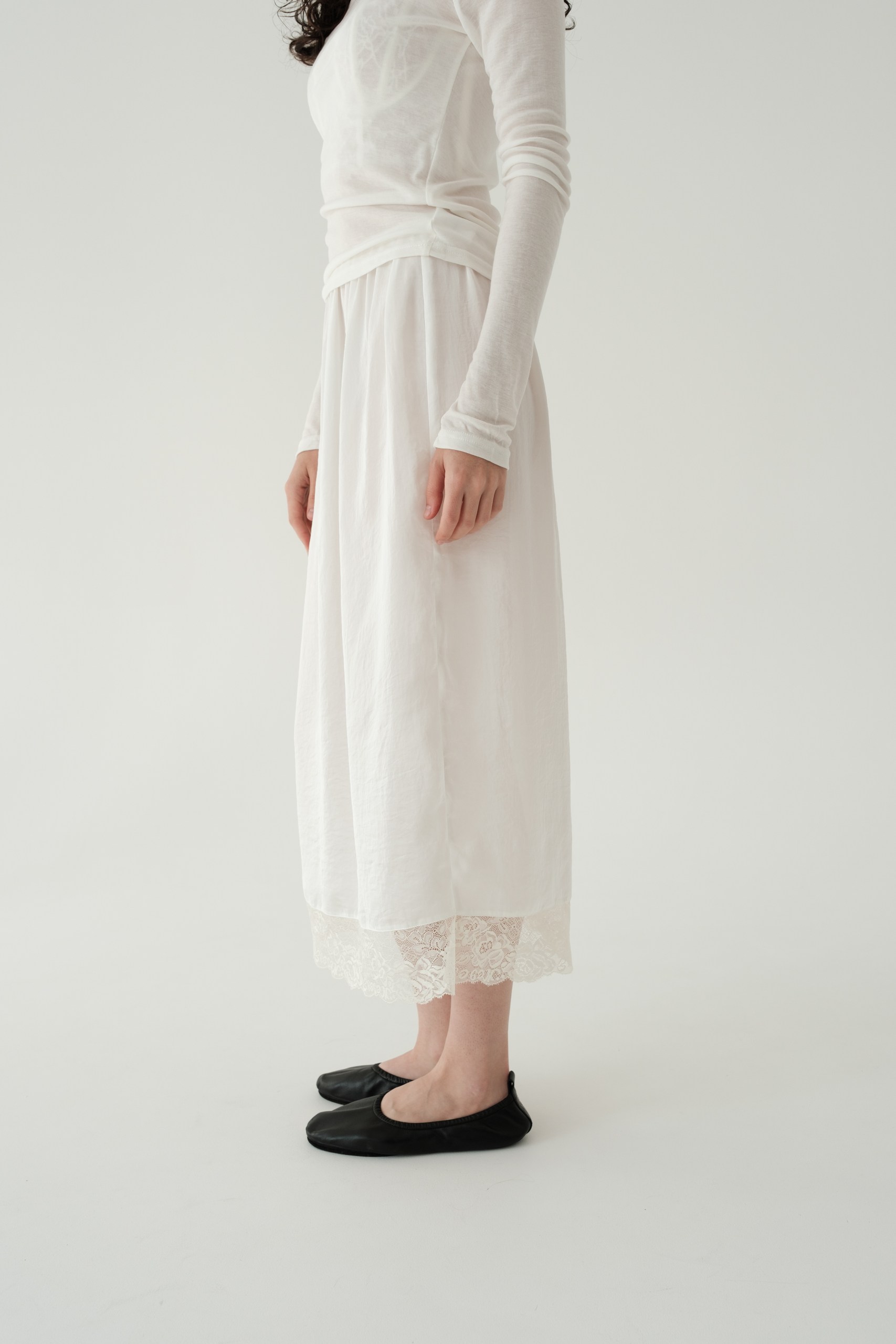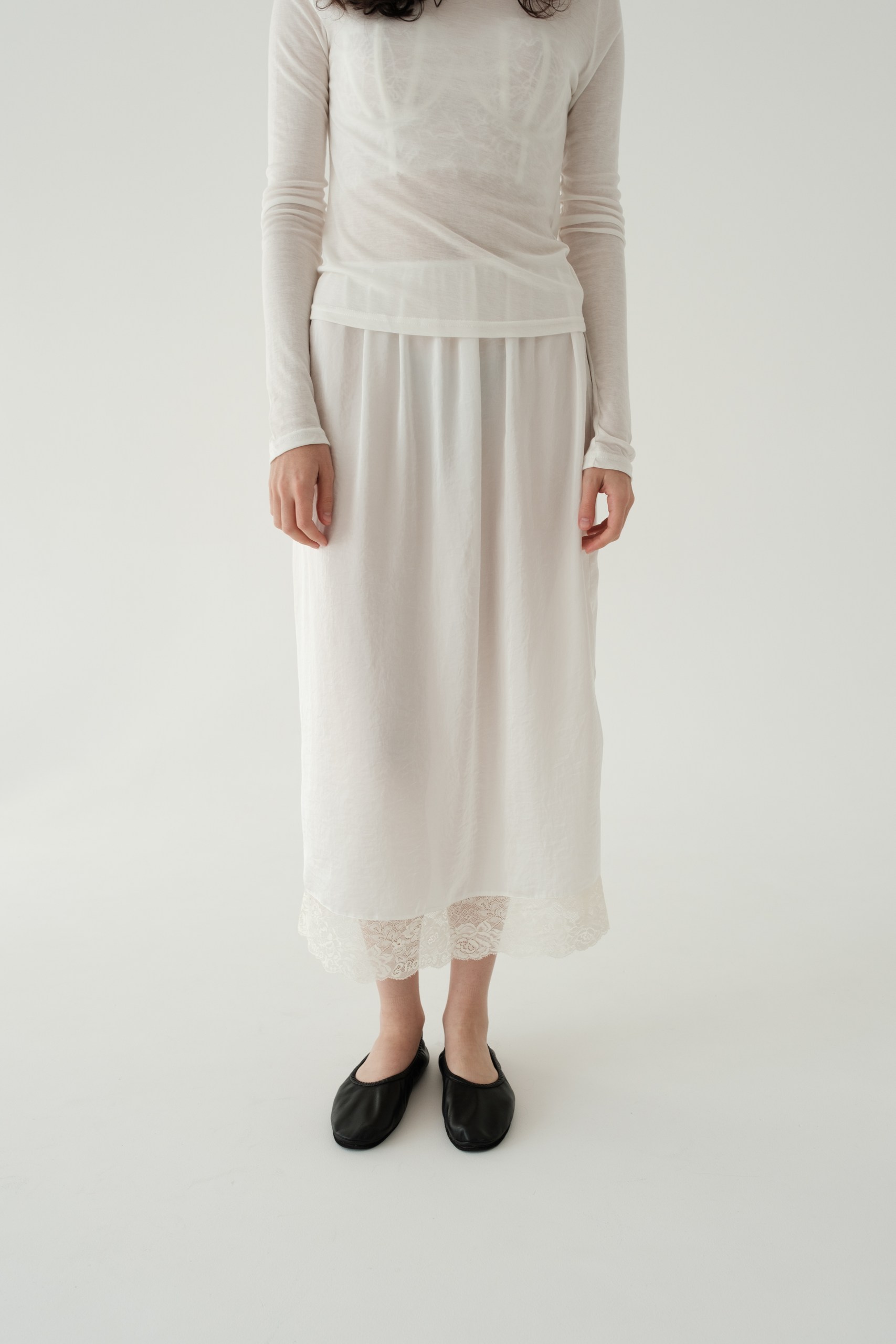 Юбка длины миди в бельевом стиле с кружевом по низу.