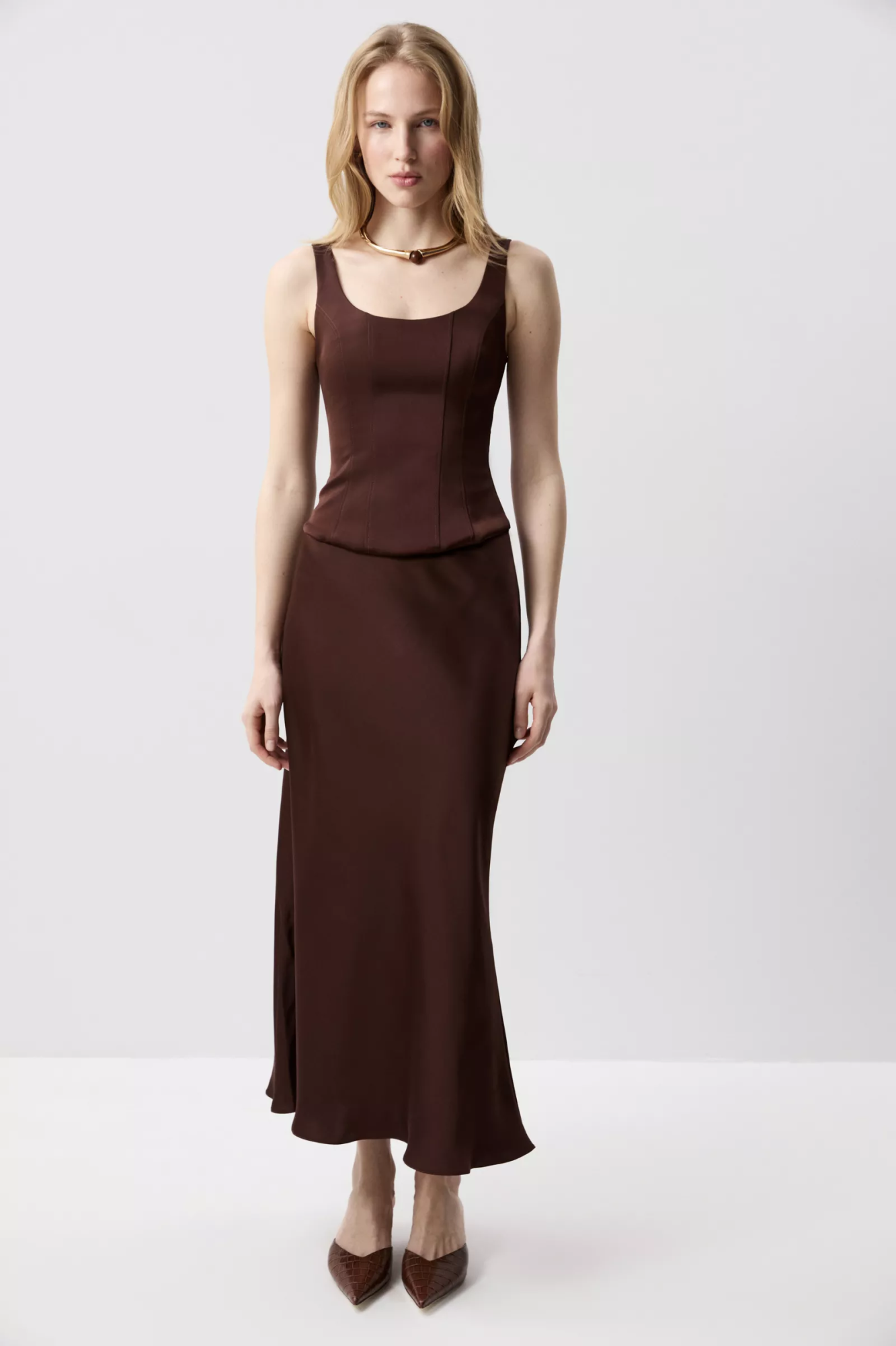 Сочетайте с корсетным топом или блузой с рюшами из идентичной ткани. для вечерних выходов, для более акцентного образа добавьте пиджак с чёткой плечевой линий.